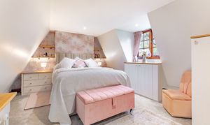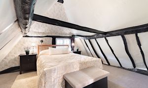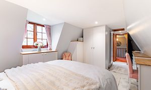 The first floor offers three bedrooms and is accessed via two different staircases. The principal bedroom enjoys both charm and privacy, located in its own wing of the house with the added benefit of a spacious en-suite bathroom. The remaining two bedrooms are both well sized and versatile, accessed via a separate staircase, suitable for family use, guests or home office requirements. A well-appointed family bathroom completes this floor and serves bedrooms two and three.