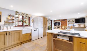 The cottage is entered via a welcoming entrance hall. To the right, a well-proportioned sitting room, rich in character, offers ample space for everyday relaxation, entertaining guests, and quality family time. A separate snug provides a cosy retreat, ideal as a reading room, play room, or secondary lounge. To the left of the hall is the kitchen/dining room, offering excellent space for family meals and entertaining, with direct access to the garden. Completing the ground floor is a cloakroom, adding further practicality to the layout.