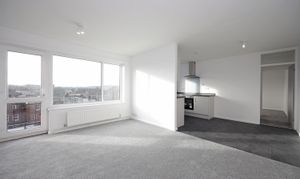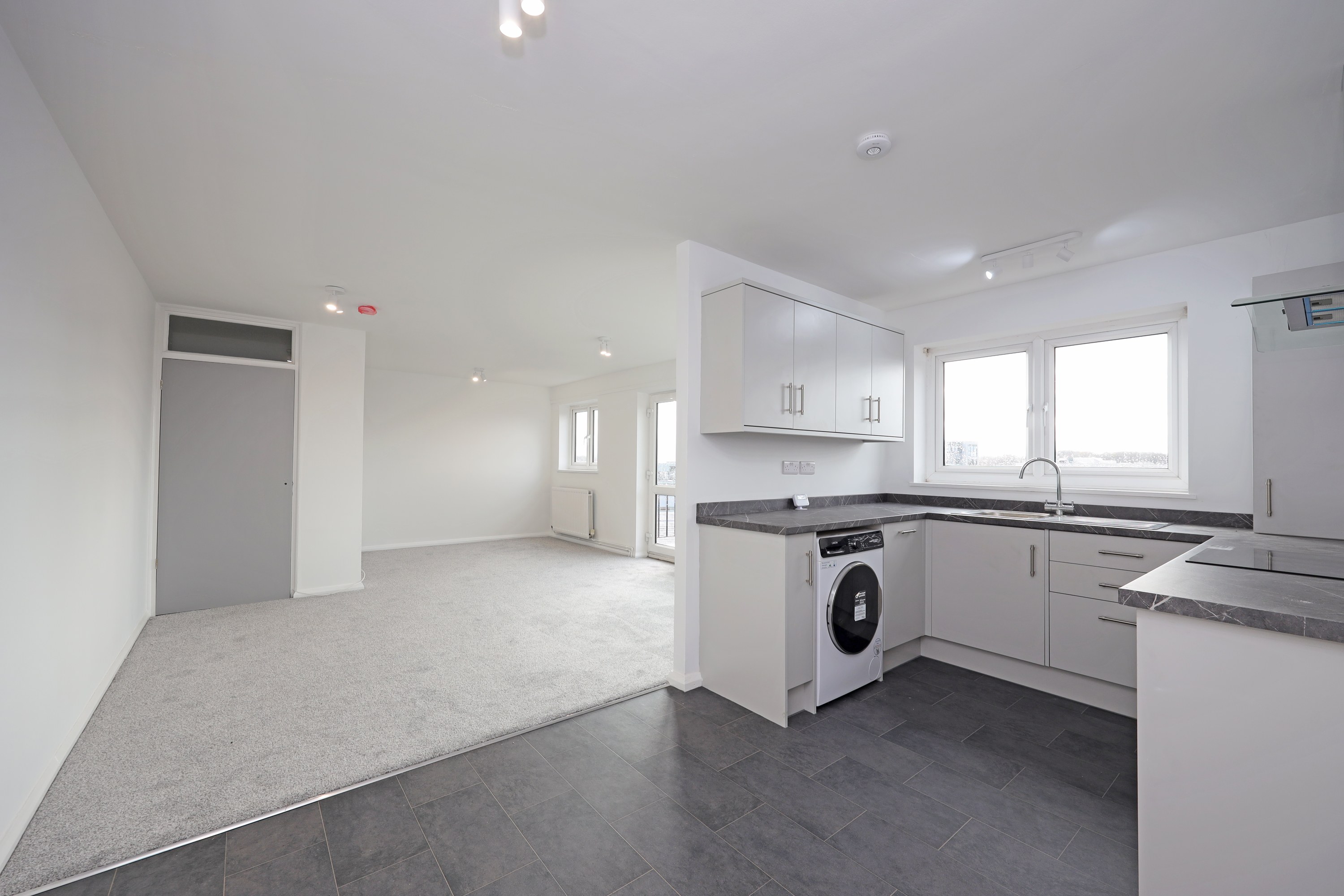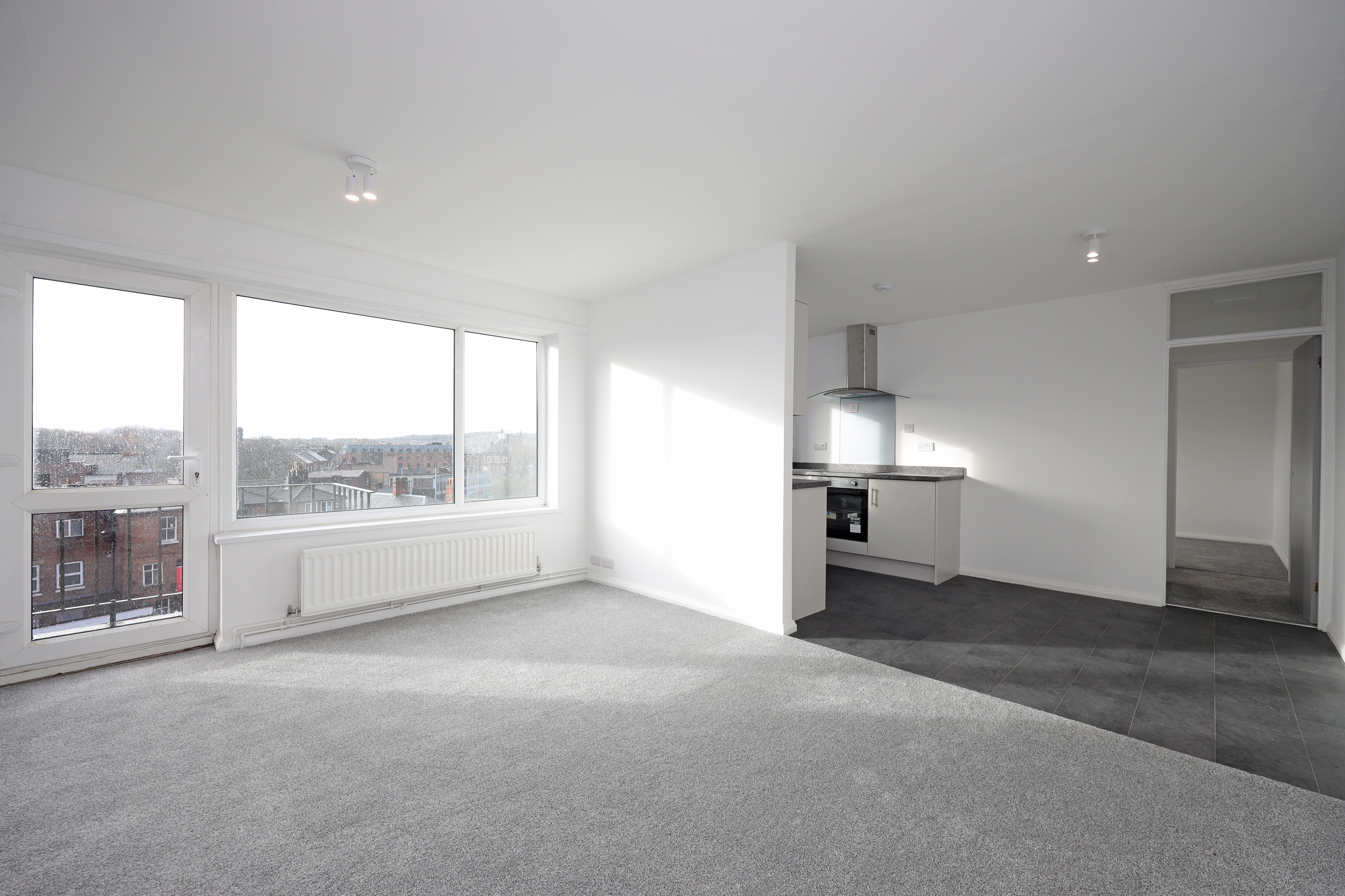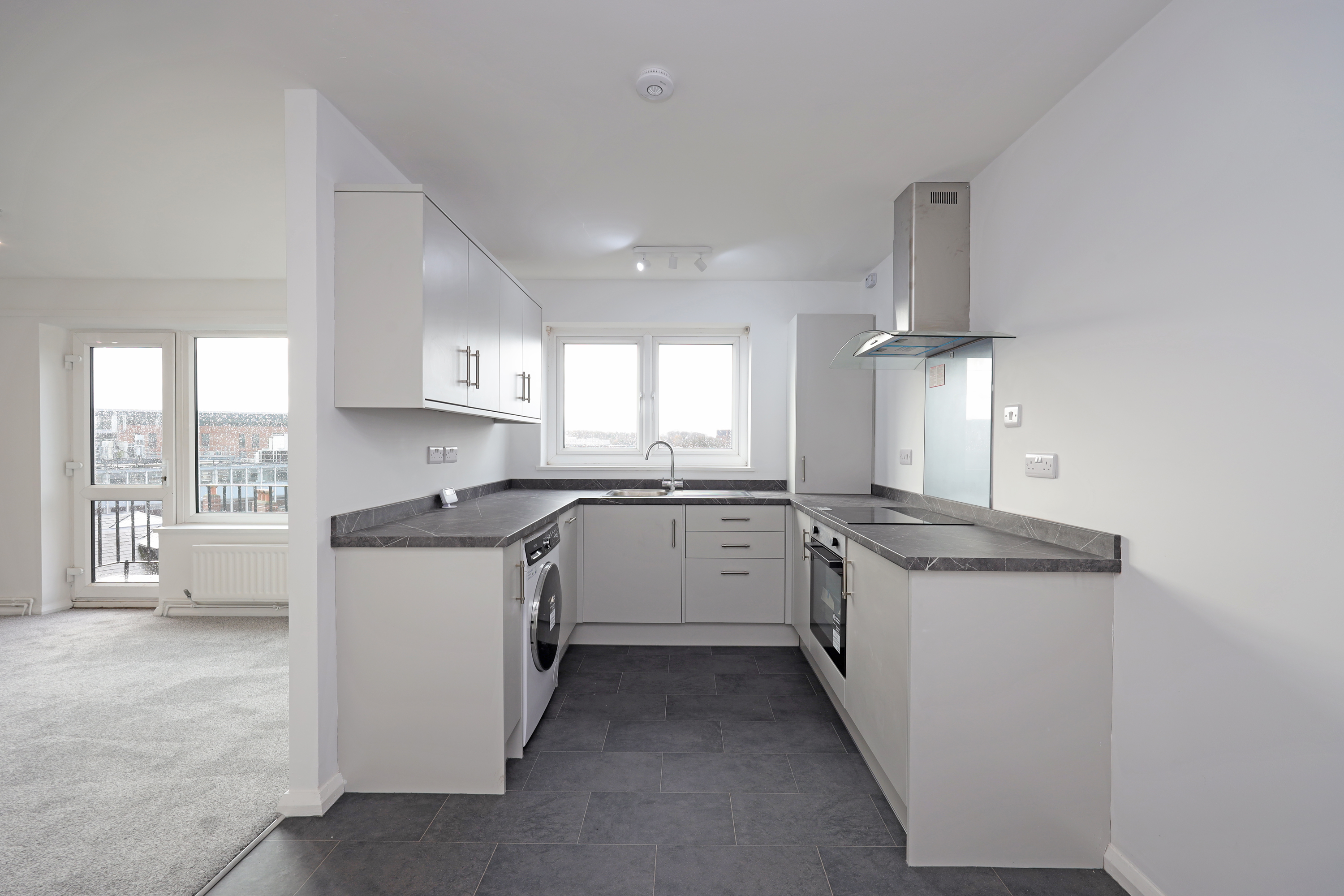 Access to the apartment can be obtained from Hanover Street or the rear of the premises with staircase and separate lift access available to all floors. From the communal hallway, the main entrance door opens to an inner vestibule that leads to a spacious semi open plan living space and kitchen area. The living space is flooded with natural light and enjoys pleasant far reaching townscape views to a southerly aspect which can also be enjoyed from a small balcony. The kitchen area has further window outlook across the town and has very recently been refitted with a range of base/wall units including cupboard housing for combination central heating boiler and worktops with sink. There are a range of new integrated appliances comprising dishwasher, fridge, electric oven, ceramic hob with extractor and freestanding washing machine.