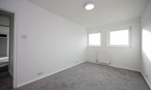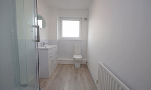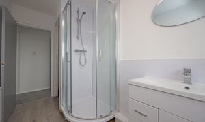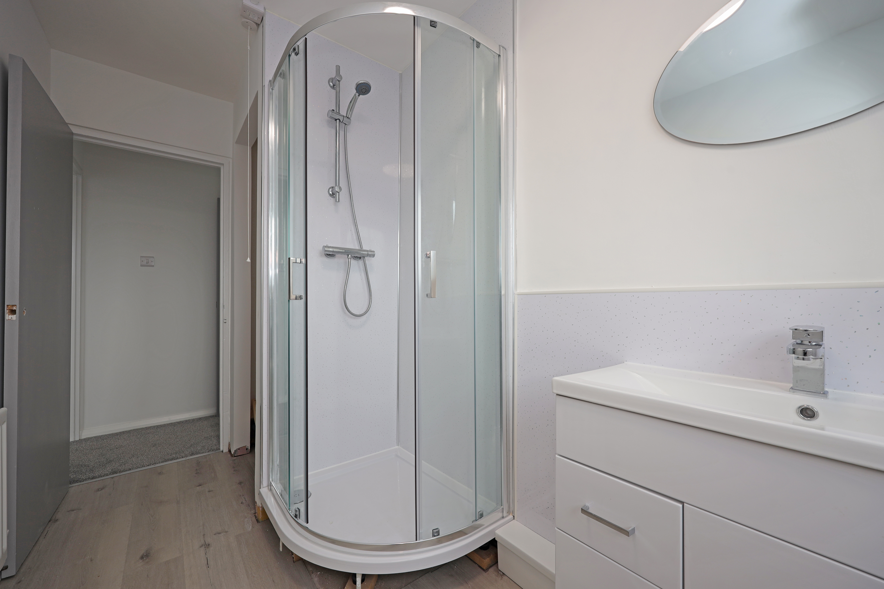 From the kitchen area an inner hall leads to a spacious re-fitted shower room with linen/store cupboard and window. Suite comprises, mains shower cubicle, large vanity wash basin with medicine units and WC. At the end of the inner hall is a large double bedroom with twin windows enjoying further townscape views.