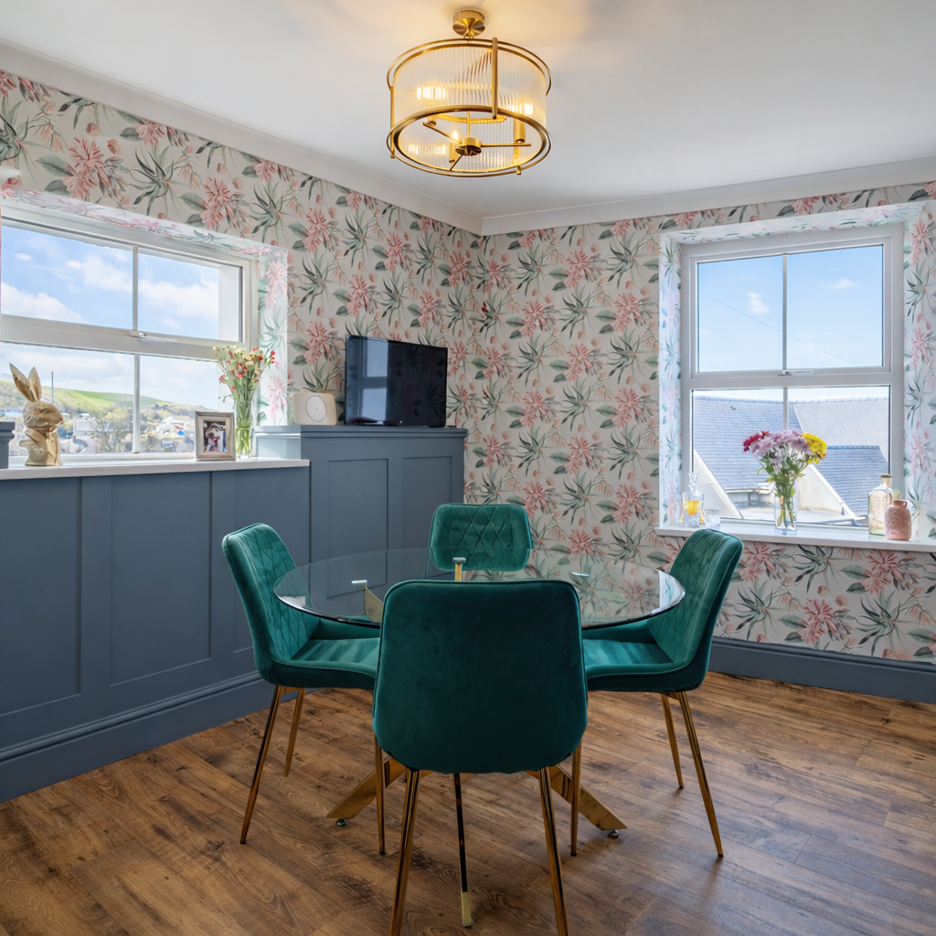 Carno House has undergone a comprehensive programme of refurbishment and modernisation, transforming the property into a home that balances traditional coastal character with the comfort and style of contemporary living. Elegant wallpapers, modern bathrooms, stylish kitchens and high-quality finishes give the property a refined and cohesive feel throughout.
