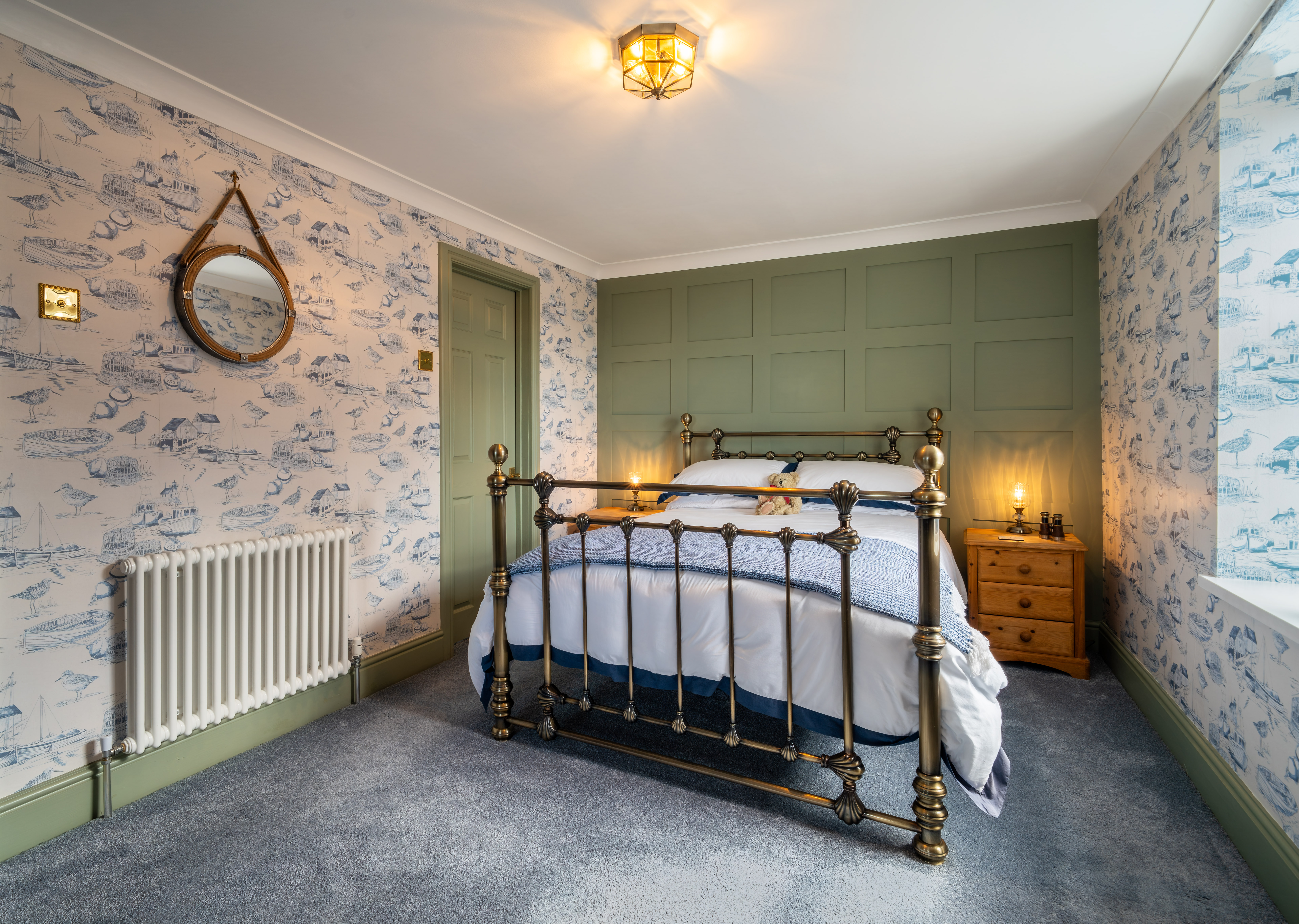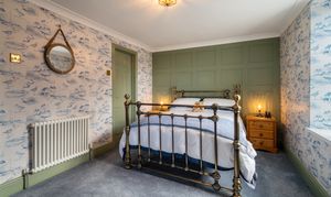 The principal bedroom is a spacious and beautifully presented room, offering a calm and relaxing retreat. Tastefully decorated with a combination of feature panelling and elegant wallpaper, the space enjoys a light and airy feel. Being dual aspect, the room benefits from excellent natural light and enjoys attractive sea views, enhancing its peaceful atmosphere. Period-style column radiators adds character, complementing the room’s classic styling, while ample space allows for a range of bedroom furnishings. Well-proportioned and inviting, this principal bedroom provides a comfortable and stylish setting for rest and relaxation.