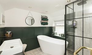 Upstairs, the property offers three generously proportioned double bedrooms arranged across the first and second floors. Each room is beautifully finished, offering excellent flexibility for use as a dedicated home office if required. The elegant family bathroom, located on the first floor, is finished to a high standard and features a luxurious four-piece suite including a freestanding bath.