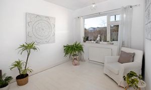 The modern kitchen is well-equipped with a range of built-in appliances, including an oven and hob, and space and plumbing for a fridge/freezer and washing machine. This practical and stylish space is ideal for preparing meals. Beyond the kitchen, at the rear of the property, you’ll find a useful sun room. This bright and airy space offers a peaceful retreat to relax and enjoy views of the garden, providing a tranquil environment that can be enjoyed year-round.