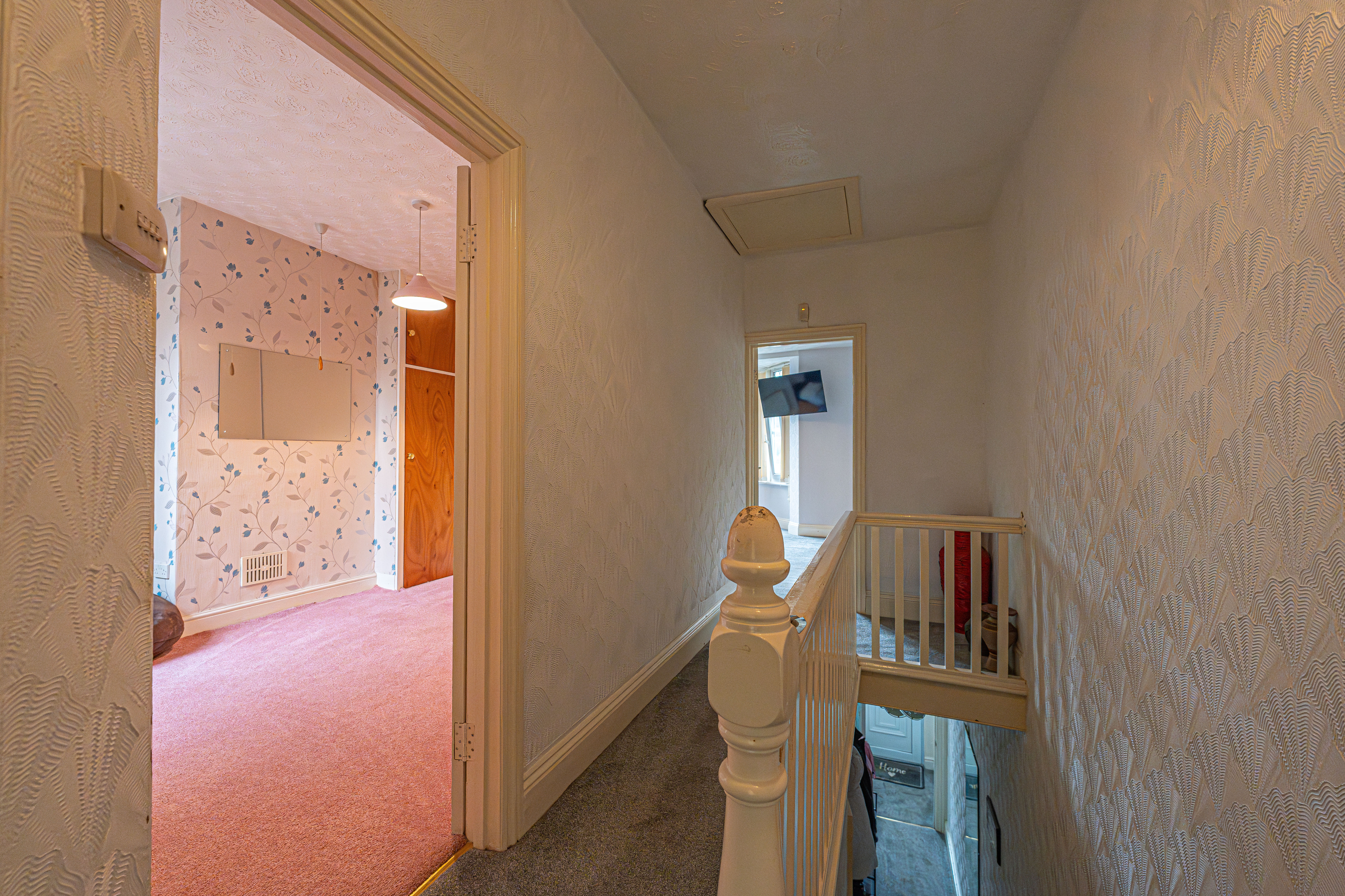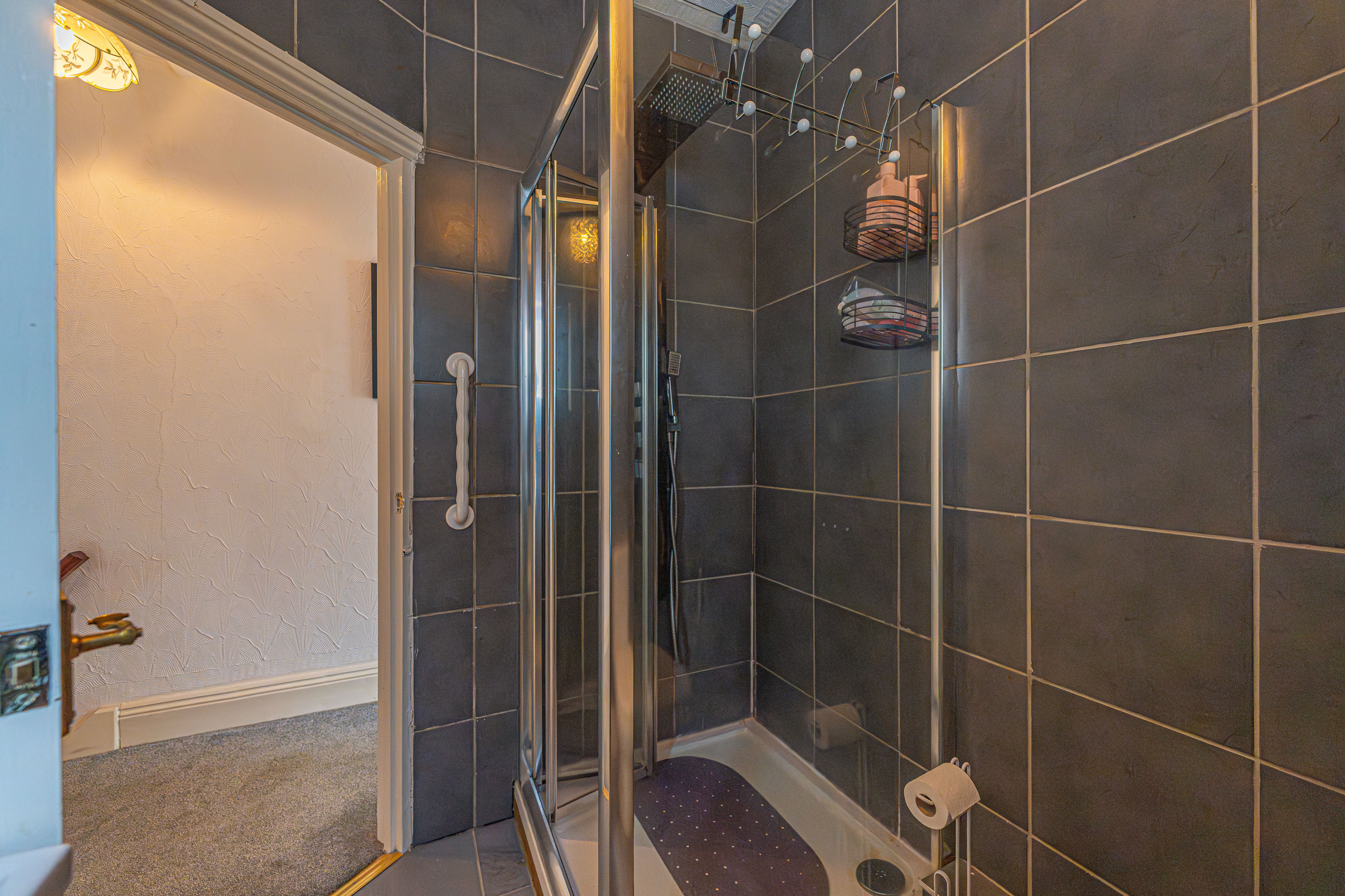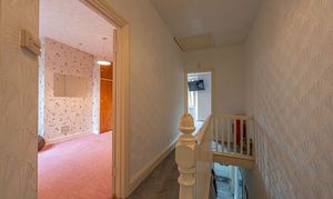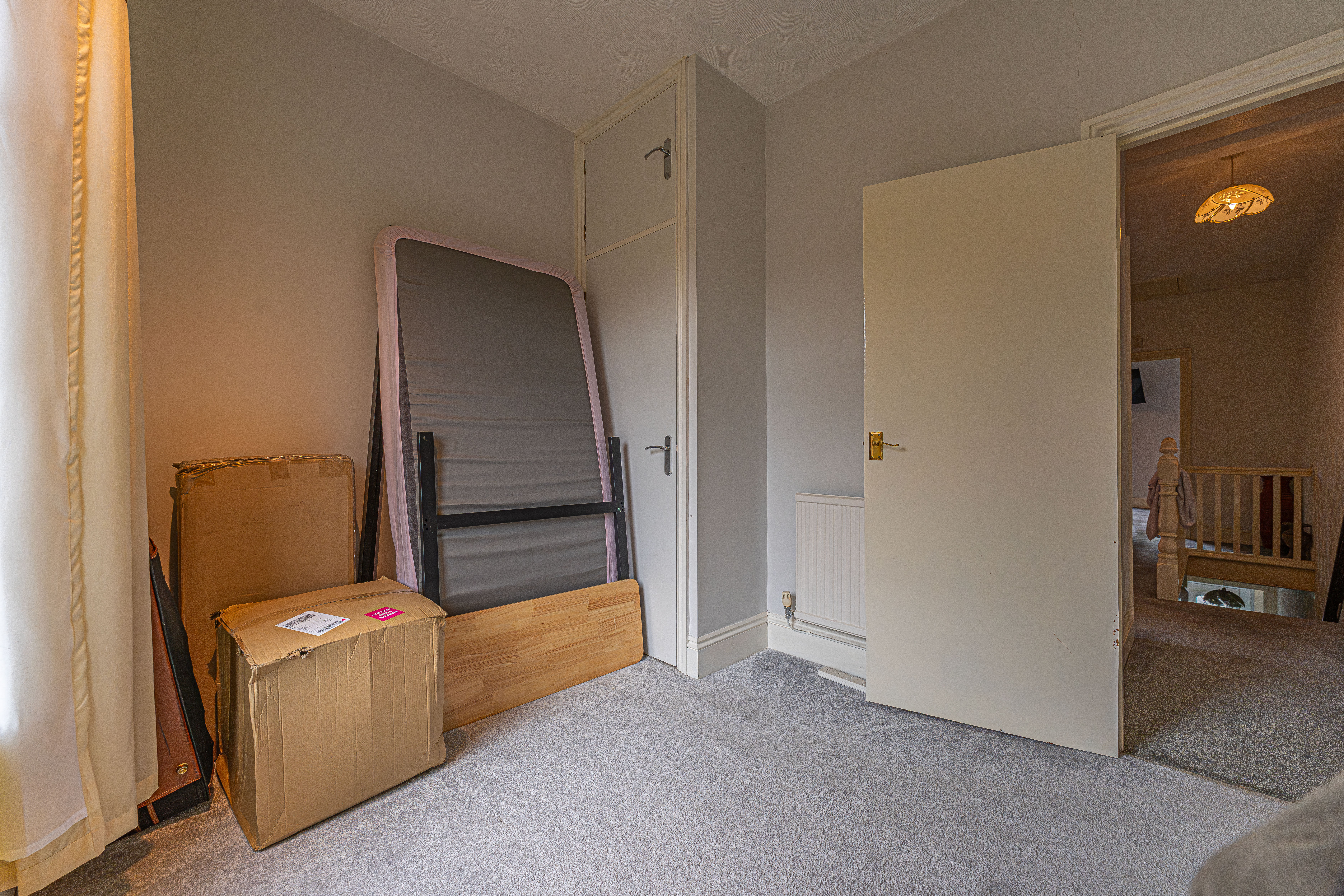 Ascending to the first floor we have the three bedrooms, which can all accommodate double beds, and all have access to various forms of fitted storage, with the largest bedroom positioned at the front of the house, enjoying ample storage space with multiple wardrobes, in addition to the stunning bay window of the floor below. The first floor also offers a shower room from the hallway.