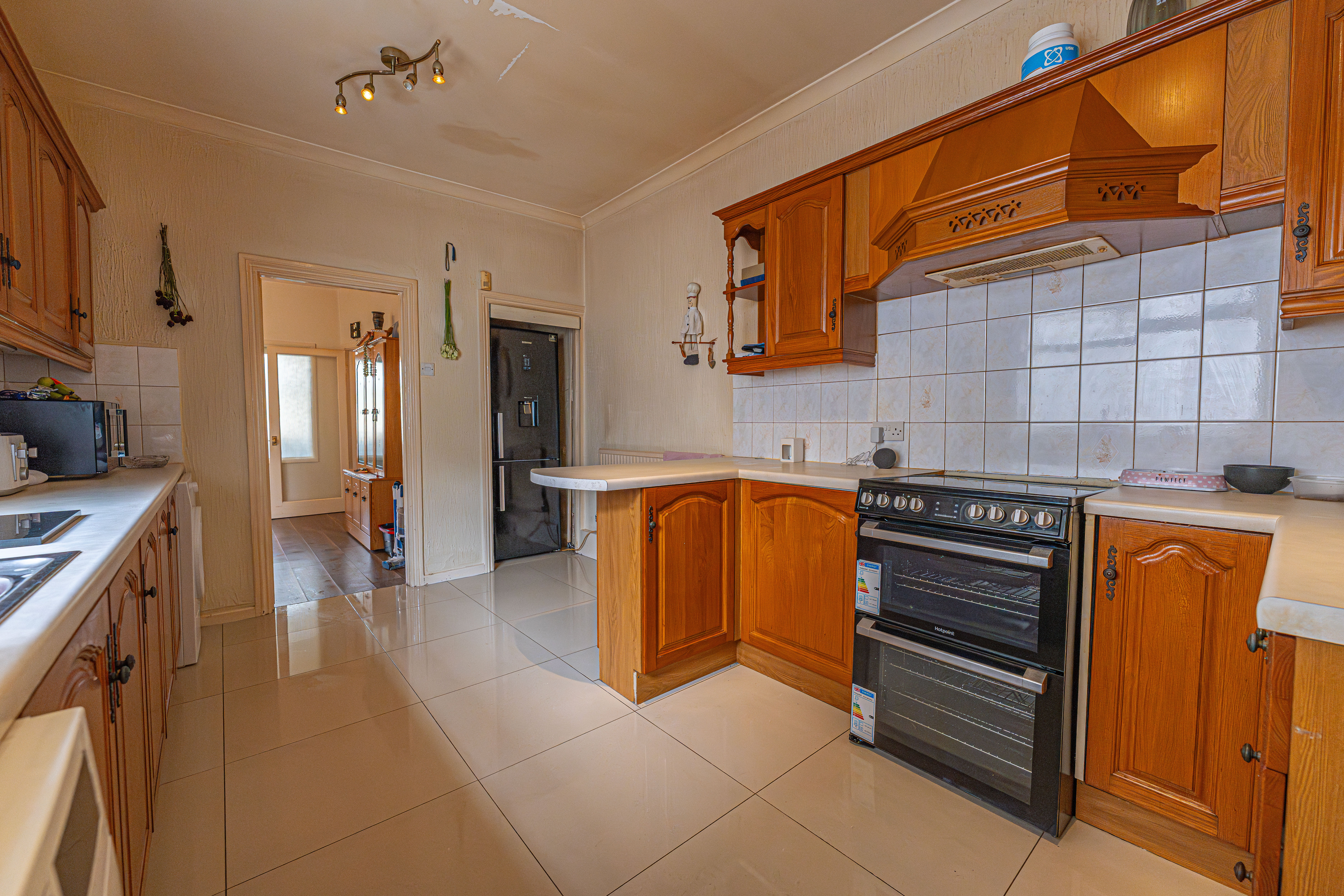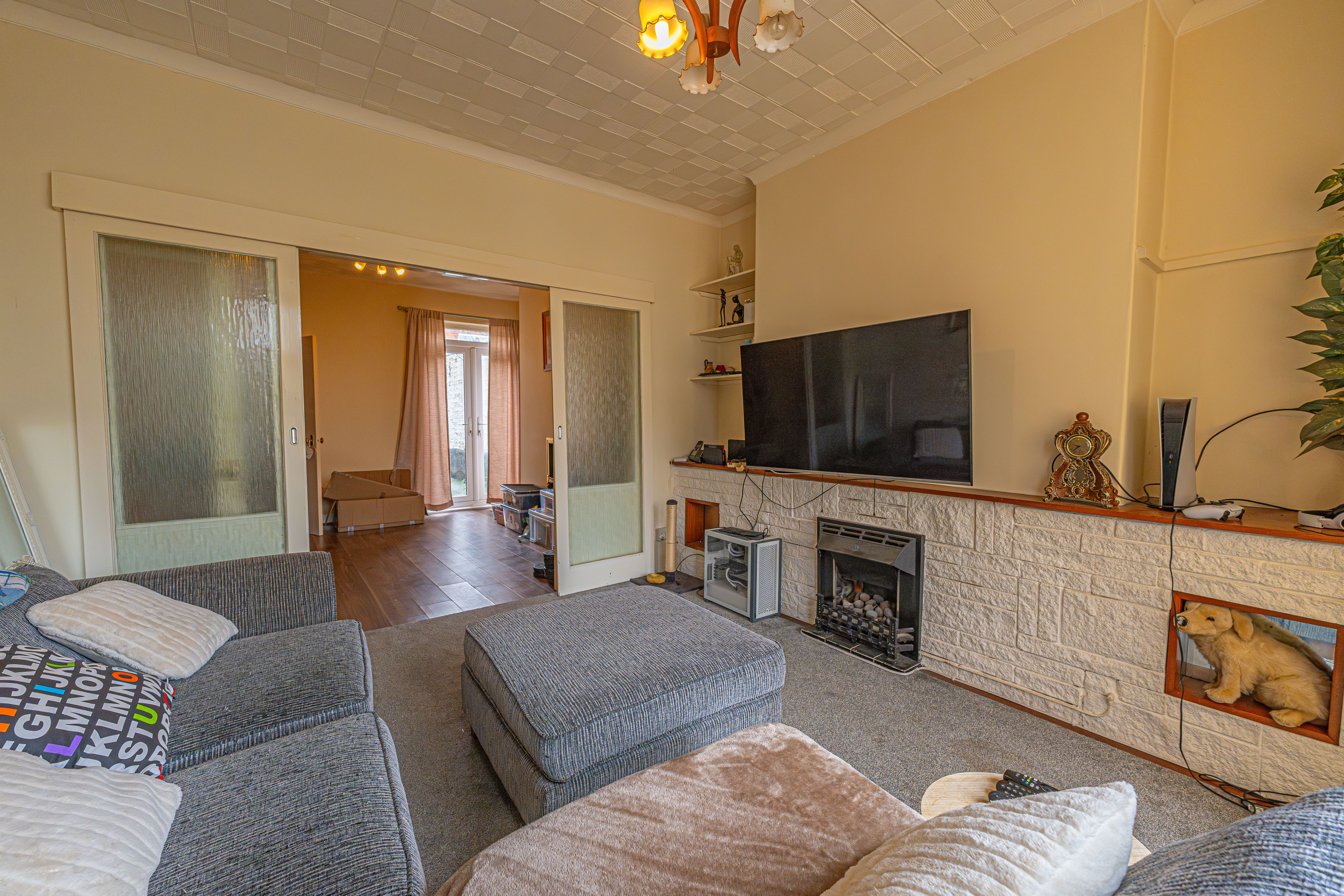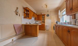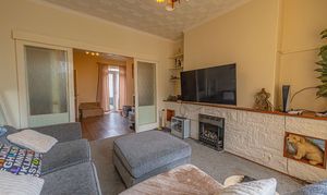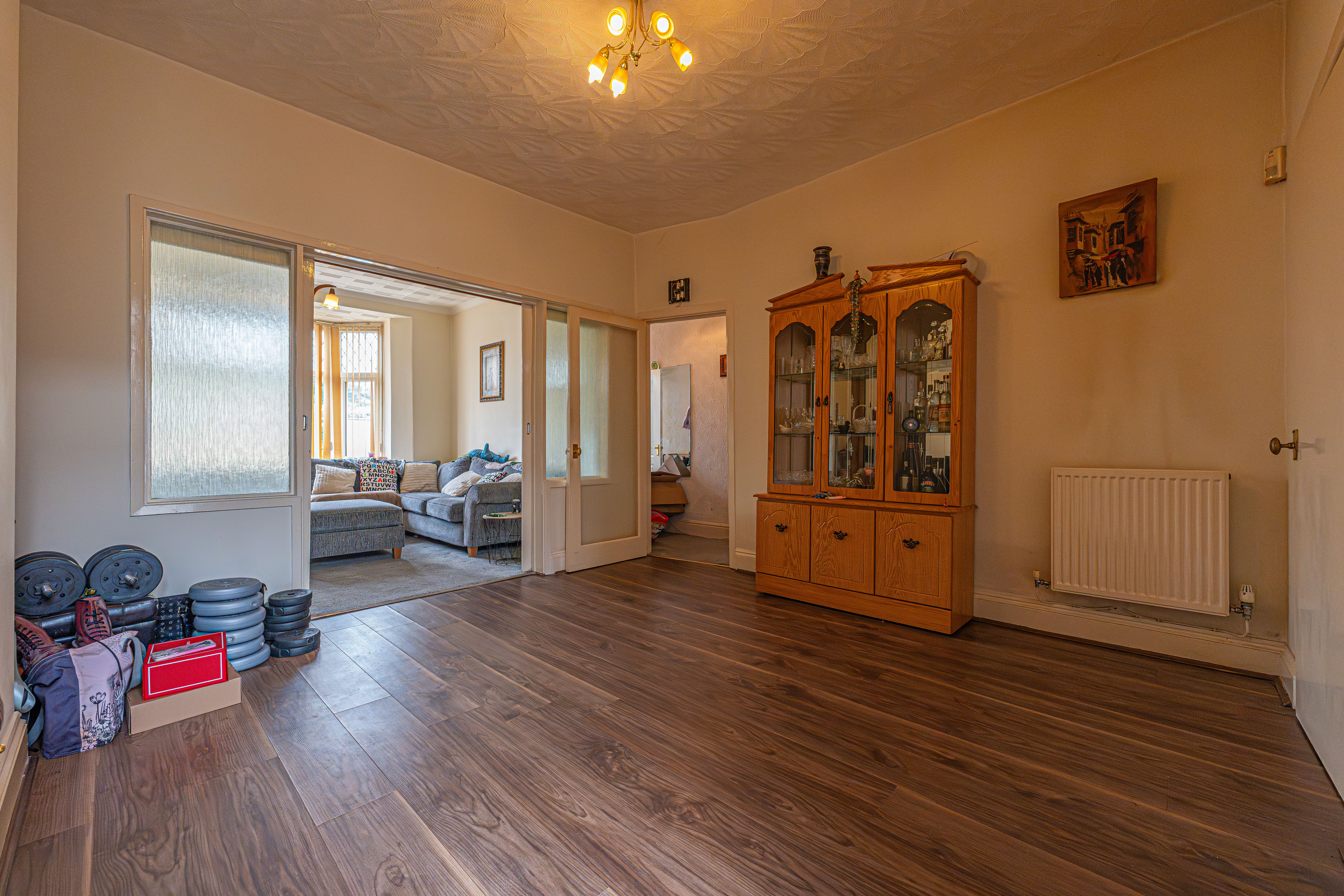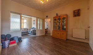 We enter this family home to the front, with a large corridor leading us into the lounge and dining room, with the neighbouring reception rooms both spacious in design and connected by an airy open walkway with sliding doors. The front facing lounge is flooded by natural light streaming in through a fabulous bay window, while the dining room features a glass doorway opening out to the garden, making both spaces perfect for relaxing, dining and entertaining guests. Continuing through the house we arrive at the well equipped kitchen, which offers plenty of counter space, various storage options, and space to accommodate numerous appliances. Sat at the rear of the house we can find a hallway with another access point to the garden, while also connecting to a helpful utility or storage room.