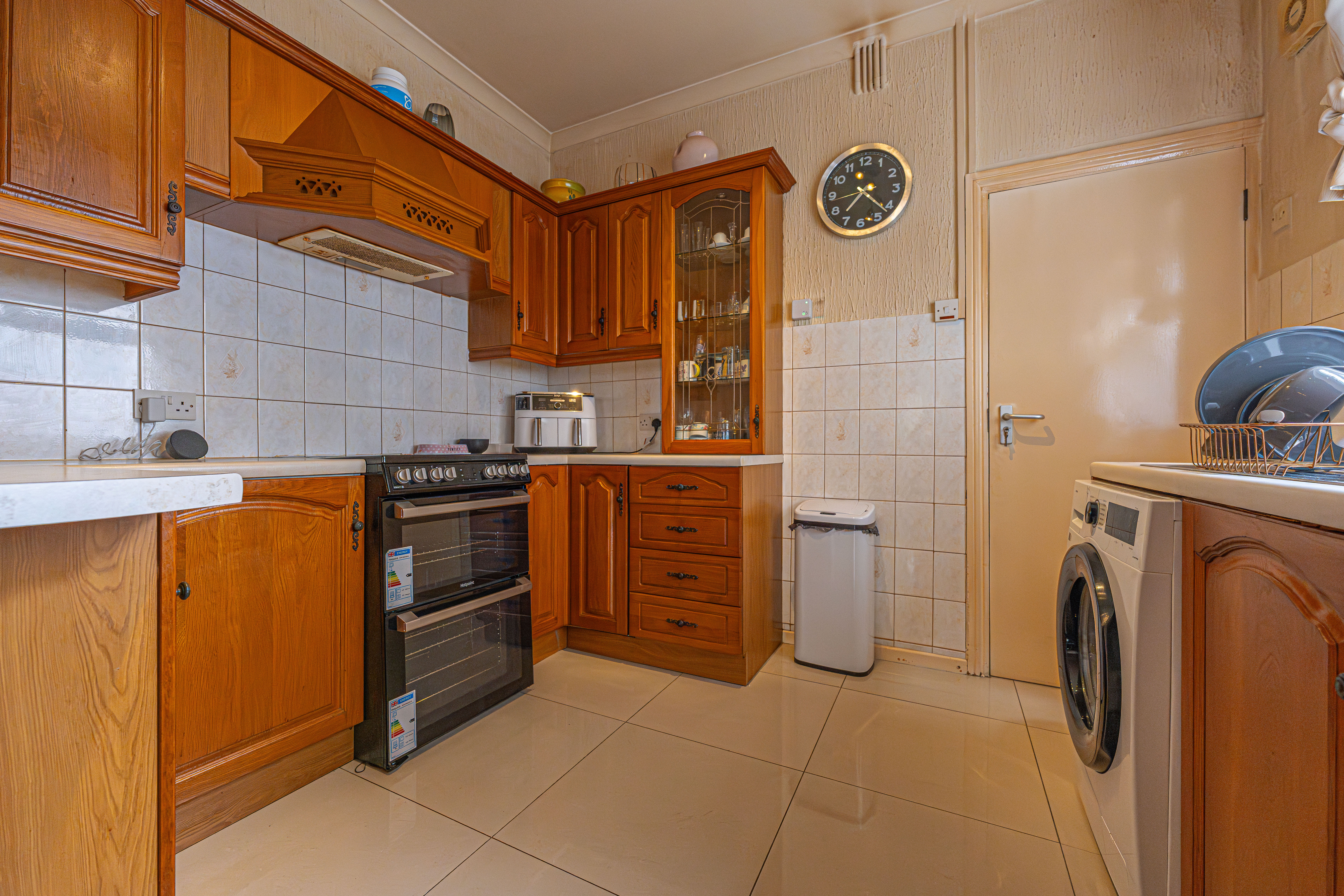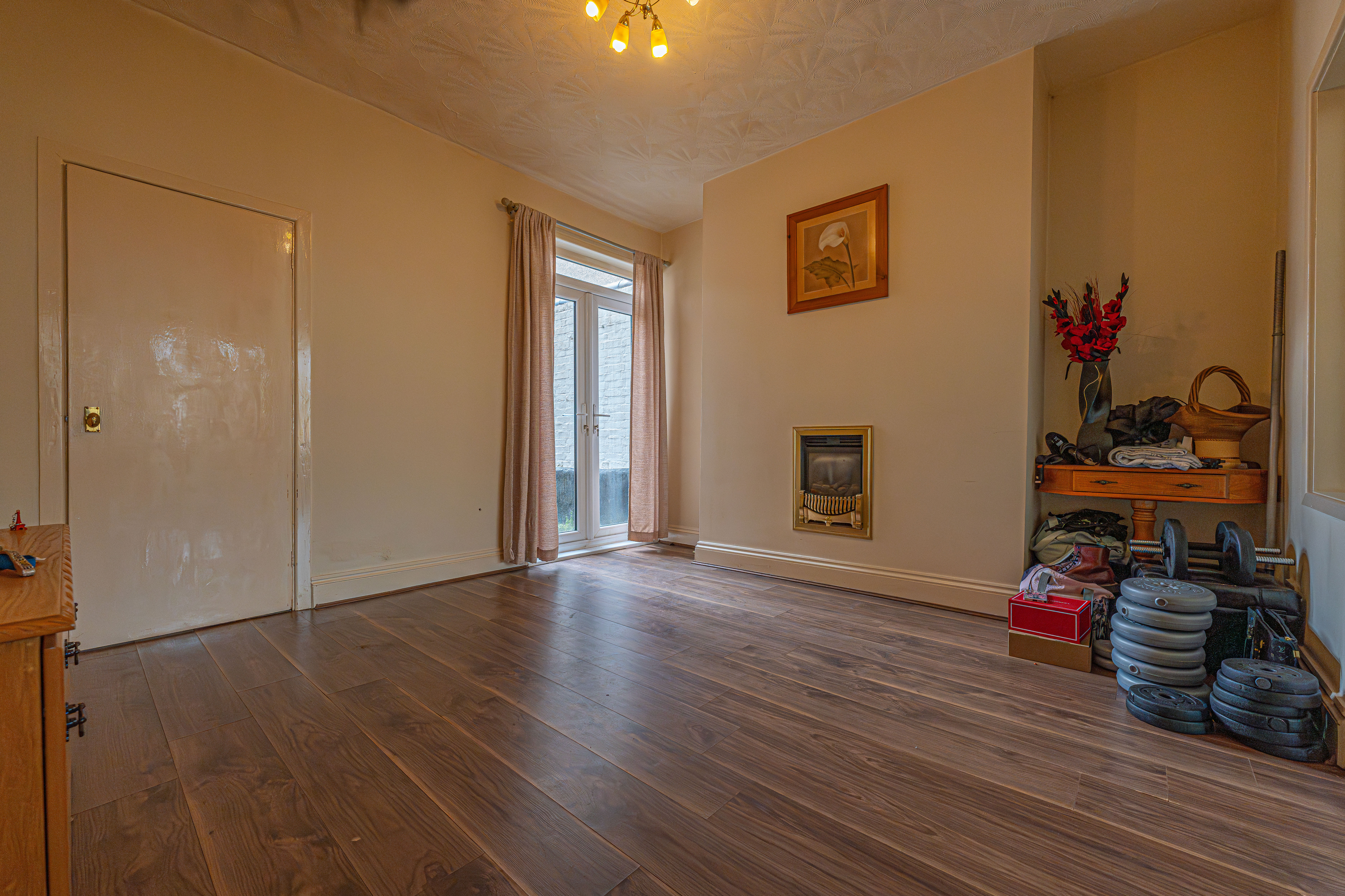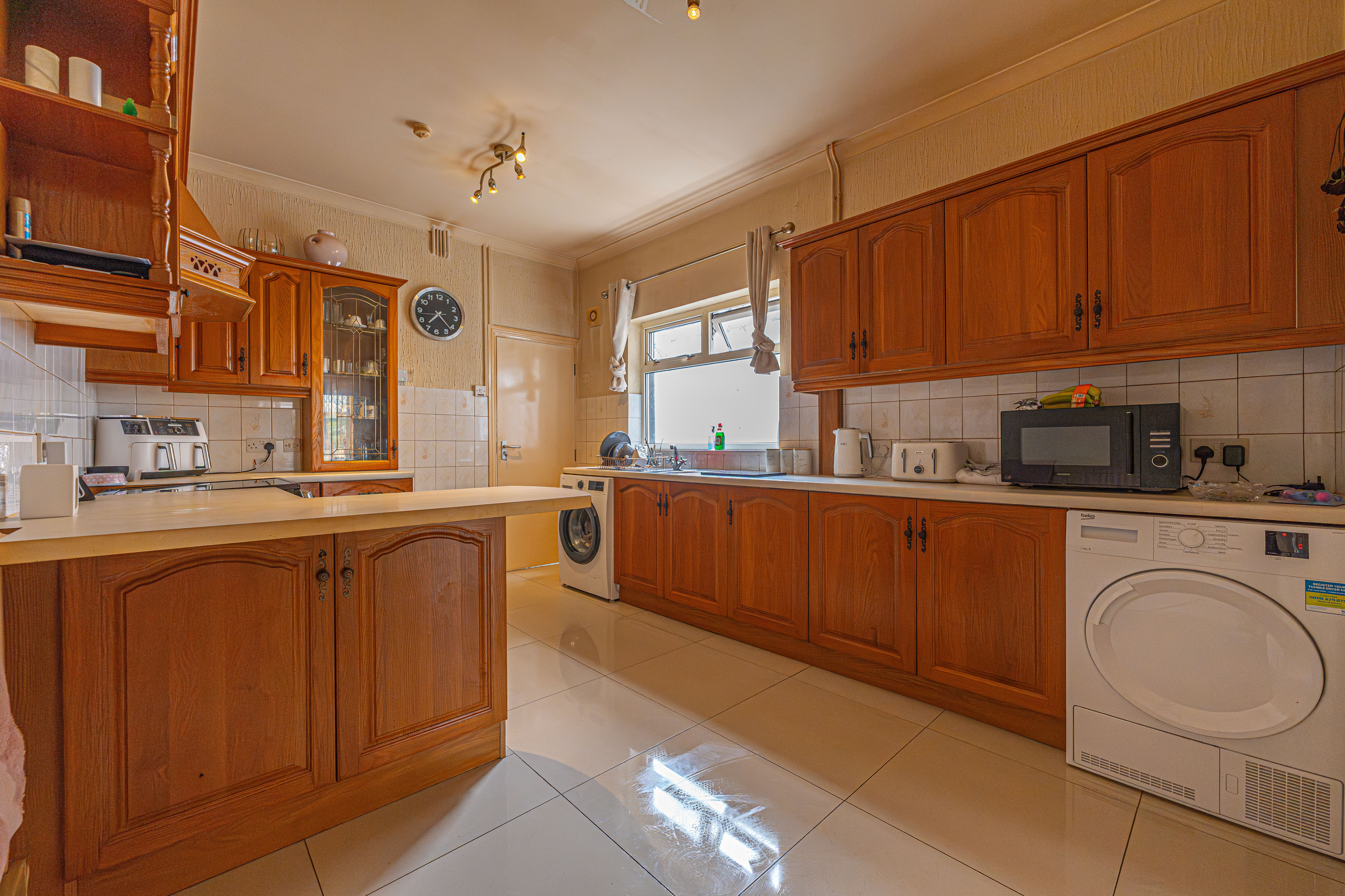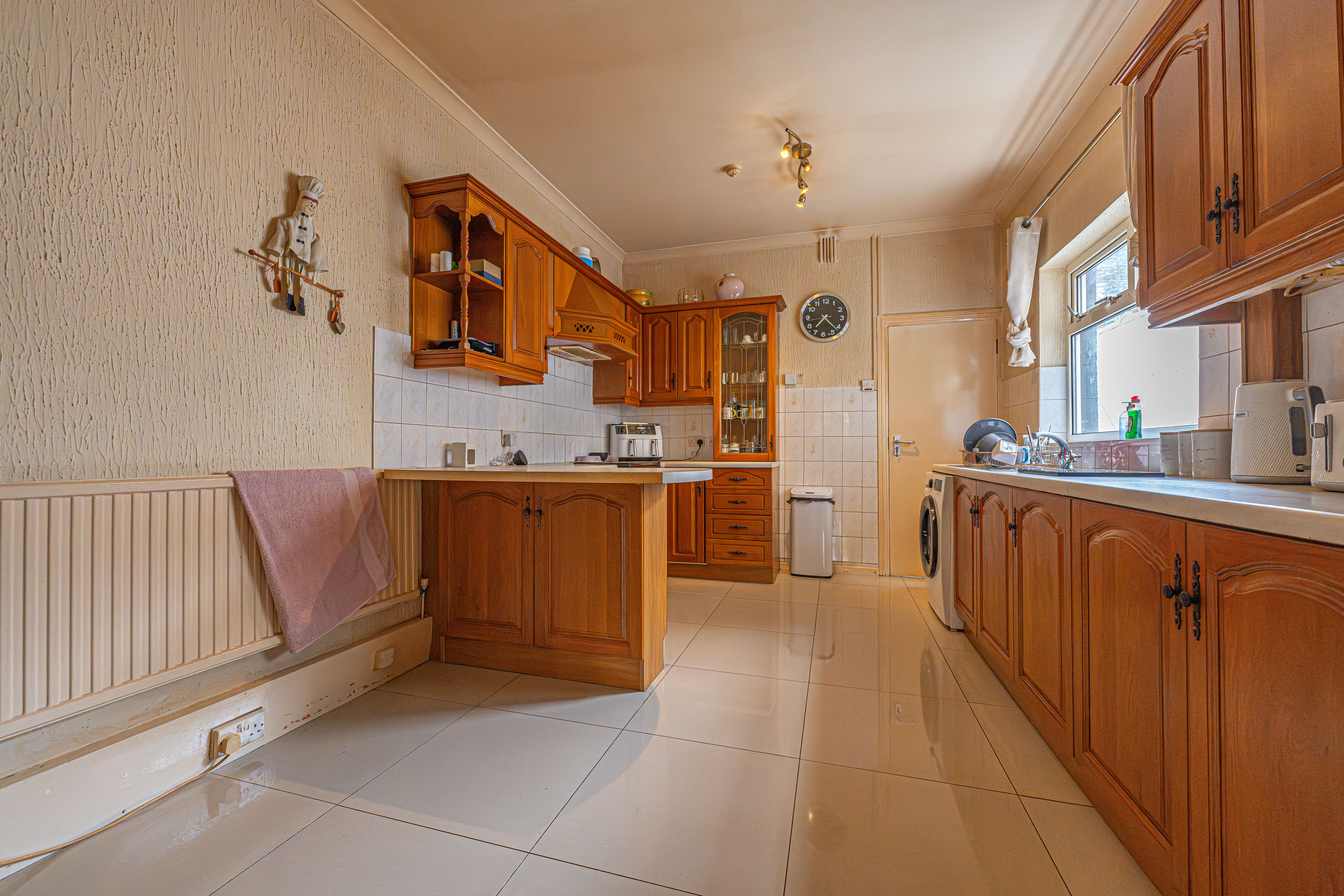 We enter this family home to the front, with a large corridor leading us into the lounge and dining room, with the neighbouring reception rooms both spacious in design and connected by an airy open walkway with sliding doors. The front facing lounge is flooded by natural light streaming in through a fabulous bay window, while the dining room features a glass doorway opening out to the garden, making both spaces perfect for relaxing, dining and entertaining guests. Continuing through the house we arrive at the well equipped kitchen, which offers plenty of counter space, various storage options, and space to accommodate numerous appliances. Sat at the rear of the house we can find a hallway with another access point to the garden, while also connecting to a helpful utility or storage room.