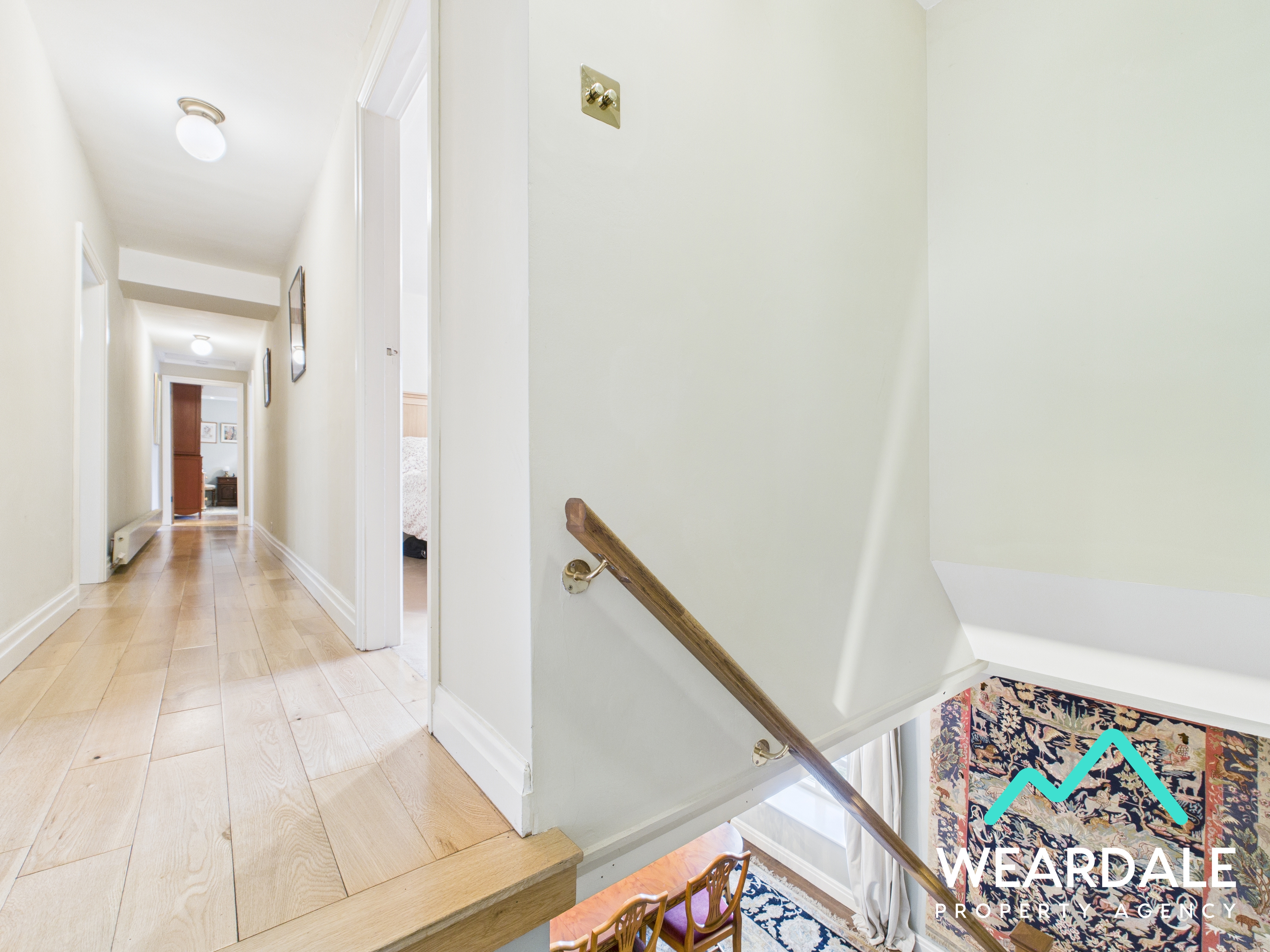 - An open iroko wooden staircase rises from the dining room to the first-floor landing which provides access to the property’s 5 bedrooms and family bathroom - Solid oak flooring - Neutral decorated - Radiator - Ceiling light fittings - Access to 2 loft spaces, both fully insulated and benefit from lighting. One has a water storage tank and pumps (not in use as water pressure high)