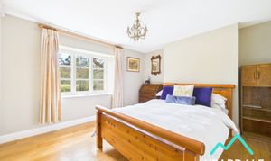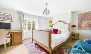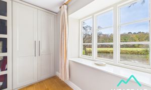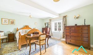 - Positioned to the Eastern end of the property and accessed directly from the landing - Large double room with en-suite bathroom - Wooden framed single glazed window to the Southern aspect with beautiful views over the nearby pond and surrounding countryside - Solid oak flooring - 2 column radiators - Exposed stone wall to one side - Neutrally decorated - Ceiling and wall light fittings - Large floor to ceiling integrated storage wardrobes with ample space for additional freestanding storage furniture