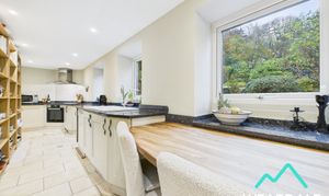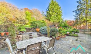 Step outside into the expansive outdoor space of this property and discover a serene retreat waiting to be enjoyed. The large garden offers stone paved patio seating areas, ideal for al fresco dining, with a set of stone steps leading to a spacious lawn. This private and peaceful outdoor space is secure for both children and pets being fully enclosed by fencing, whilst being flanked by the large driveway and serene Oak and Beech woodland.