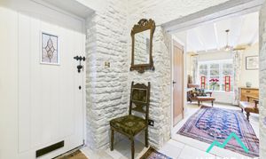 - Main access to the property is gained through a wooden door with a small frosted glass pane located to the Eastern end of the property and providing access to the entrance hall - The hall provides onward internal access to the study - uPVC window to the Southern aspect set in an exposed stone wall - Stone flooring - Neutrally decorated - Timber panelled pitched ceiling - Ceiling light fitting