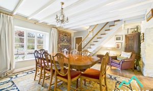 - Positioned to the front of the property in between the lounge and library, providing access to both, in addition to further access to the kitchen at the rear of the property - Wooden framed single glazed window to the Southern aspect - Exposed stone walls to 2 sides - Exposed wooden ceiling beams - Oak flooring - AGA multi fuel burning stove set on a stone hearth and in a stone surround - Radiator - Ceiling light fitting - An open iroko wooden staircase rises from the dining room to the first-floor landing