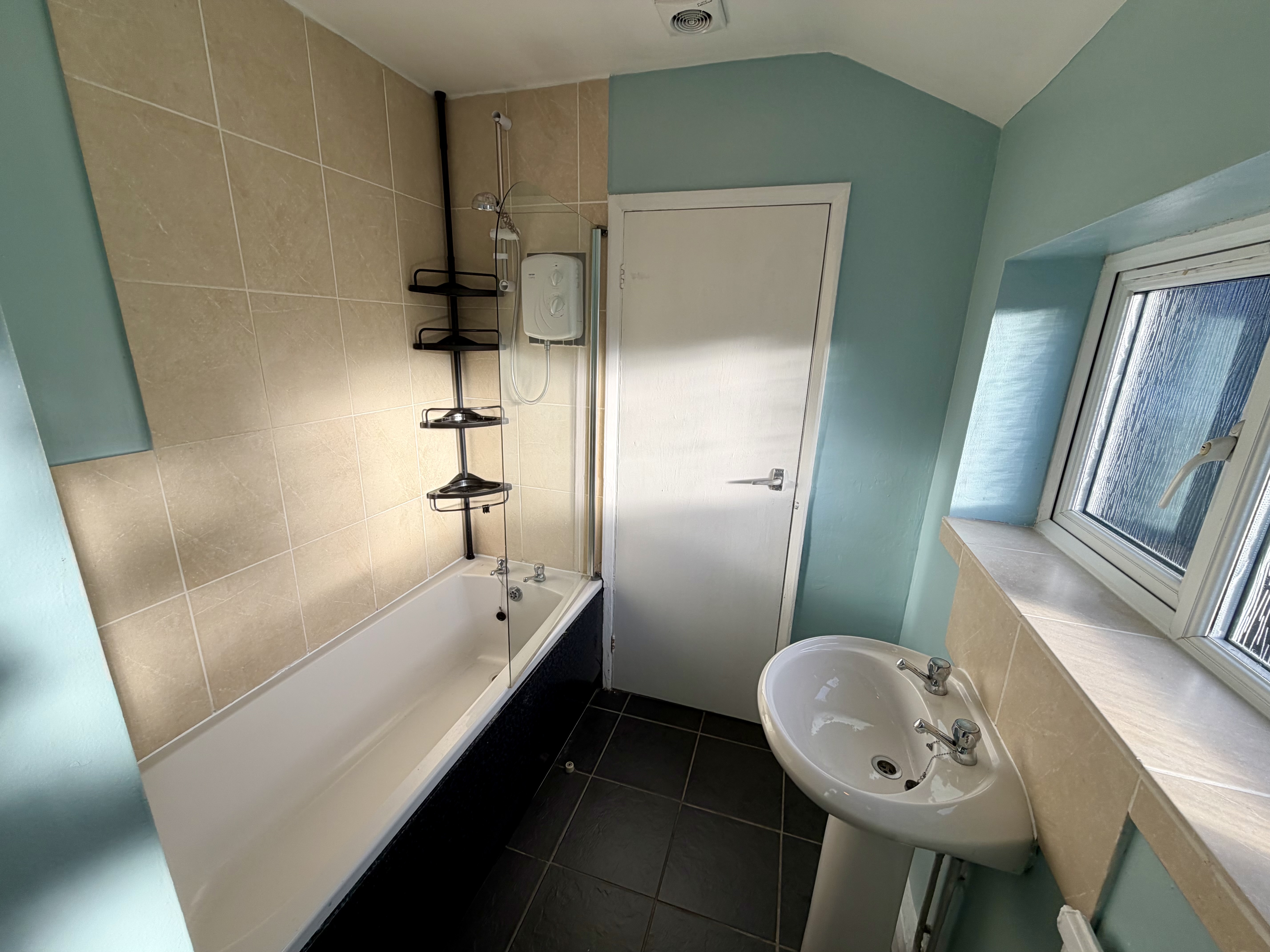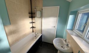 The bathroom is downstairs and complete with low level hand basin, WC and bath with overhead shower.