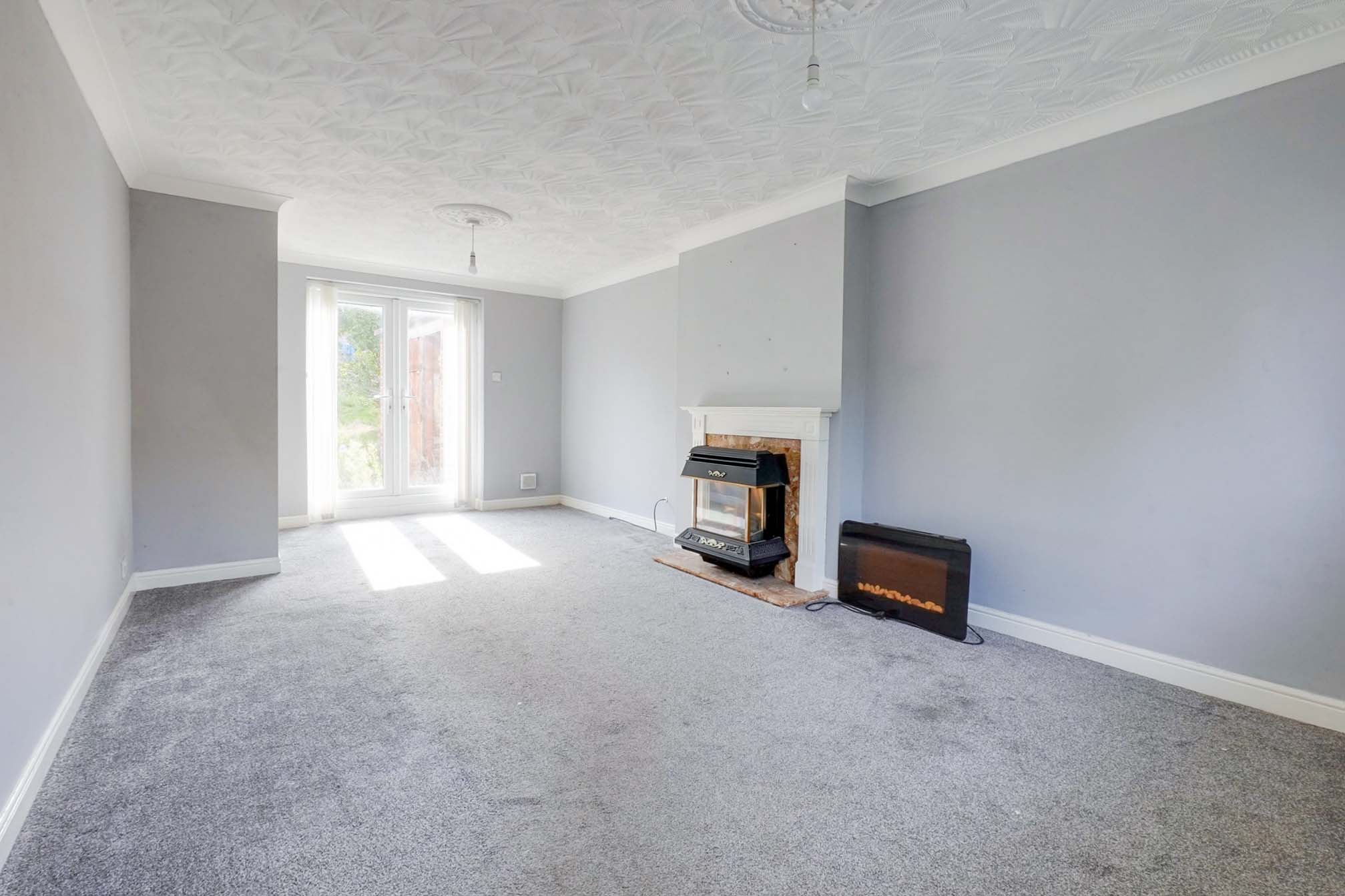 Measurement narrowing to 2.69 m. With double glazed window to the front elevation, double glazed French doors to the rear elevation, fireplace with surround and hearth, radiator.
