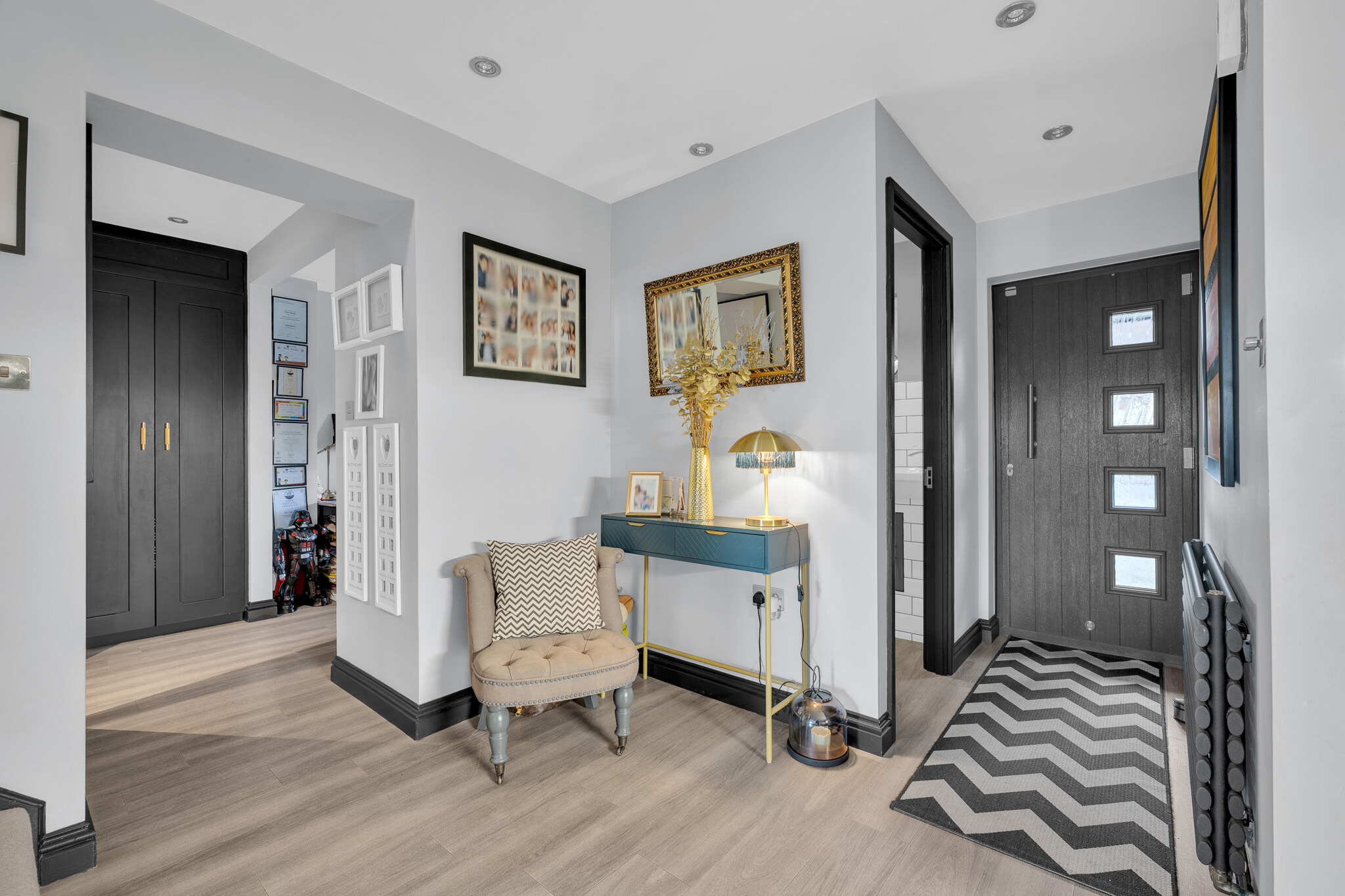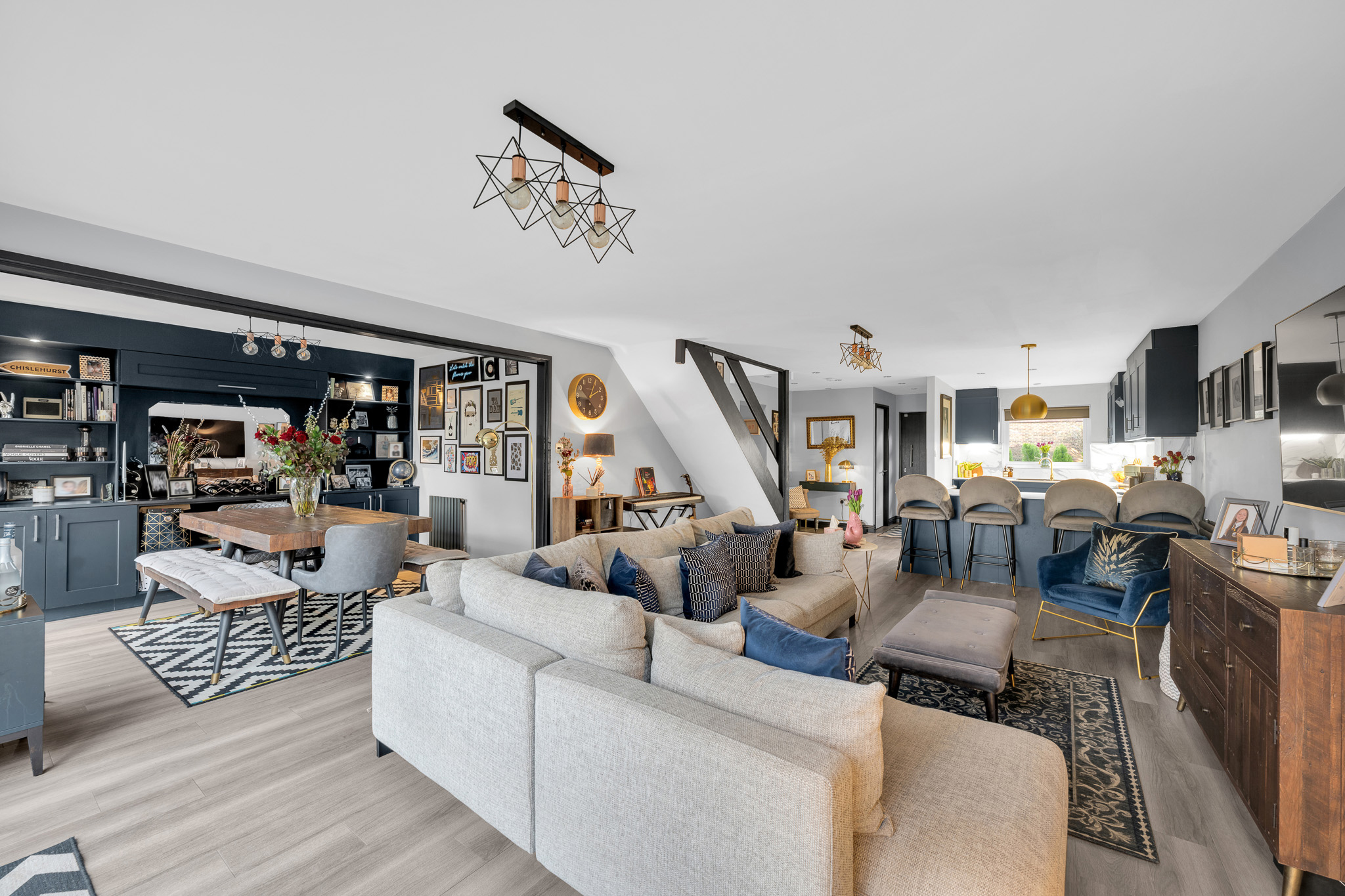 Inside, the home immediately impresses with its exceptional presentation and sense of space. The heart of the property is the expansive open-plan kitchen, dining and sitting area spanning over 850 sq ft — a superb environment for entertaining and everyday family living.