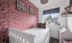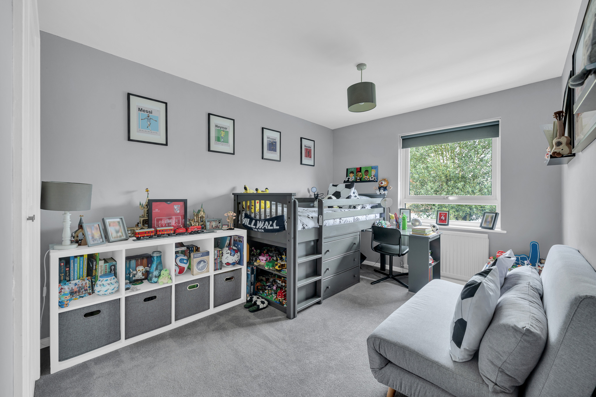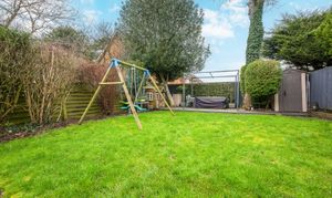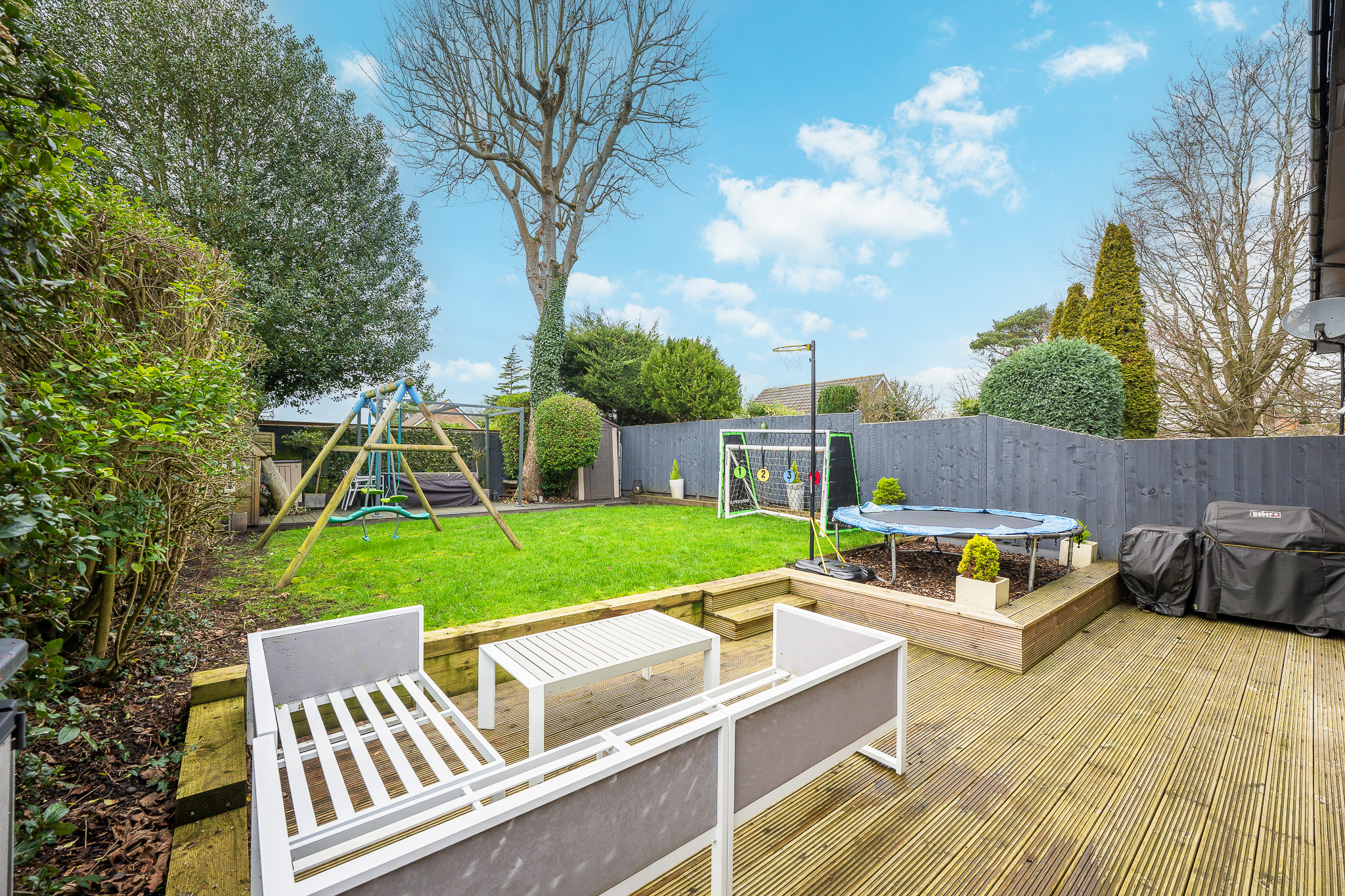 The south-westerly garden enjoys afternoon and evening sun, with bi-fold doors extending the living space onto the patio — ideal for entertaining. The setting combines privacy with practicality, making it well suited to families.