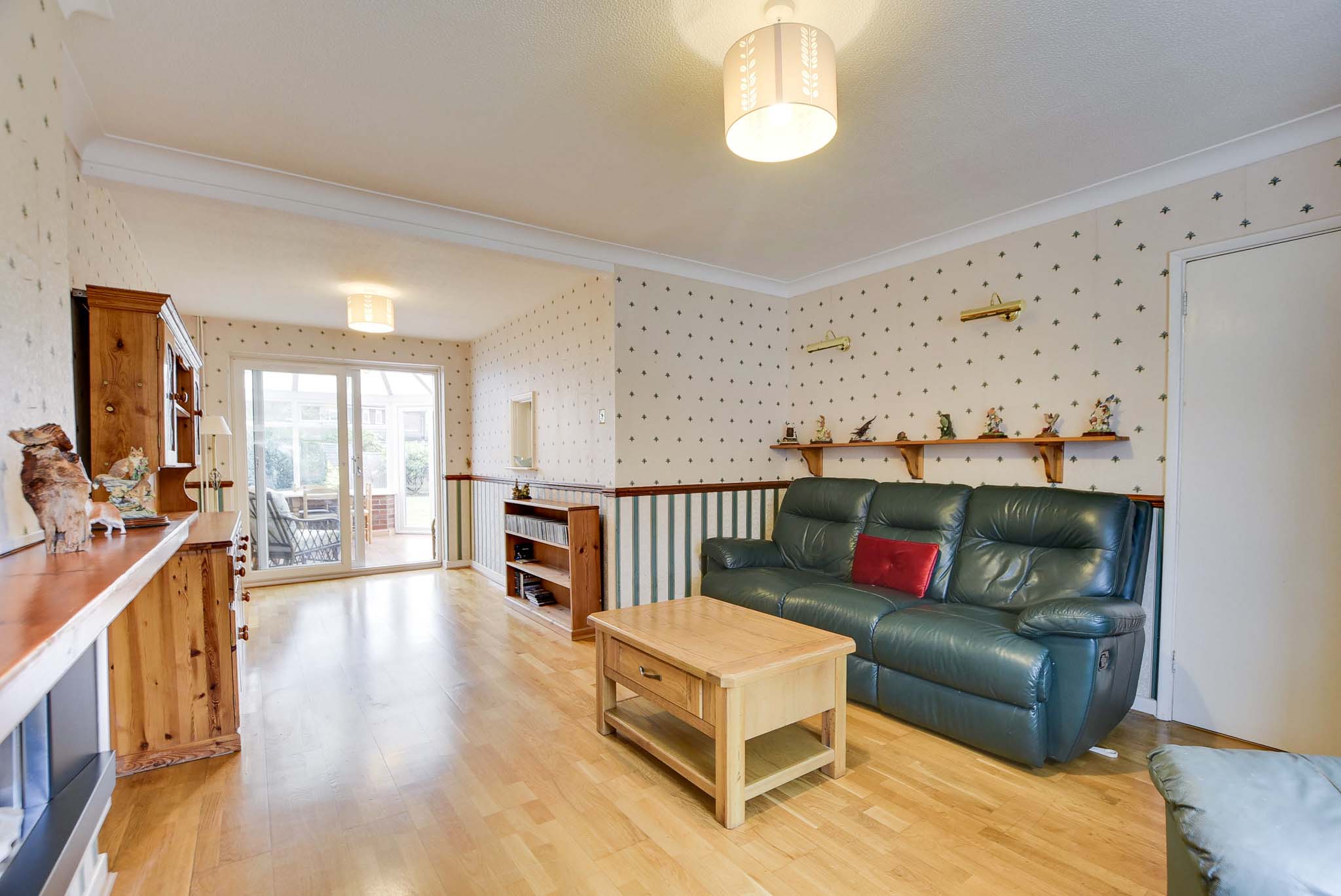 Measurement narrowing to 2.42 m. With double glazed half bay window to the front elevation, double glazed patio doors to the rear elevation, laminate floor, gas fire, boarded up serving hatch, two radiators.