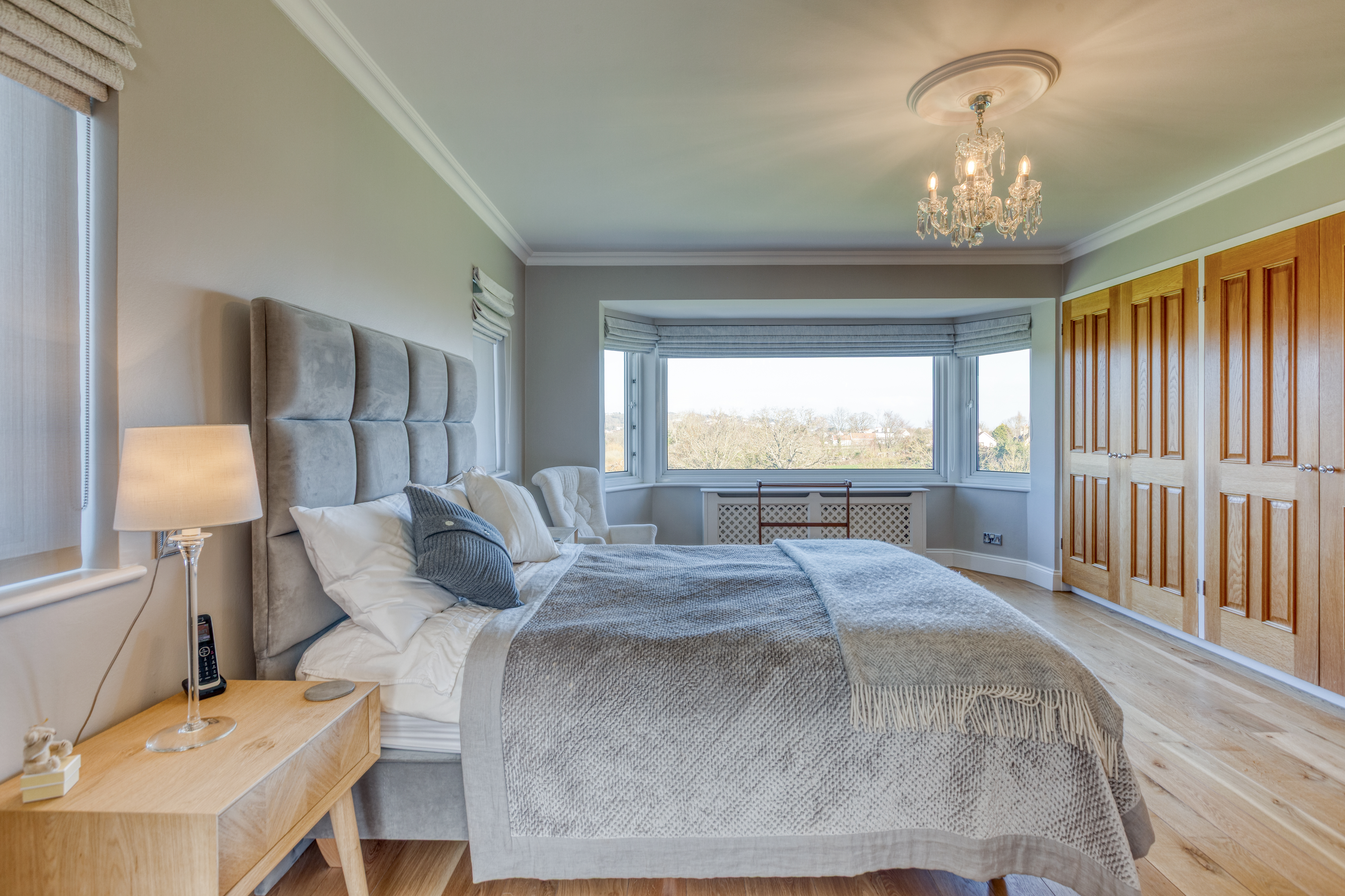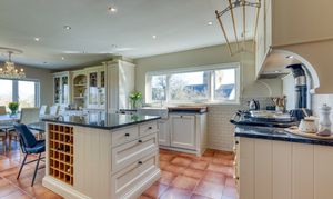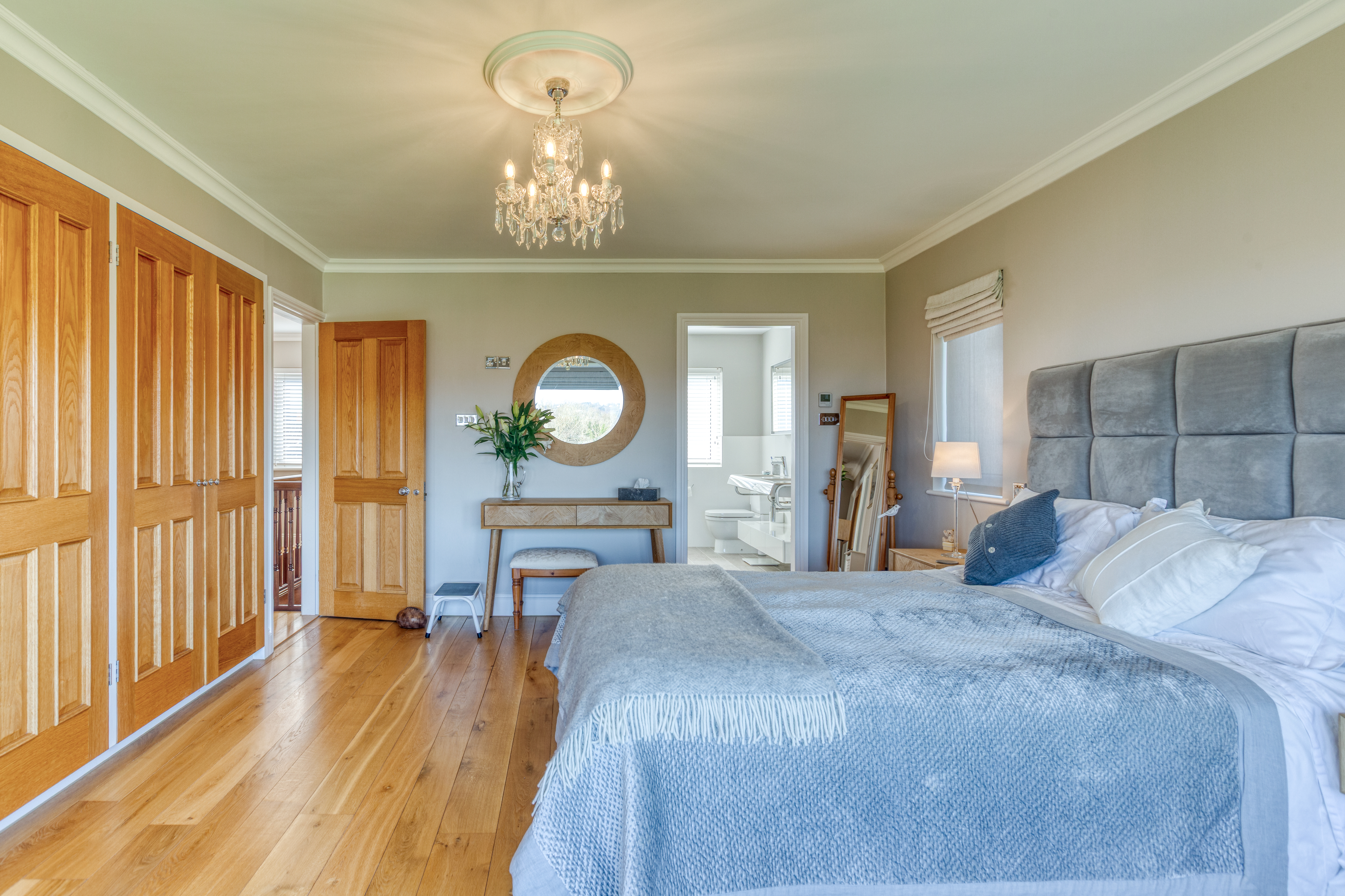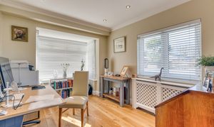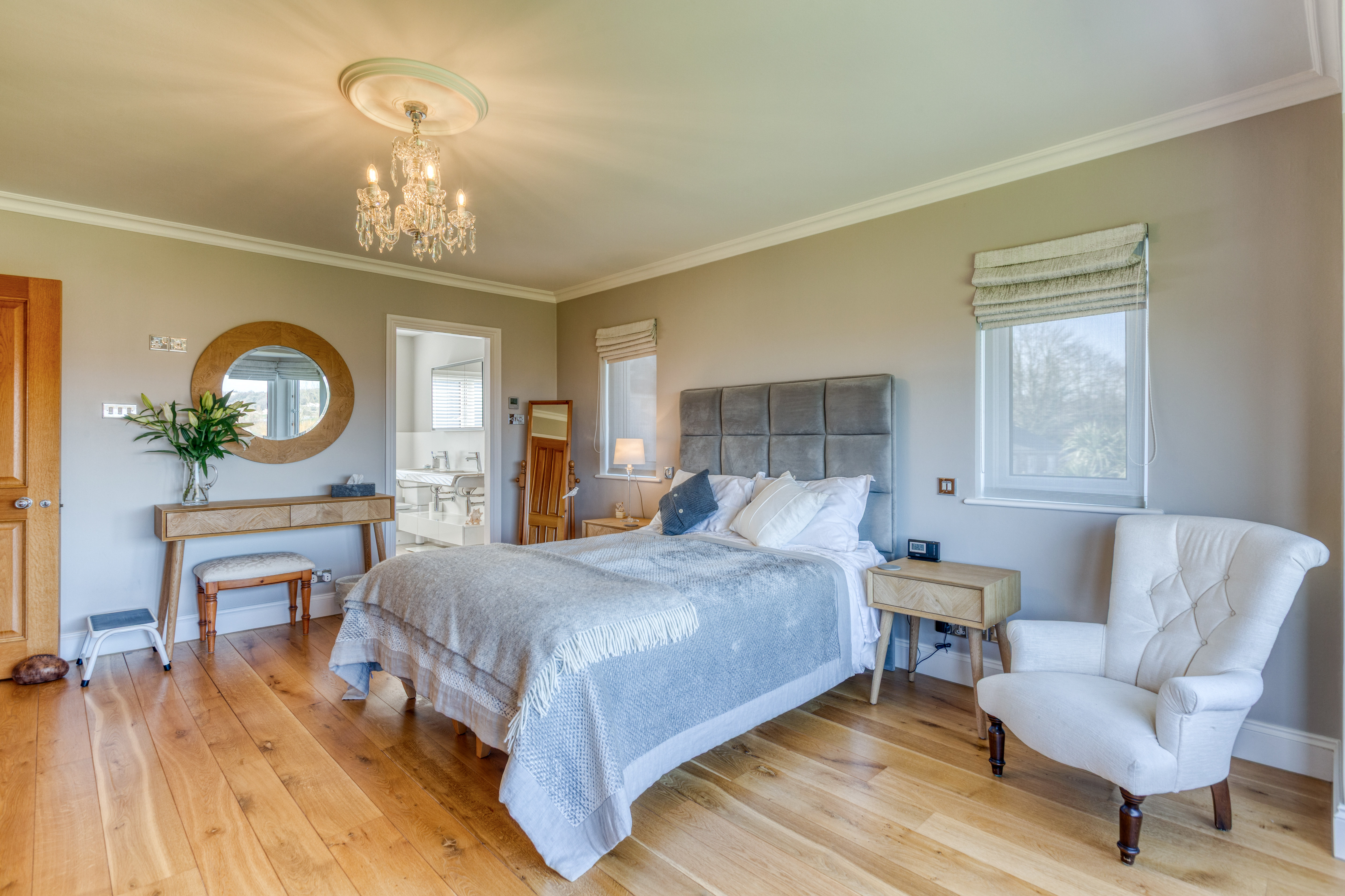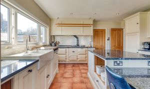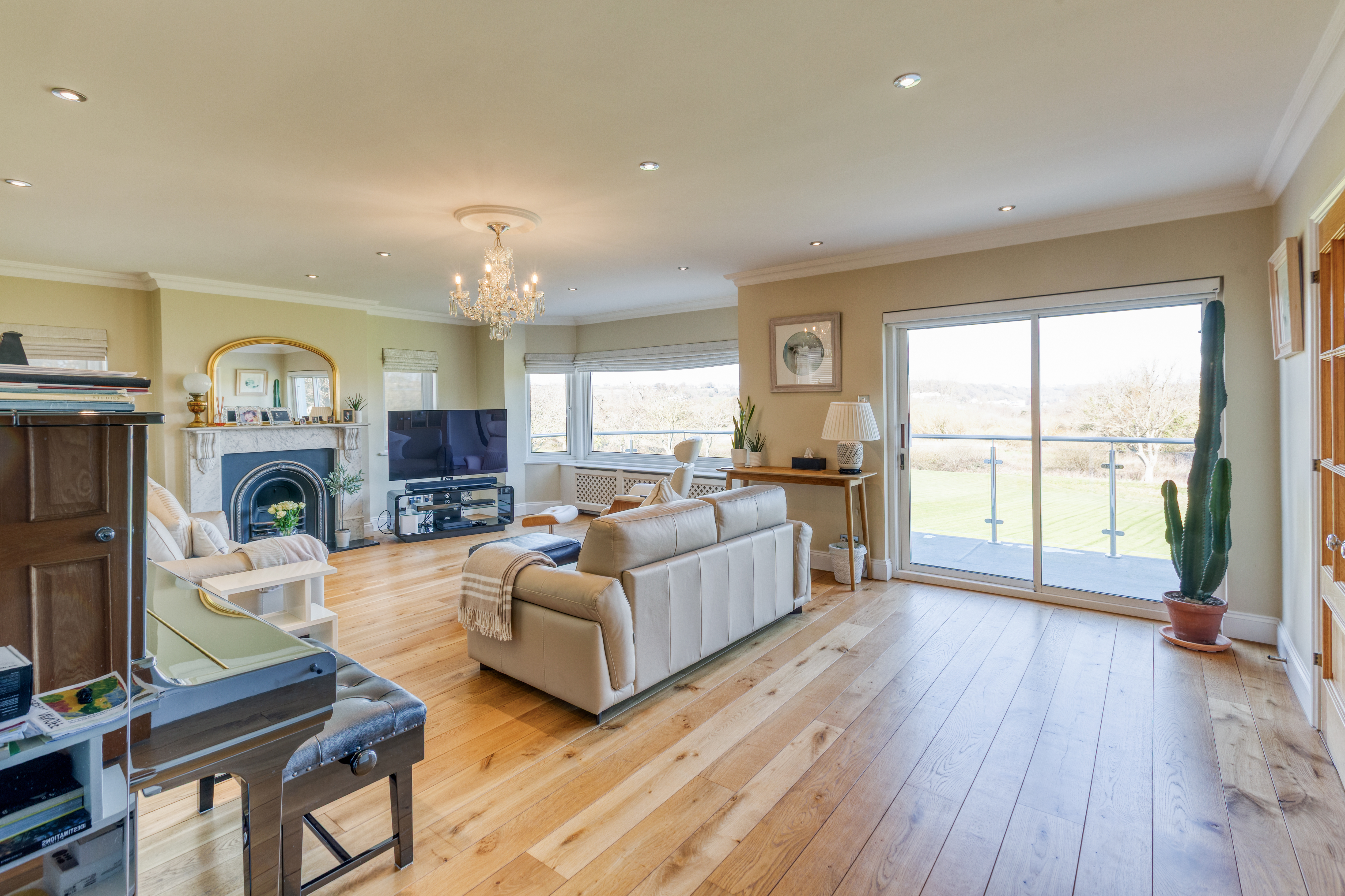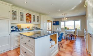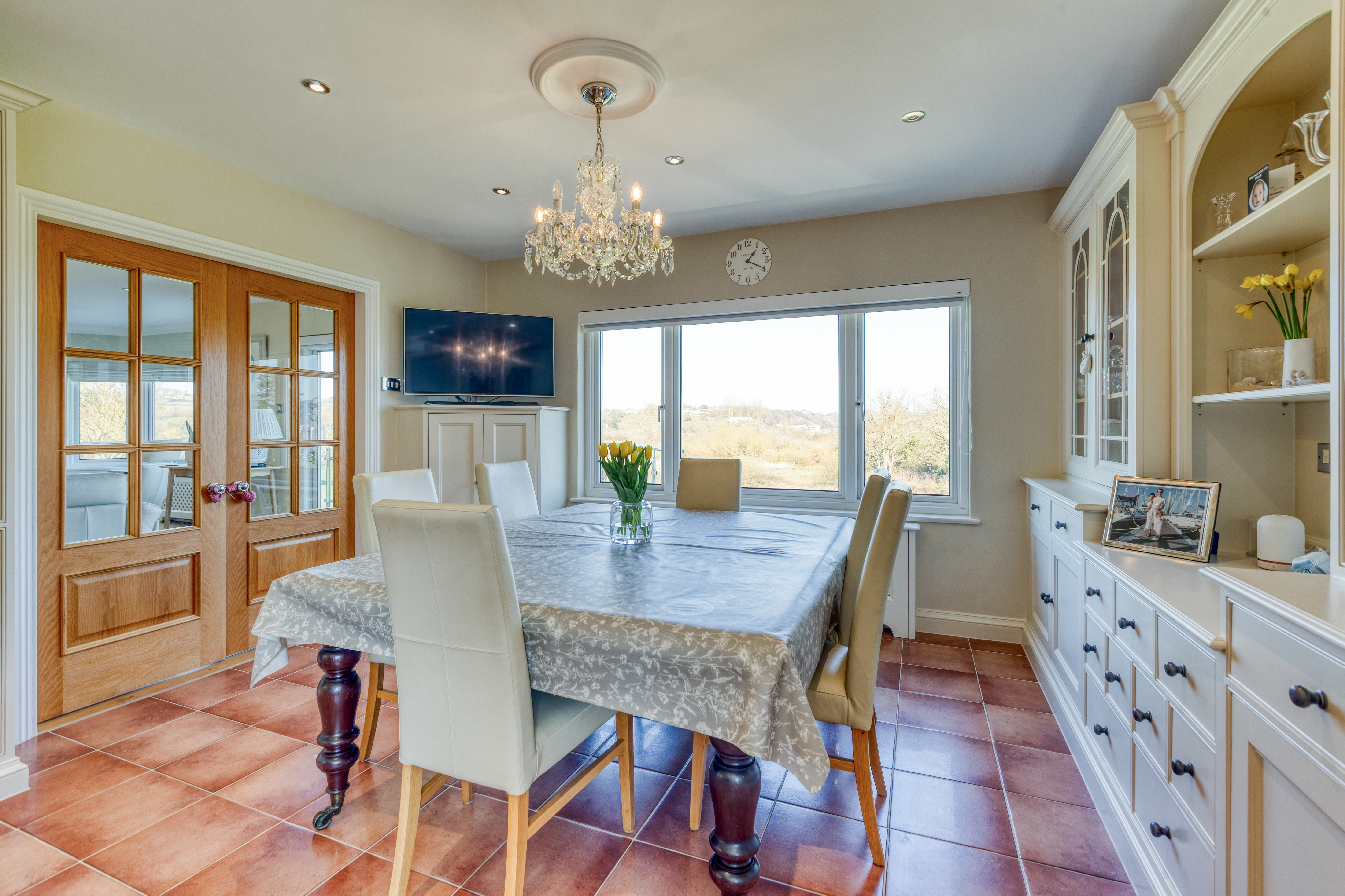 The accommodation is thoughtfully arranged to take full advantage of the surrounding countryside. A bright sitting room enjoys attractive rural views and opens directly onto a balcony, creating an ideal space to relax while overlooking the field and countryside beyond. The property also benefits from two dedicated offices, providing excellent flexibility for home working or study.