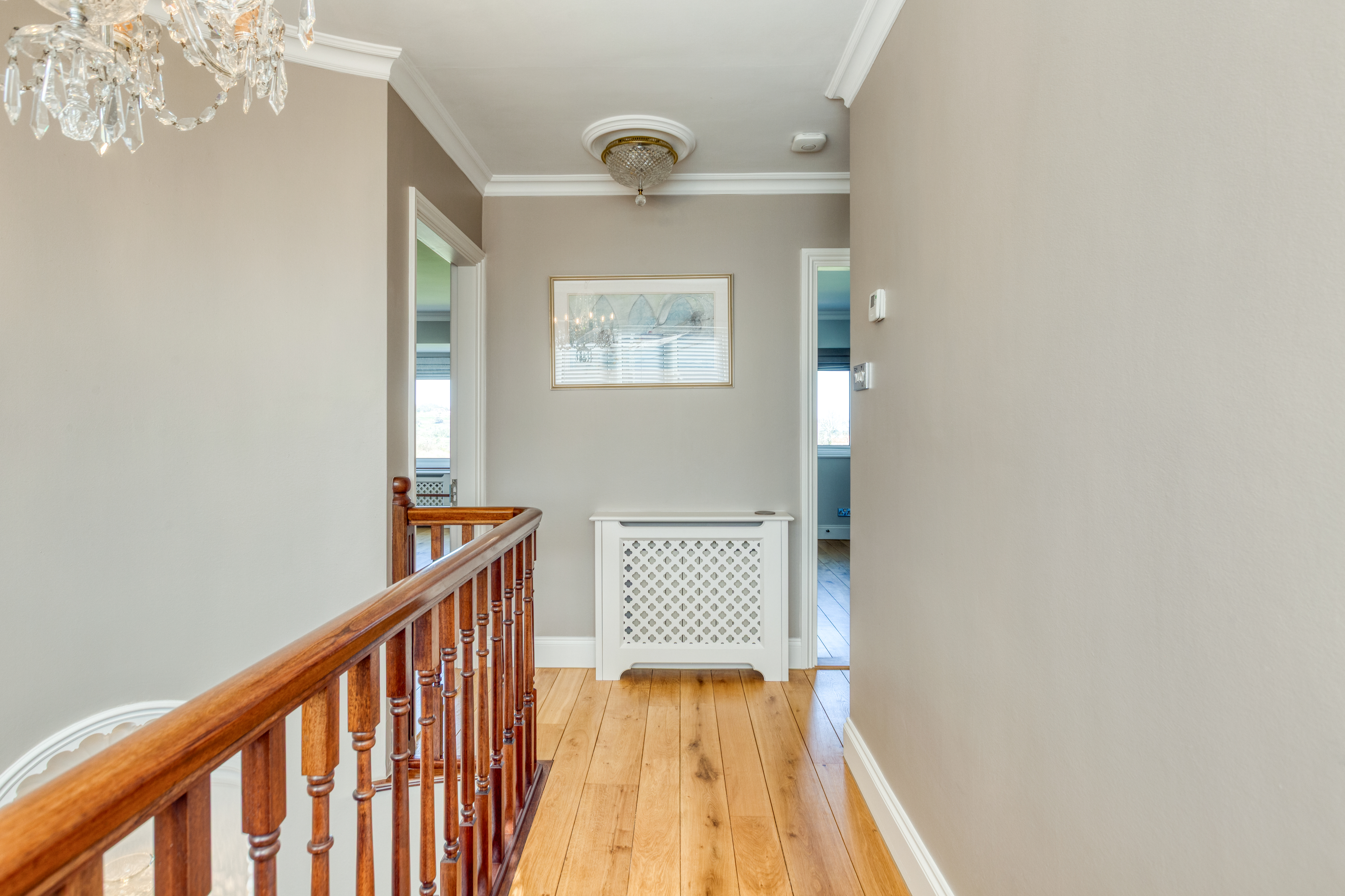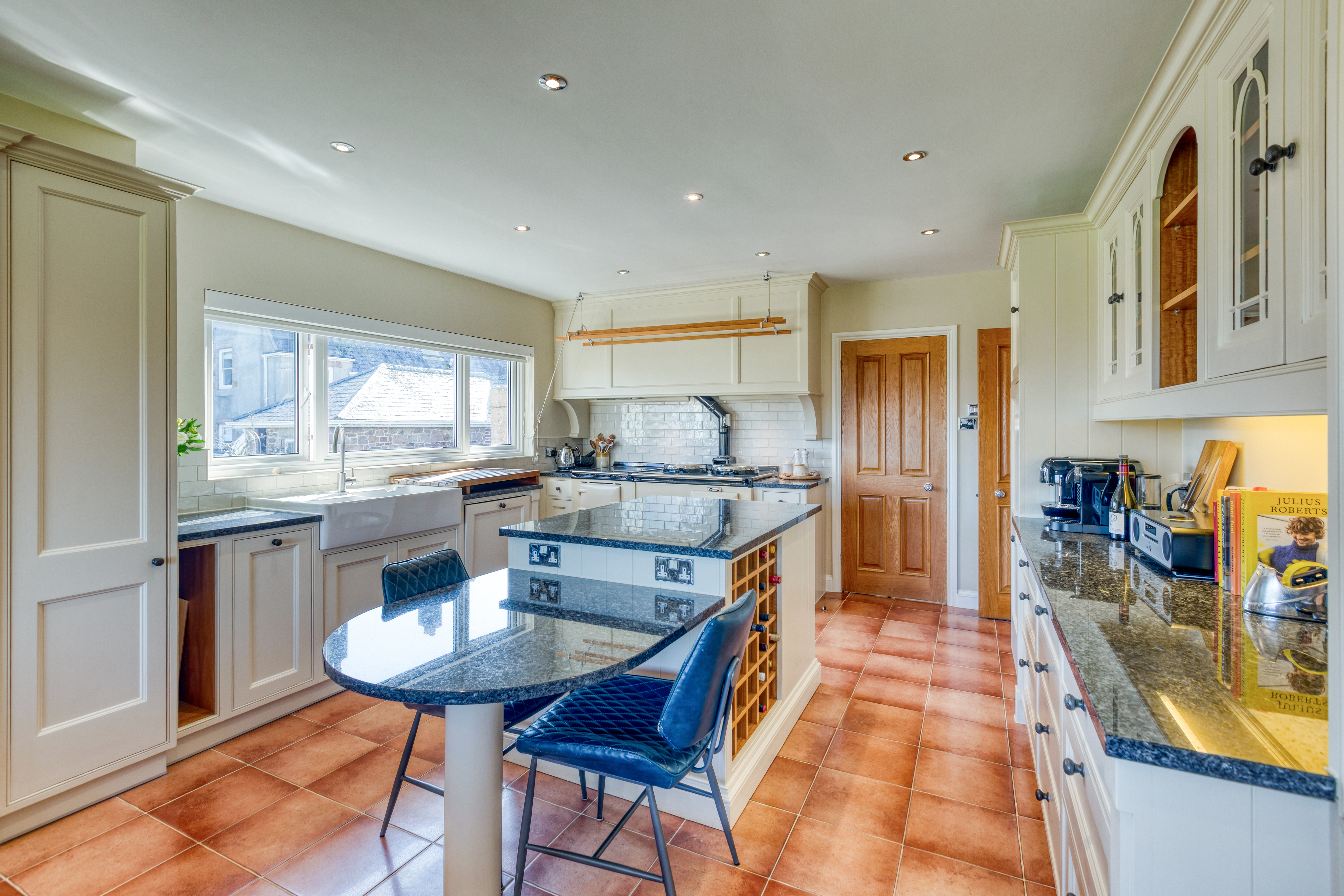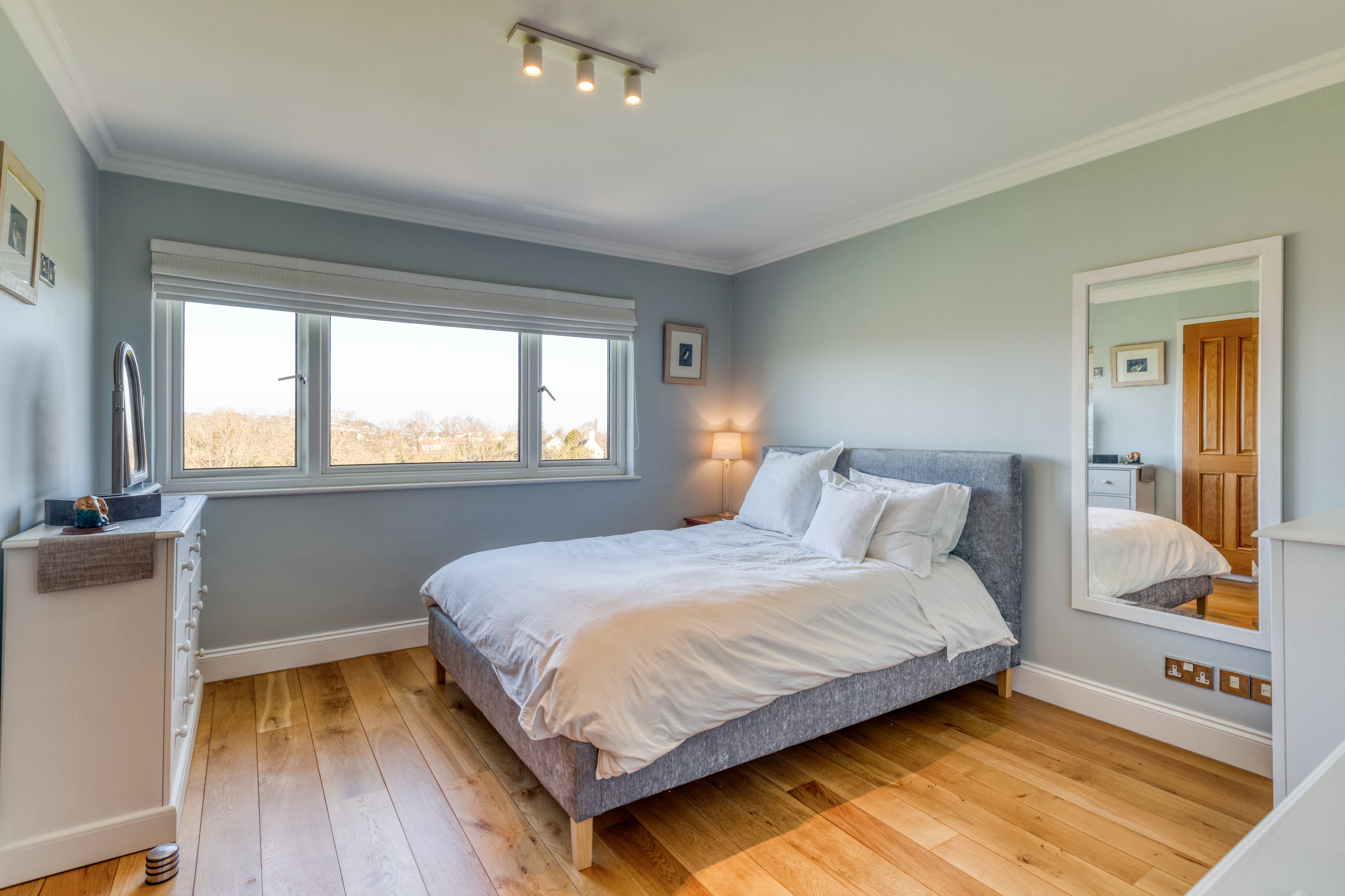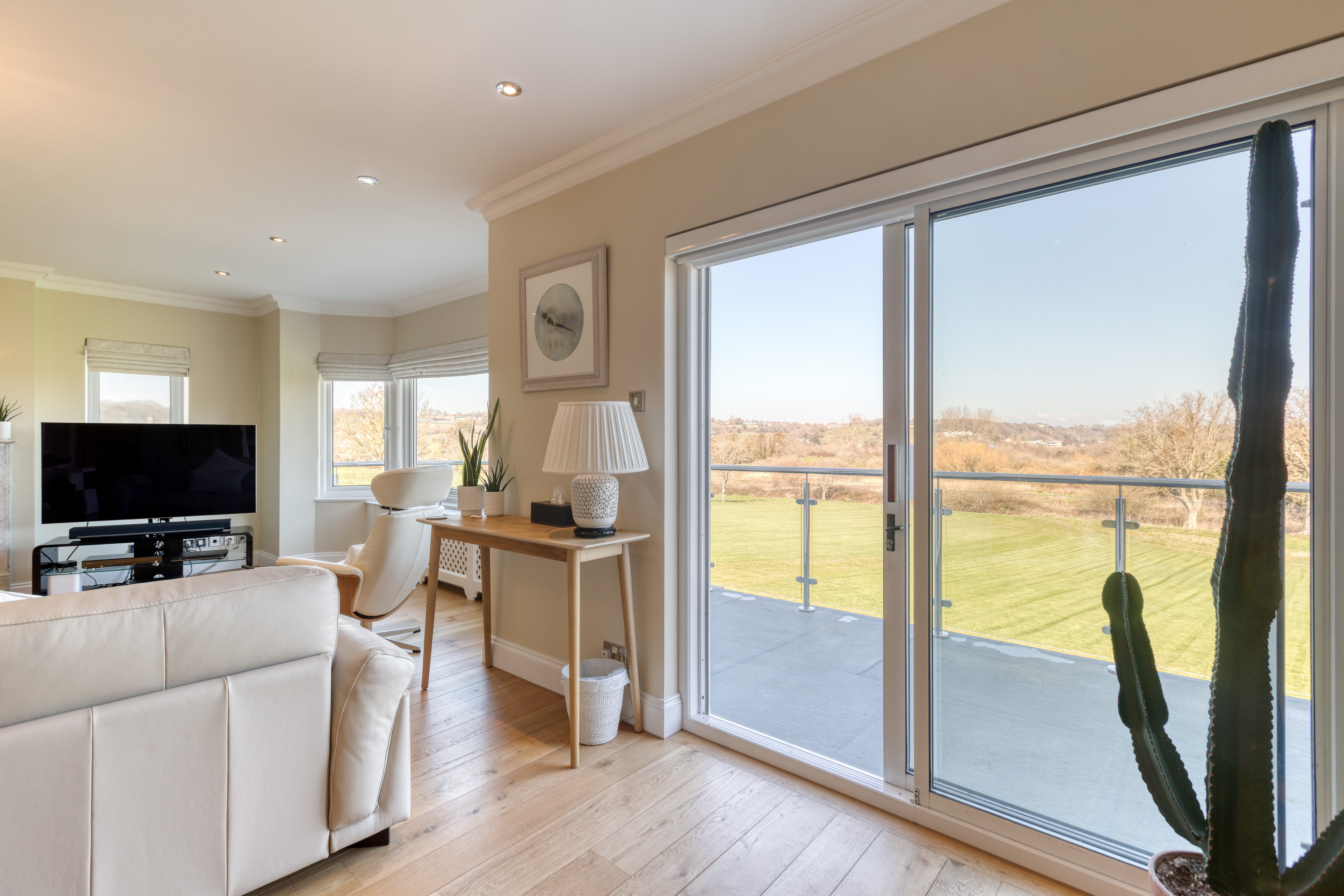 The accommodation is thoughtfully arranged to take full advantage of the surrounding countryside. A bright sitting room enjoys attractive rural views and opens directly onto a balcony, creating an ideal space to relax while overlooking the field and countryside beyond. The property also benefits from two dedicated offices, providing excellent flexibility for home working or study.