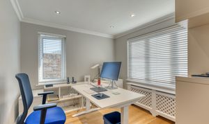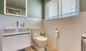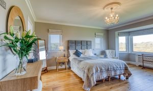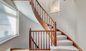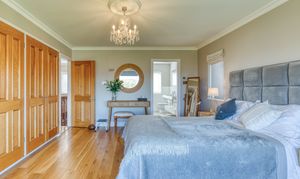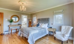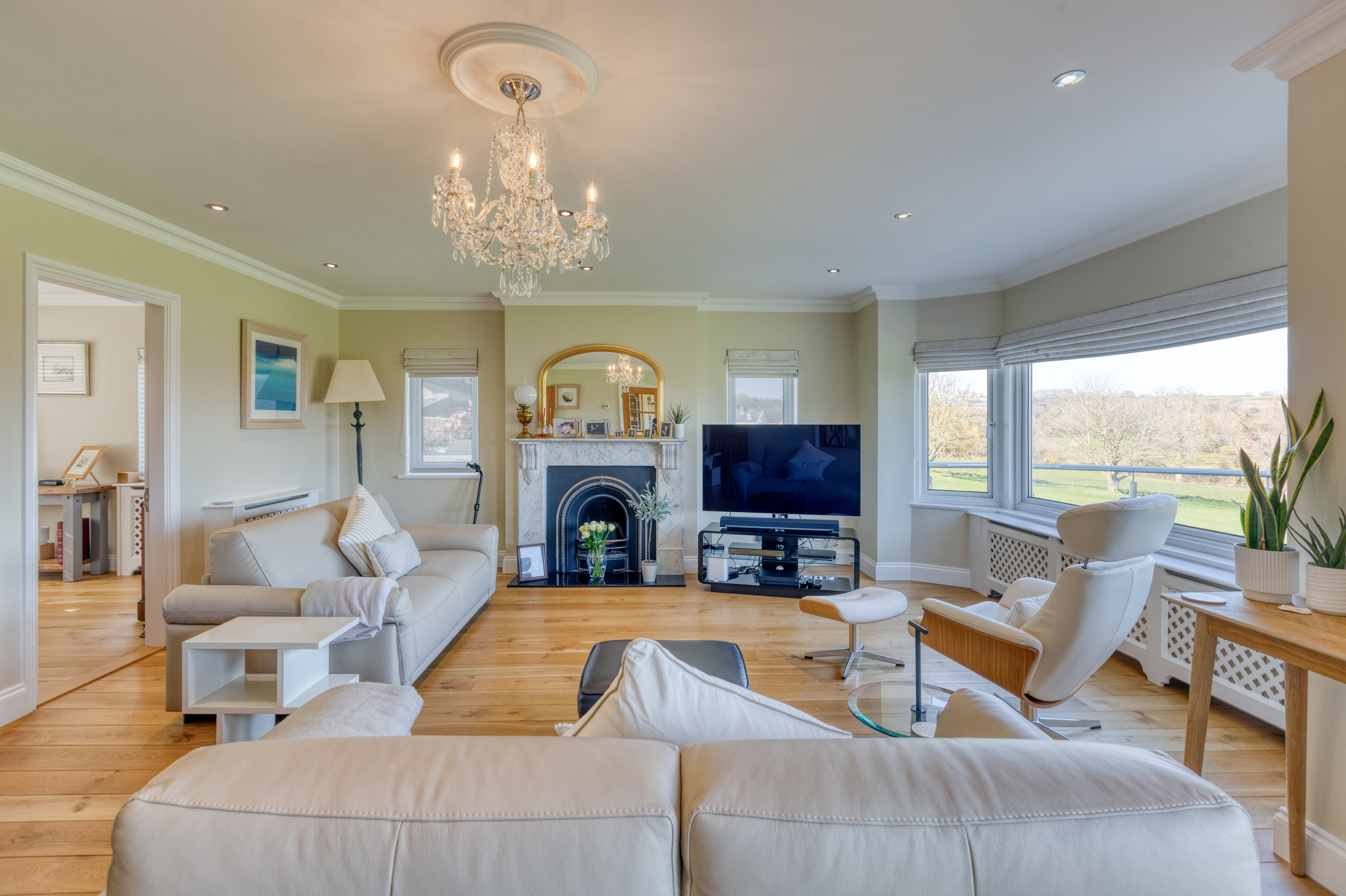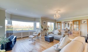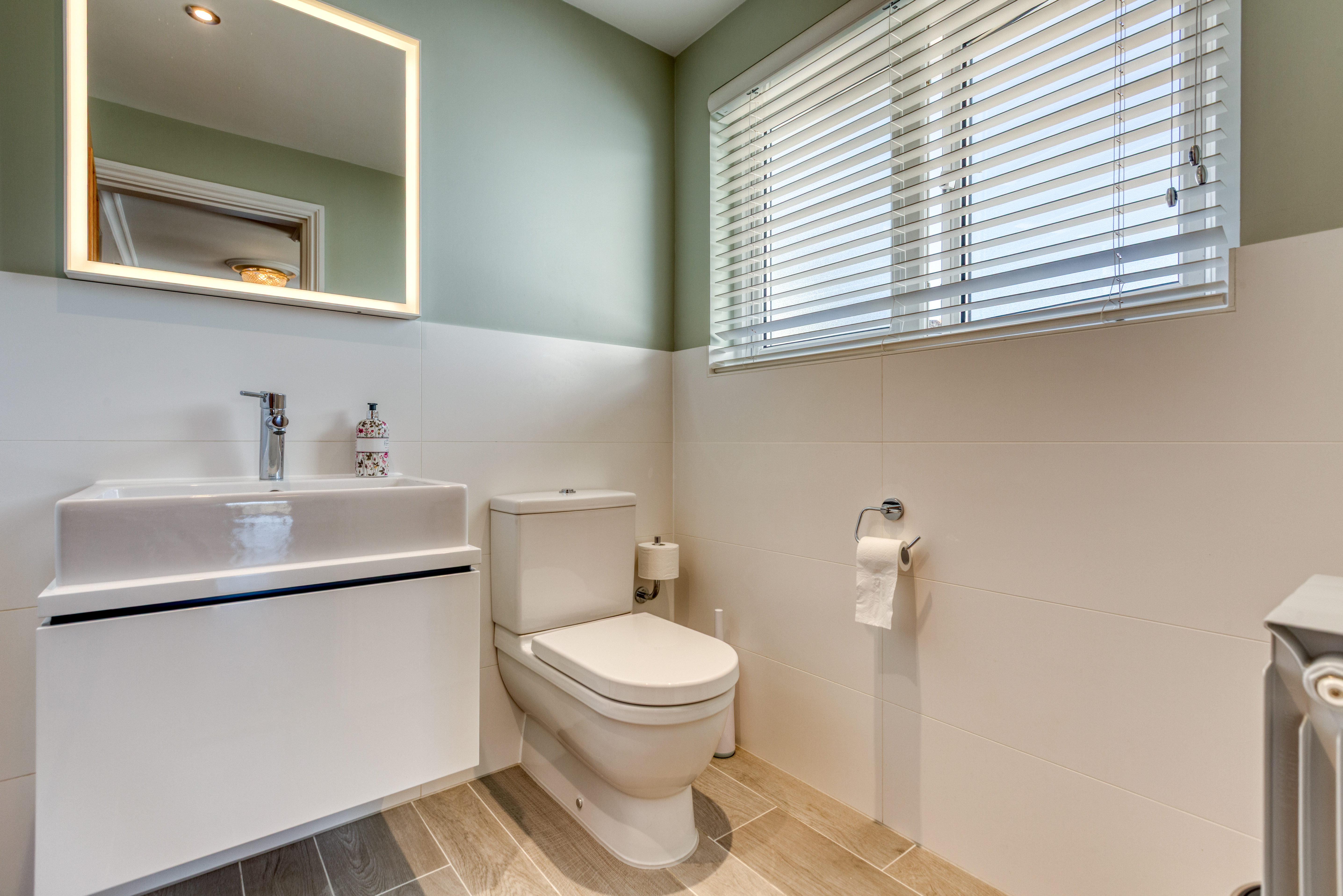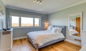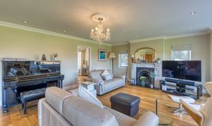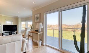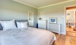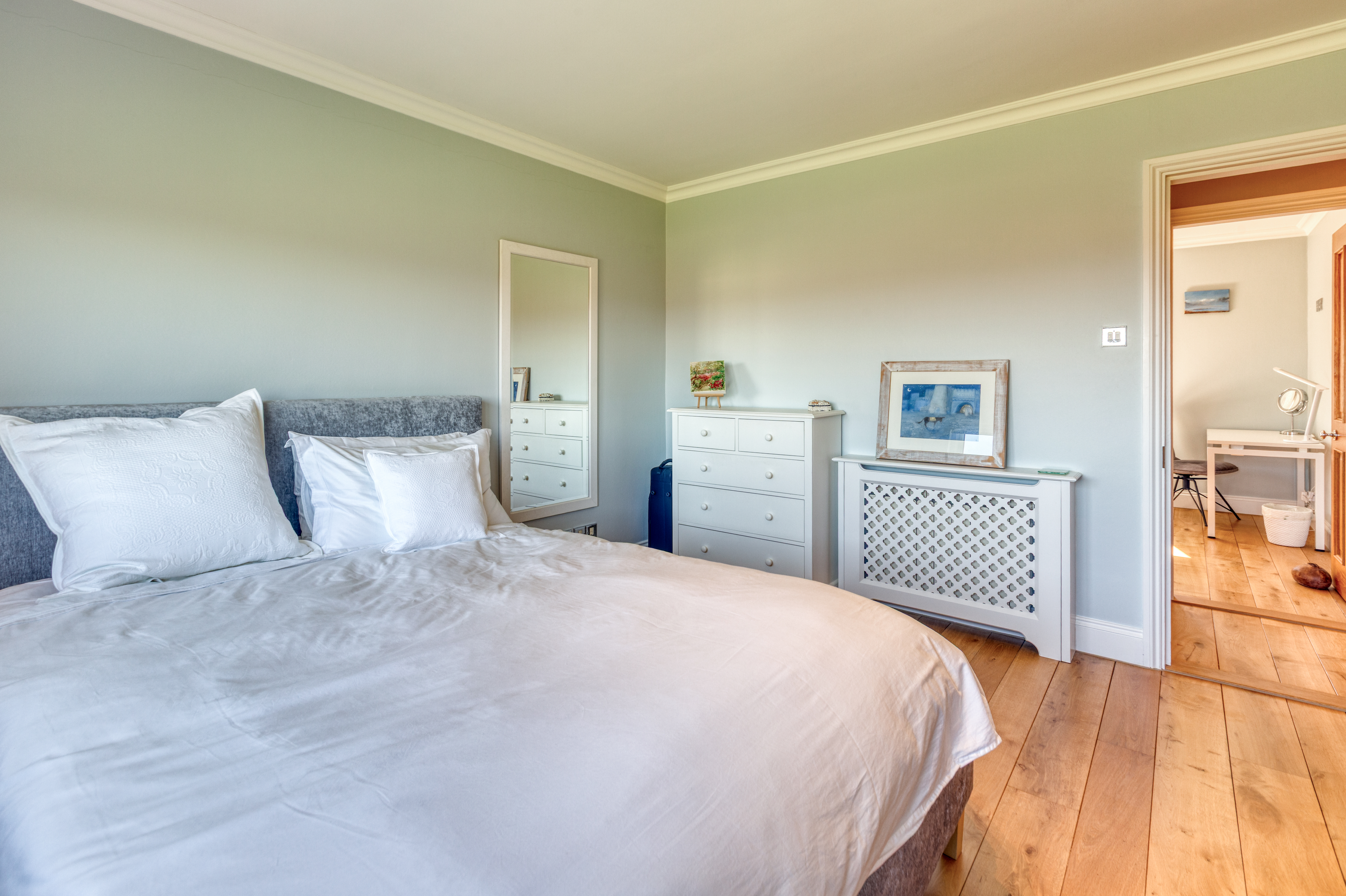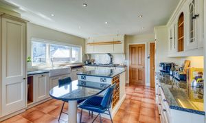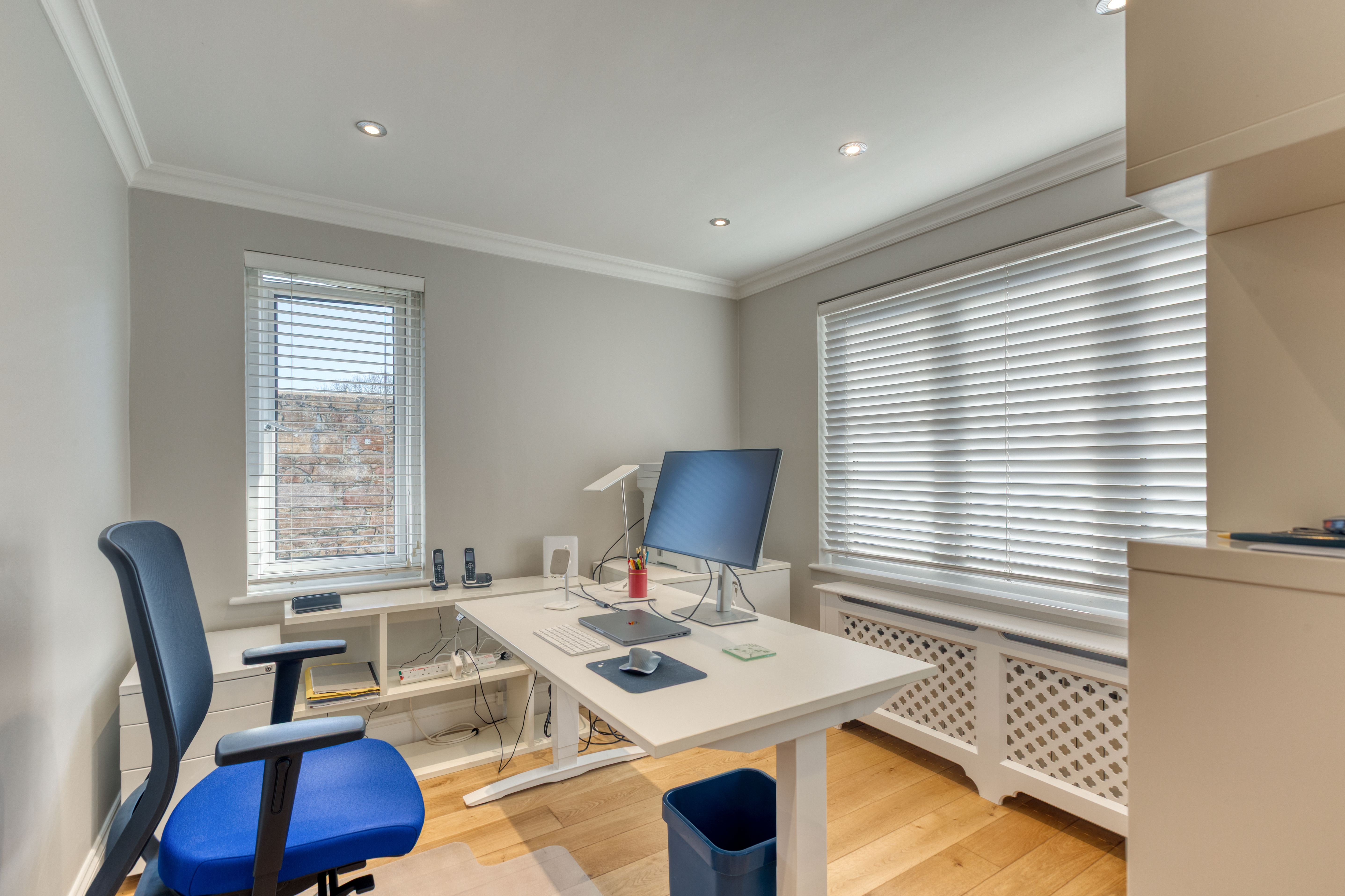 The accommodation is thoughtfully arranged to take full advantage of the surrounding countryside. A bright sitting room enjoys attractive rural views and opens directly onto a balcony, creating an ideal space to relax while overlooking the field and countryside beyond. The property also benefits from two dedicated offices, providing excellent flexibility for home working or study.