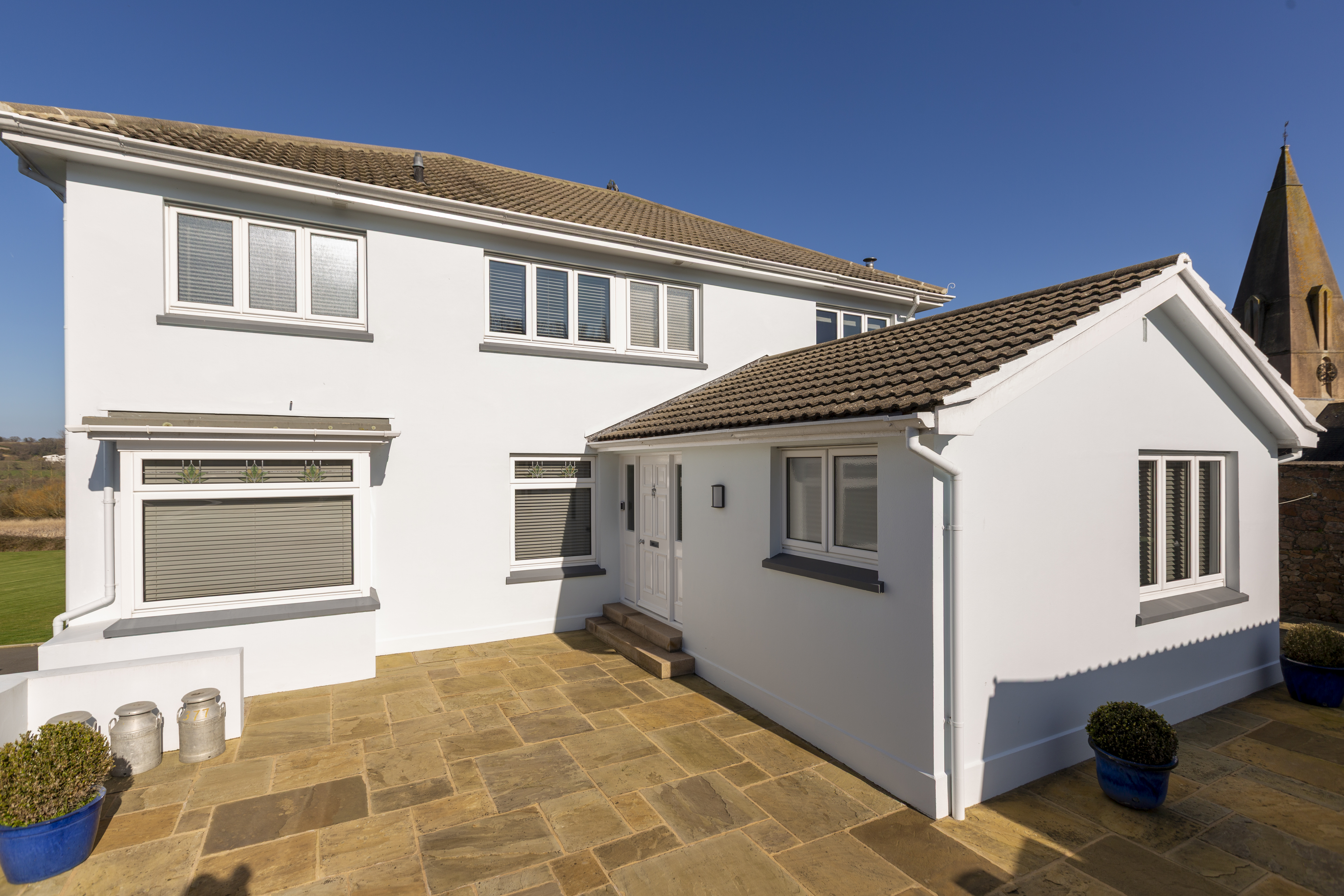 Le Jardin is an immaculately presented four-bedroom, two-bathroom detached home set in a peaceful rural setting in Grouville, offering generous living space together with a substantial adjoining field.
