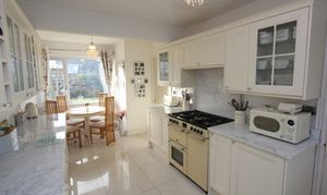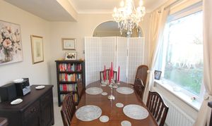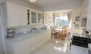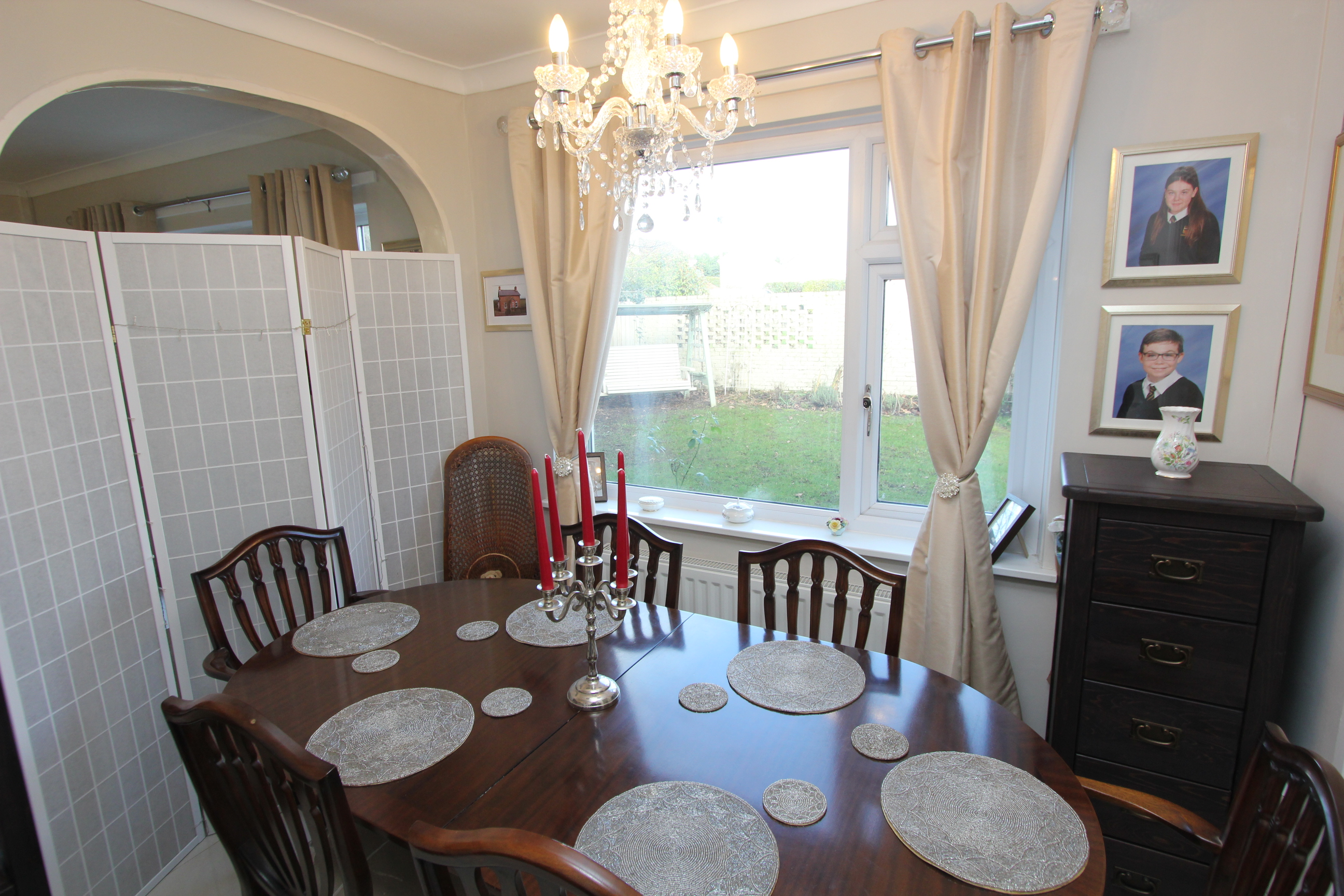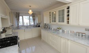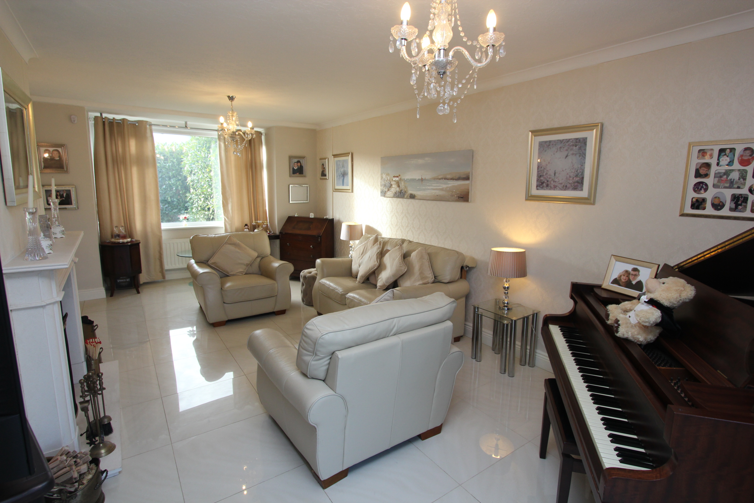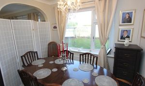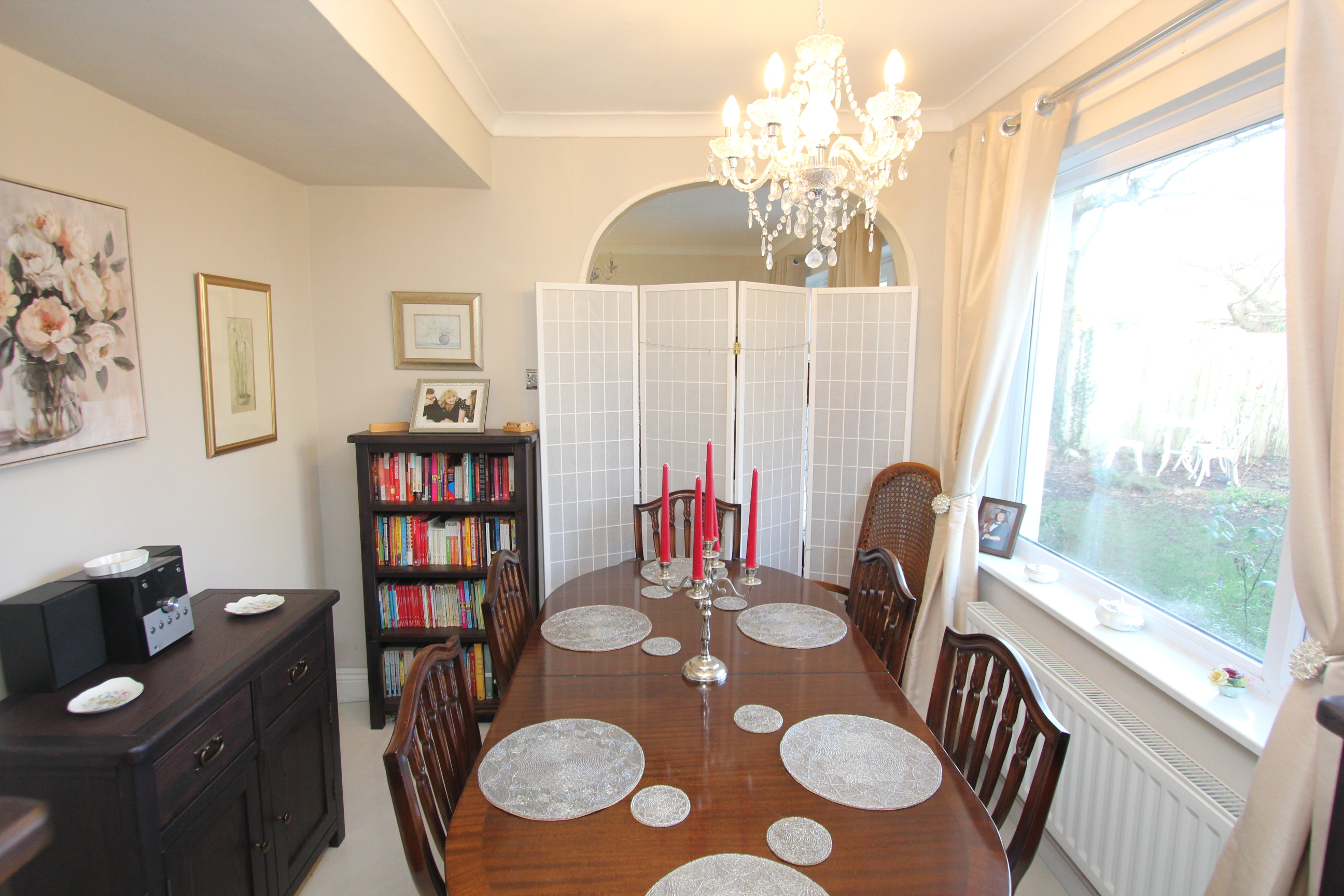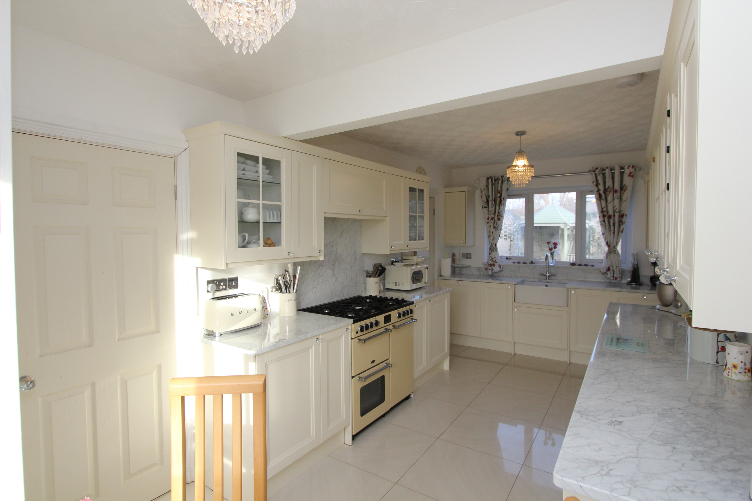 UPVC windows to front and rear. Porcelain floor tiles. Radiator. Space for dining room table and chairs. Fully fitted new kitchen comprising eye level units, base units with marble work surfaces over. Belfast sink with mixer tap. Belling 5 burner free standing gas cooker. Built in fridge and freezer. Integrated washing machine and dishwasher. Doors to dining room and rear porch.