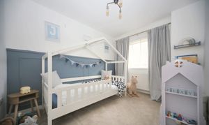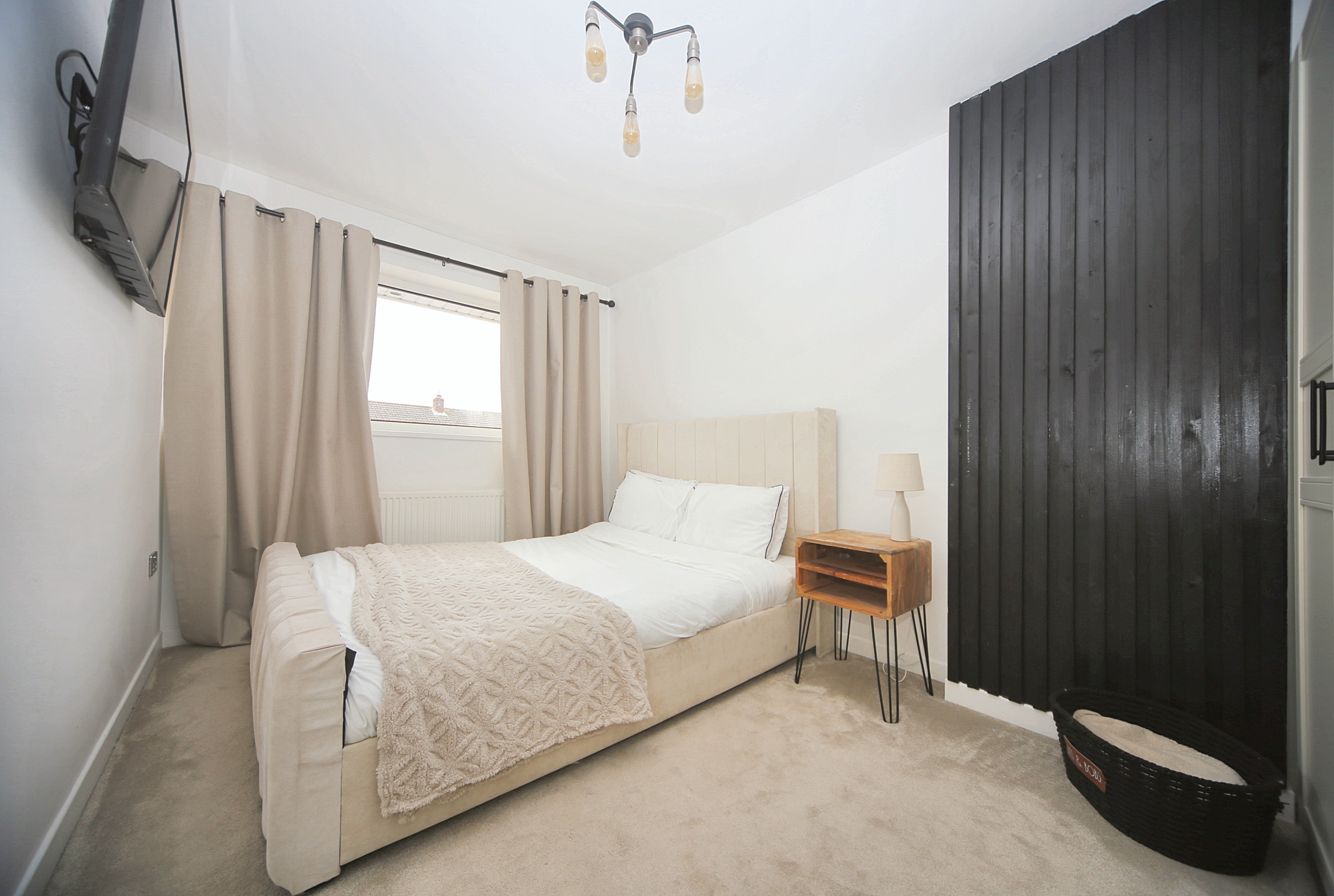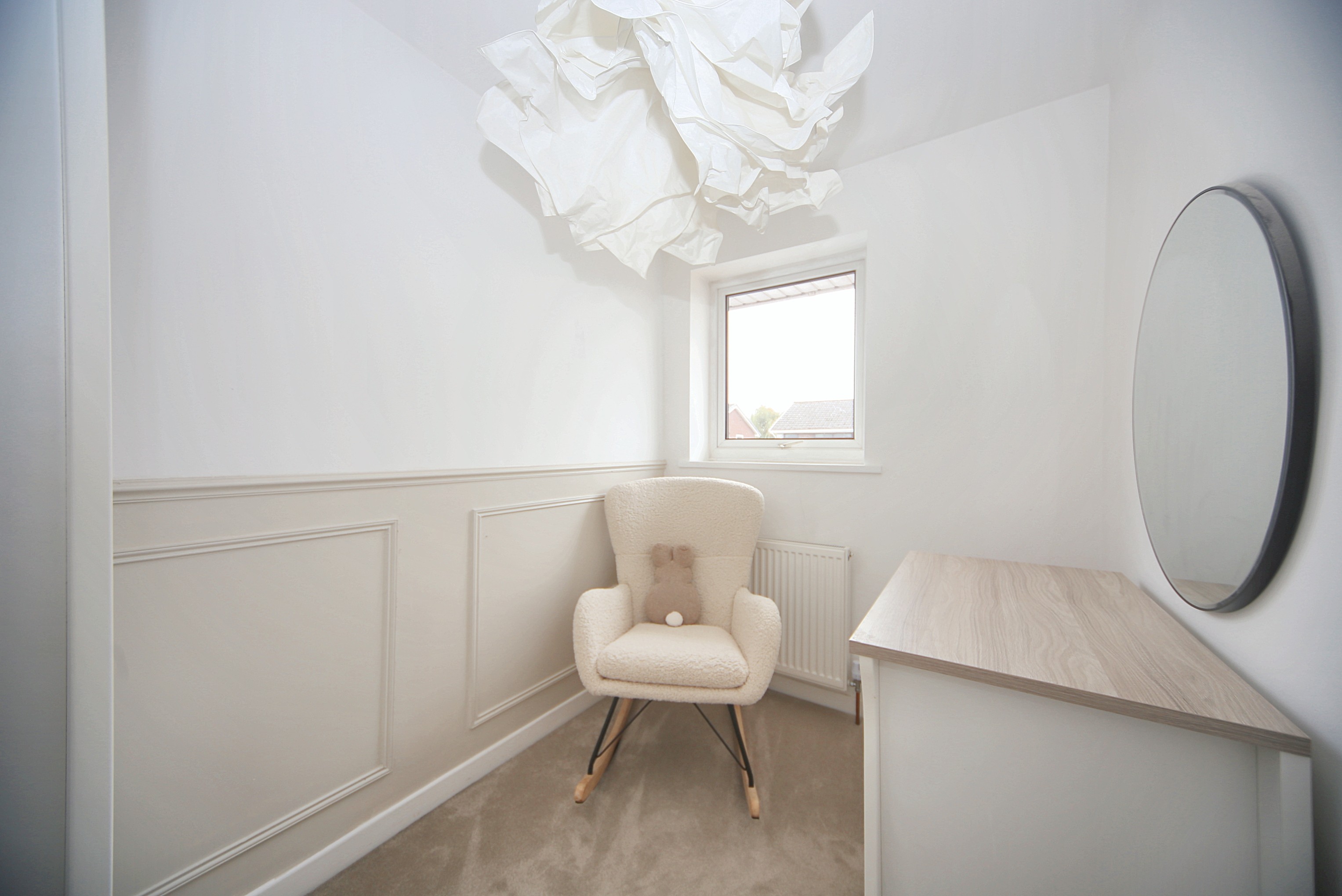 Upstairs, the property offers three generously sized bedrooms, all thoughtfully decorated and continuing the feature panelling theme. A contemporary, fully tiled family bathroom completes the upstairs accommodation.