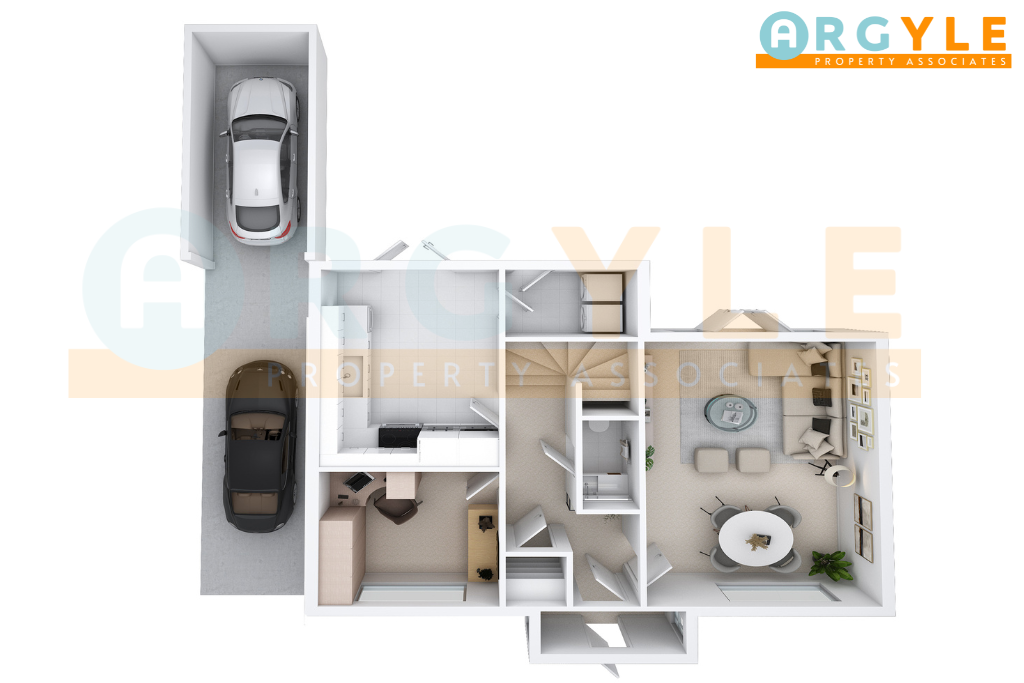 Single Garage at the end of the carport. There is potential to convert this garage into a home office subject to planning permission where required.
