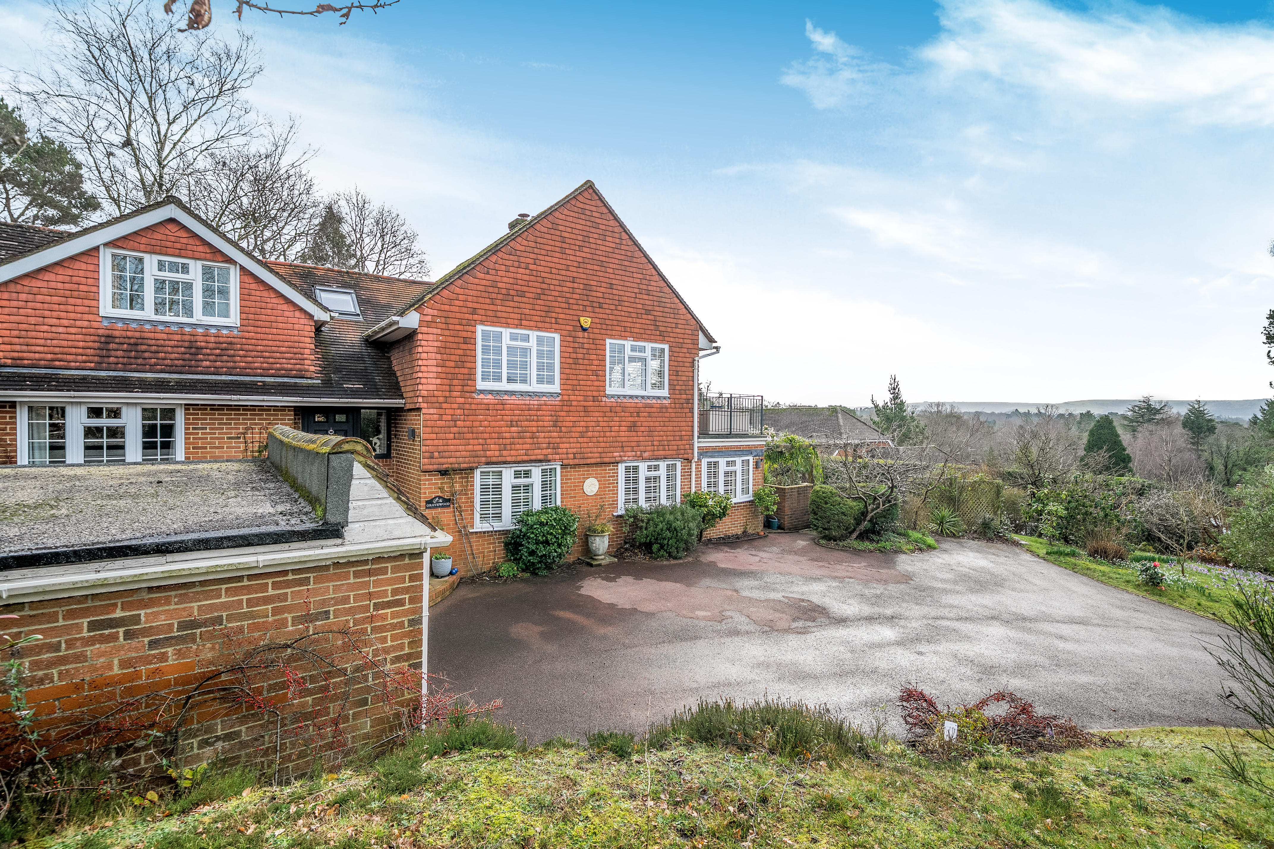 This beautifully presented five-bedroom detached house enjoys an elevated position in the highly sought after Crossways Park area of West Chiltington, offering far-reaching views towards the South Downs. The property provides bright and spacious accommodation arranged over split levels, with a flexible layout that allows several rooms to be used as either reception rooms or bedrooms according to your needs.