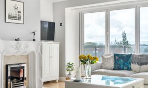 The inviting sitting room opens directly onto a south facing balcony, making the most of the stunning outlook. The well-appointed kitchen features an AGA, a separate hob and oven, and doors leading to a generous conservatory that overlooks and opens onto the garden, creating a wonderful space for entertaining or relaxing. A practical utility room with a shower room off adds further convenience. Adjacent to the kitchen is a large dining room.