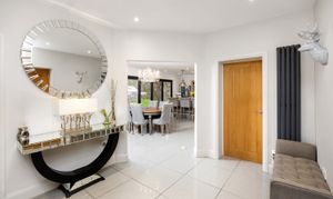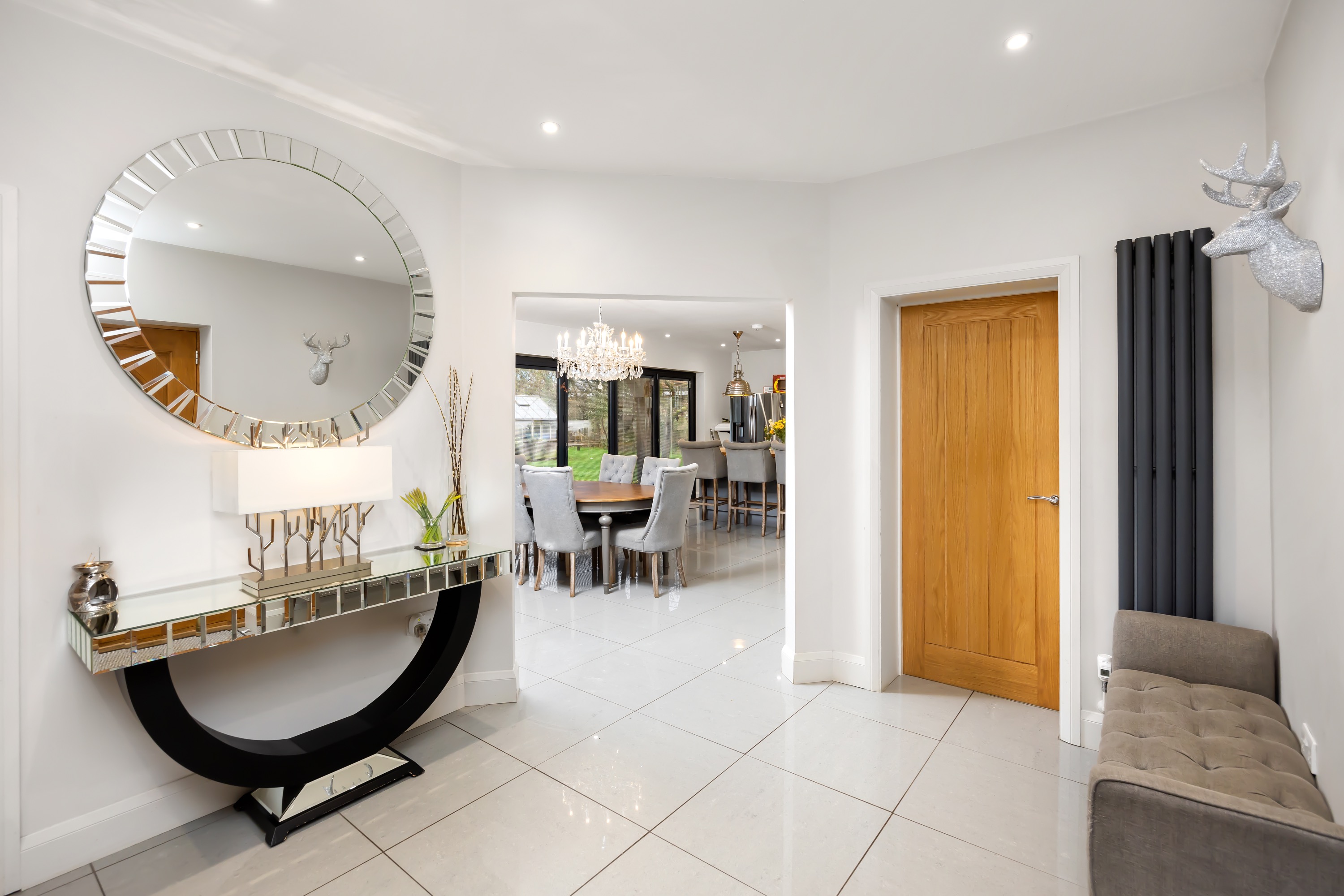 - A grand entrance hall with polished stone flooring with access to the modern cloakroom, drawing room, dining room and utility room