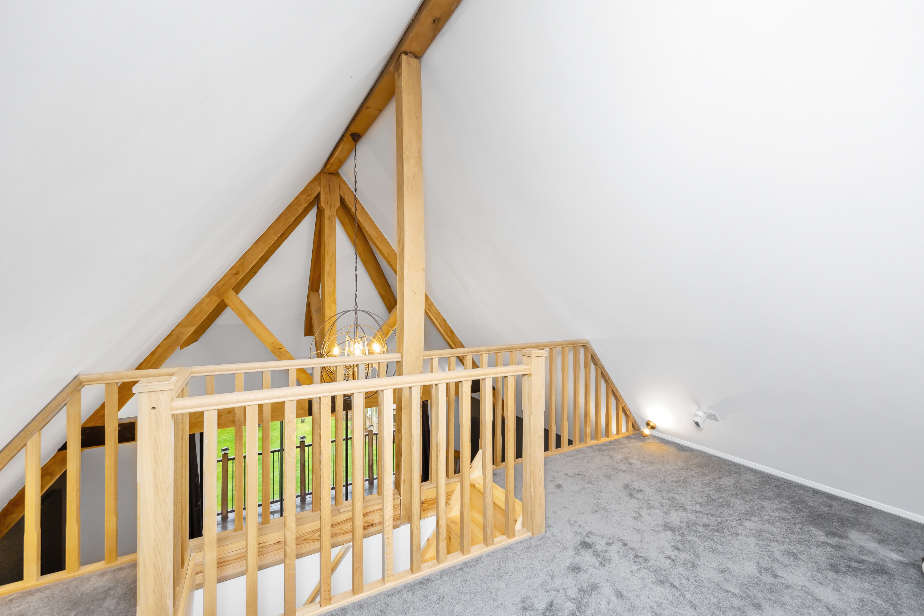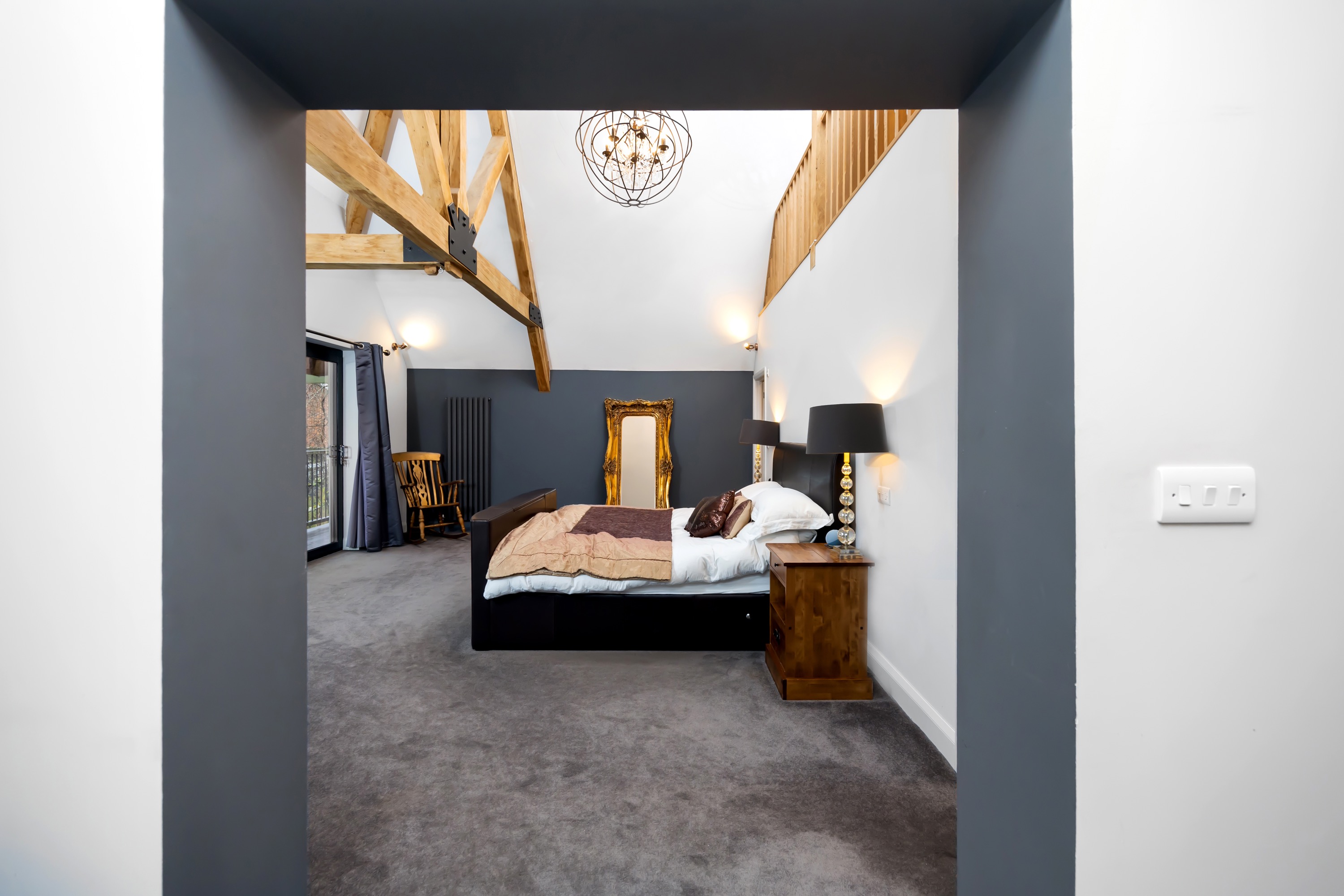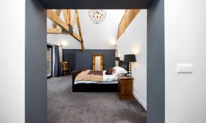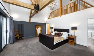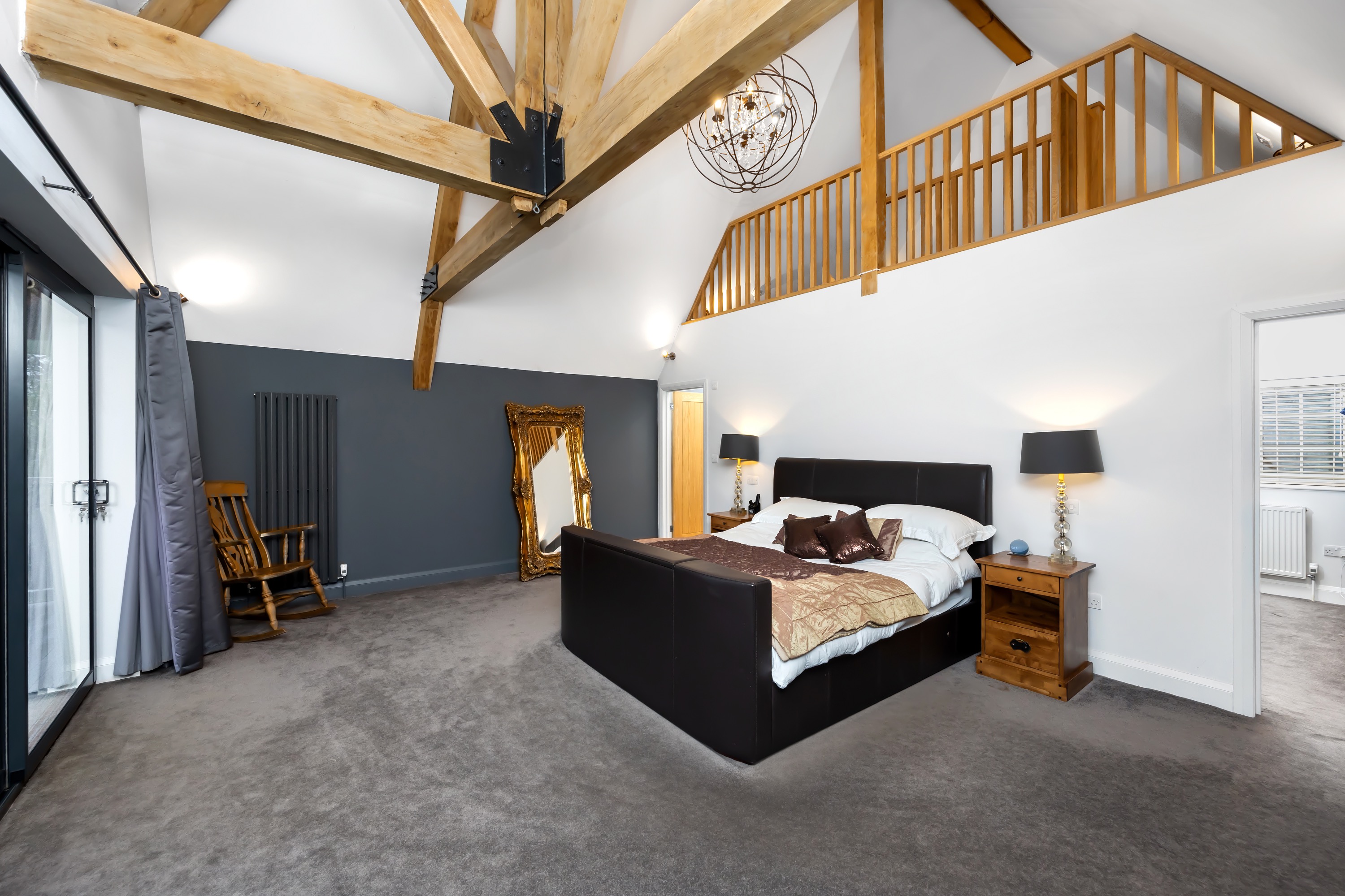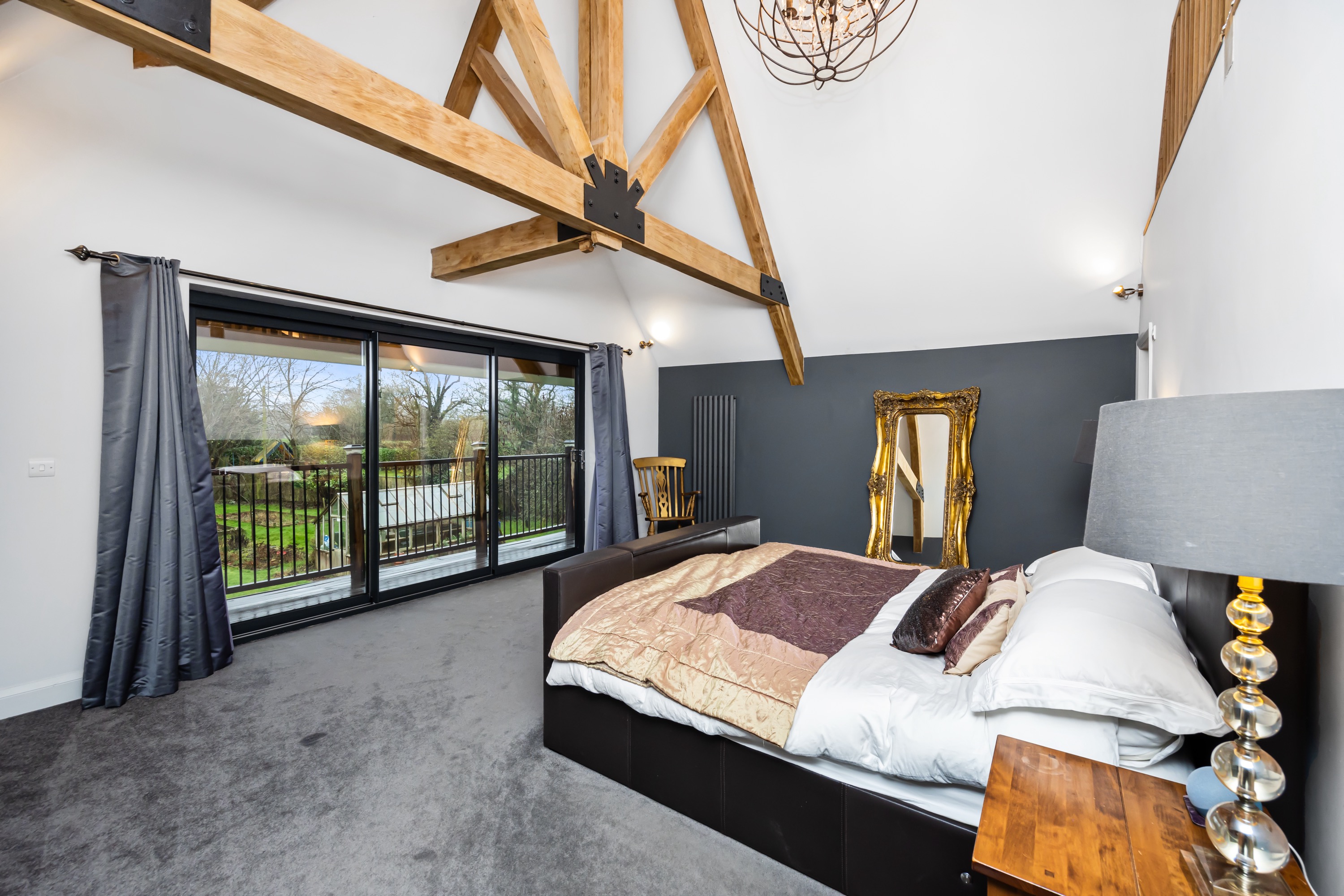 - A luxurious principle bedroom offering separate en-suite, walk-in wardrobe, dressing area, a mezzanine floor and Bifold doors that lead to a balcony over looking the garden