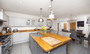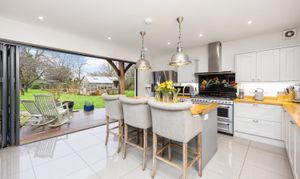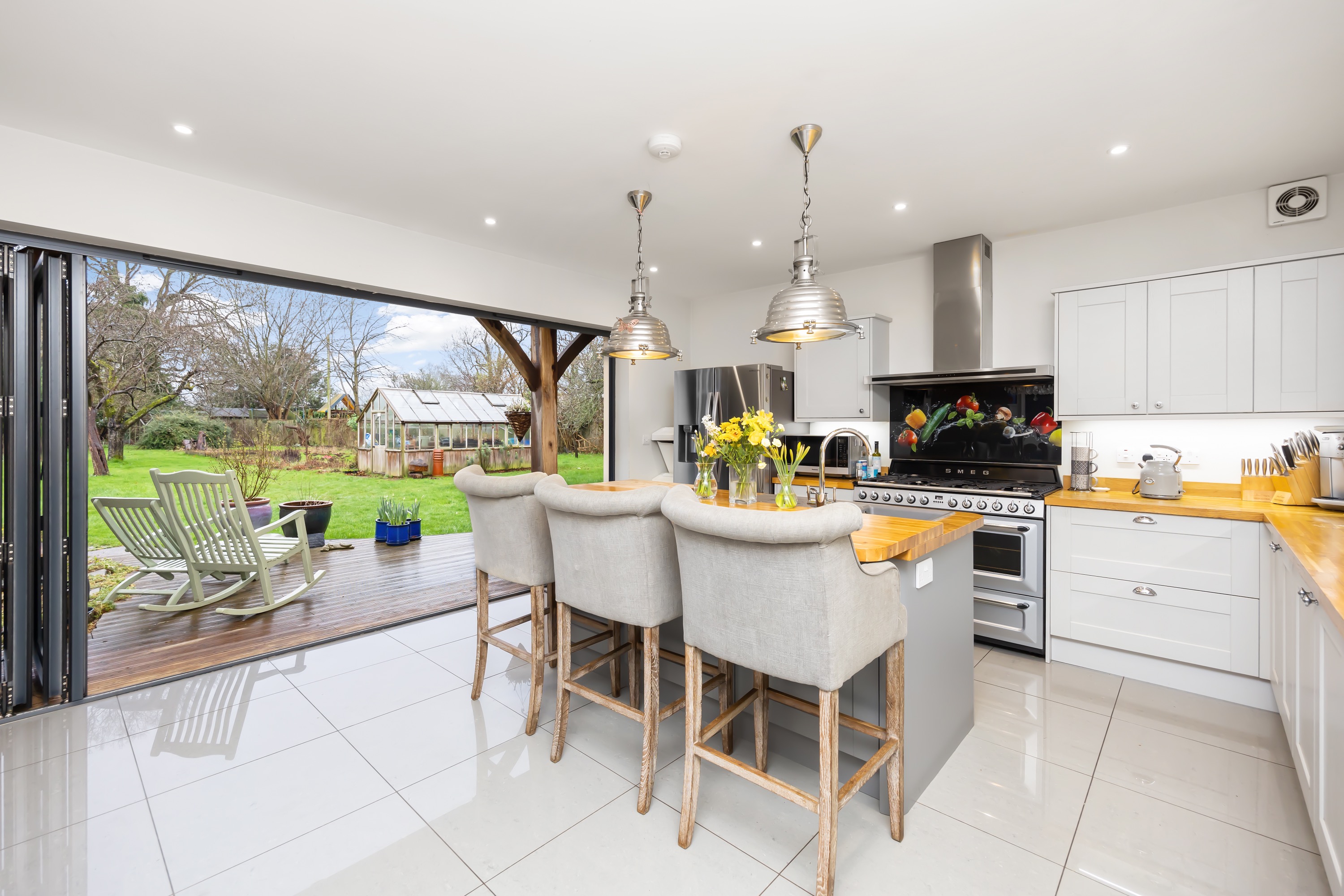 - The luxury kitchen offers a large island and spacious dining area with underfloor heating and bifold doors that lead out to the garden