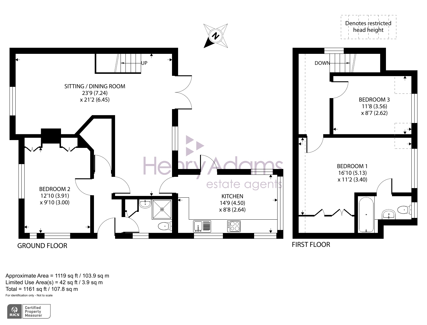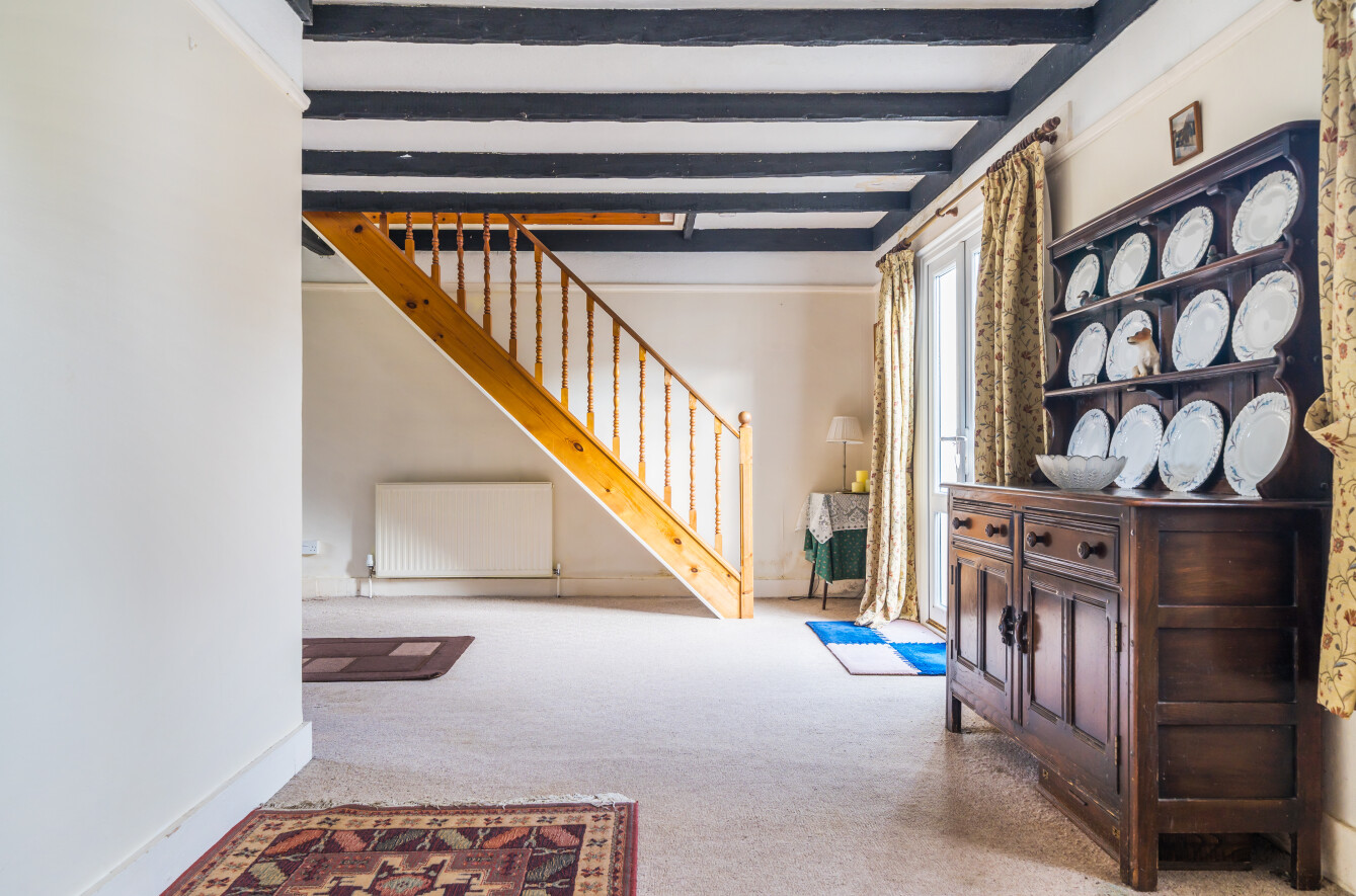 The ground floor features a spacious L-shaped sitting/dining room that serves as the heart of the home. With a cozy fireplace as a focal point, this room is perfect for both relaxing and entertaining. The kitchen, while functional, offers generous storage and is flooded with natural light, overlooking the south-facing rear garden. Also on the ground floor is a generously sized double bedroom with built-in wardrobes, providing flexibility as a guest room, home office, or additional living space. Finally, completing the downstairs accommodation is a convenient shower room.