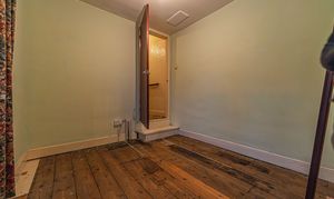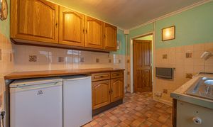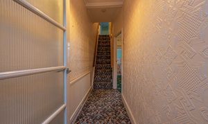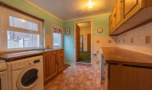 Upon entry to this charming property, we can find two well-proportioned reception rooms, with the flexible layout further complemented by sliding wooden doors, allowing for open plan entertaining or private relaxation as needed. Both living rooms enjoy windows for great natural light, while one provides access into a helpful understairs storage closet, which could be ideal for a cloakroom or utility space. Continuing through the house we have the practical kitchen, which offers storage fixtures and room for appliances, as well as a doorway to the garden. The family bathroom at the rear of the house, just beyond the kitchen, and is fashioned with a toilet and walk in shower unit.
