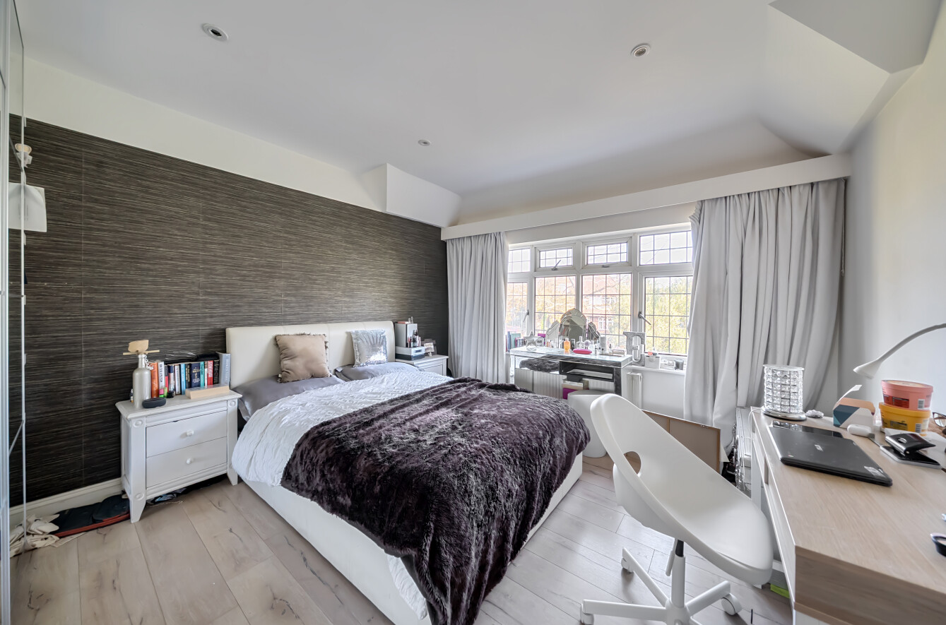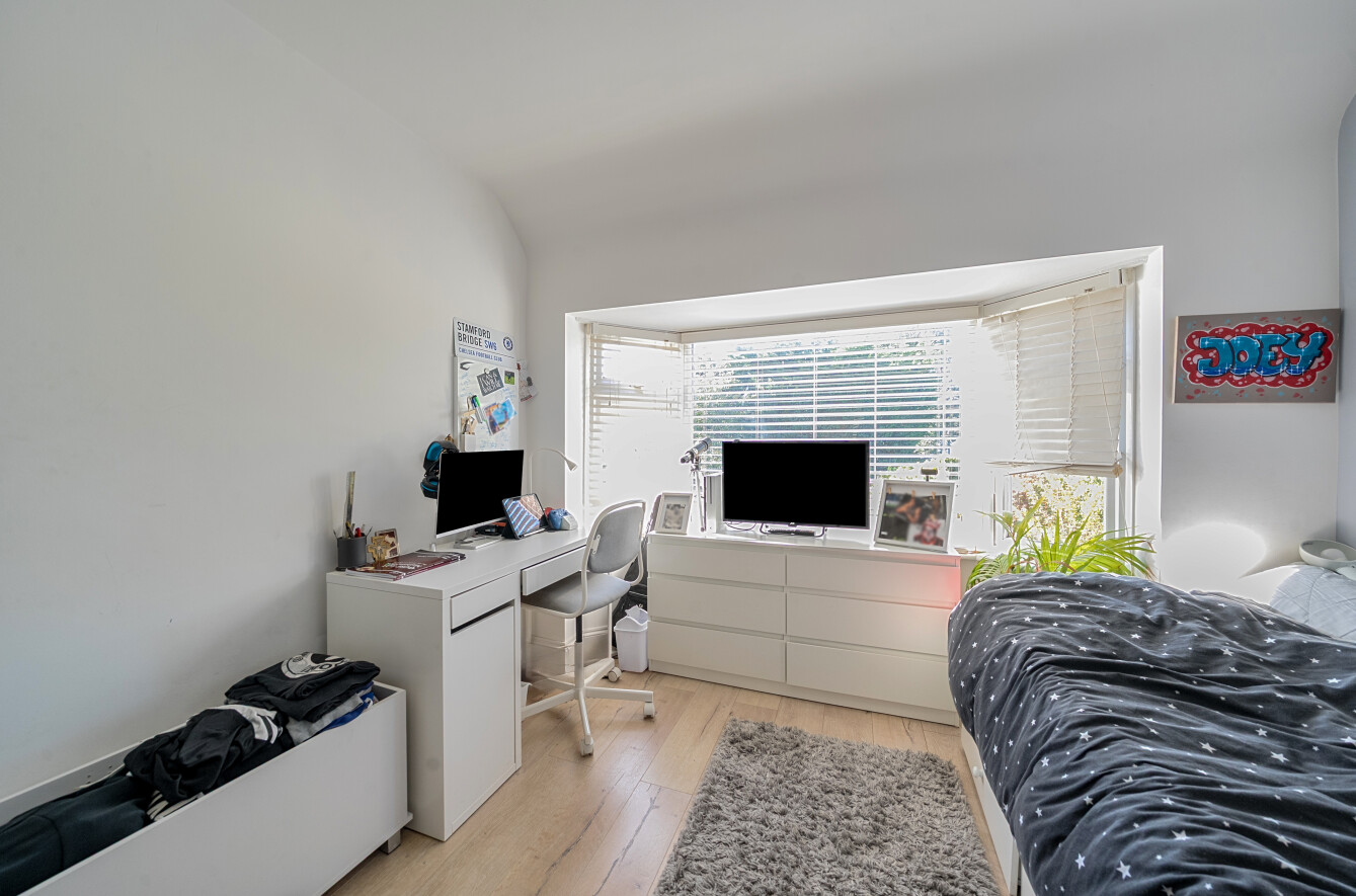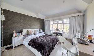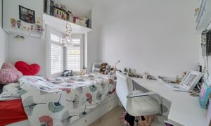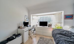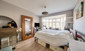 Leaded style double glazed bay window to front, radiator, wood laminate flooring, fitted wardrobe with mirrored doors.