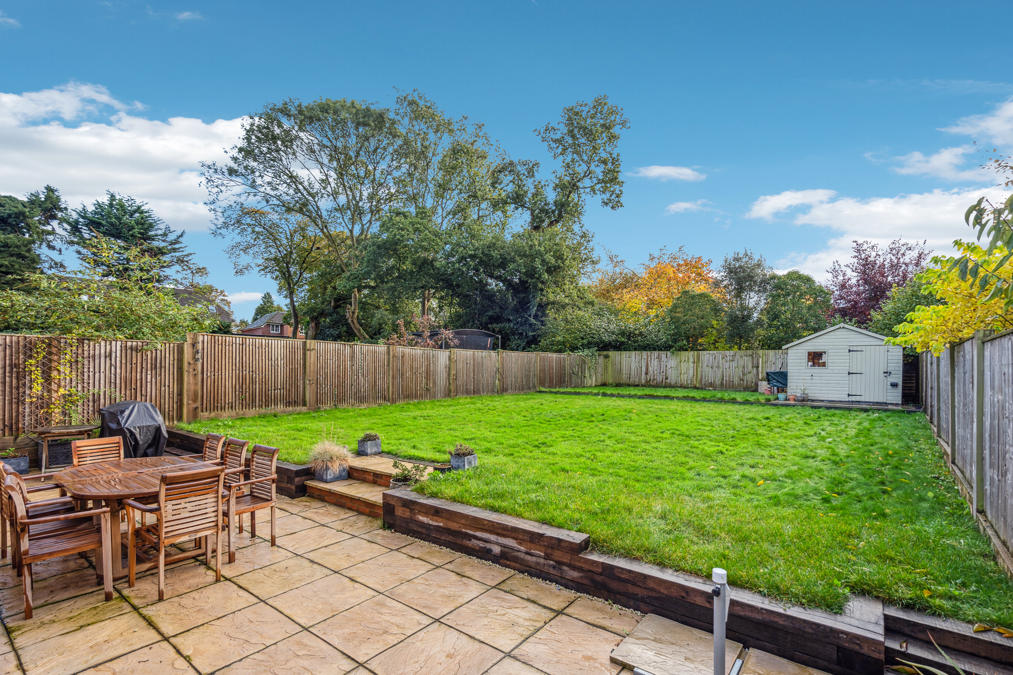 The garden is a real suntrap! The extensive patio spans the width of the house, providing a wonderful place to relax and entertain with views of the large south-facing garden. The rest of the space is generously laid to lawn and fully enclosed by fencing for added privacy. There is a large shed at the rear of the garden which has the added benefit of an electricity supply.