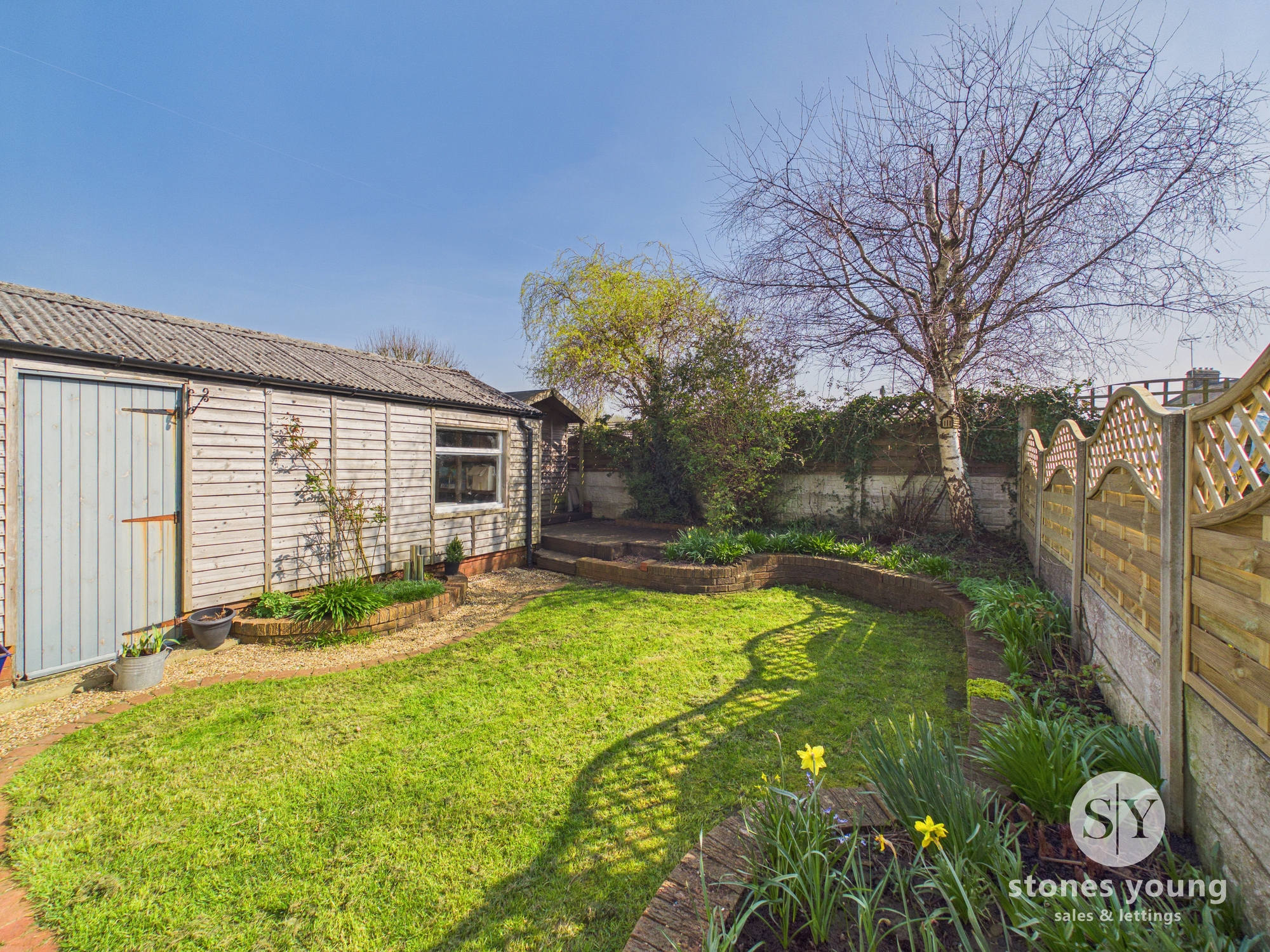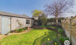 Externally, the property boasts attractive landscaped gardens to both the front and rear. An Indian stone paved driveway provides ample private parking and leads to a single detached garage, which is equipped with an up-and-over door, power, lighting, and a personal side door for easy access. The rear garden featuring a paved pathway, a central lawn with raised planted borders, a mature tree, and a decked patio area ideal for outdoor entertaining or relaxing in the sun. Additional benefits include a timber storage shed and timber fencing surrounding the garden, creating a safe and enclosed space for children or pets. This property offers an opportunity to acquire a stylish, move-in ready home in a prime location, with pleasant outdoor space and excellent amenities close by.