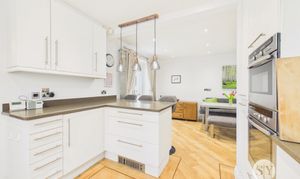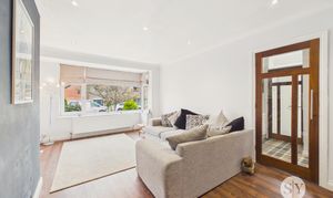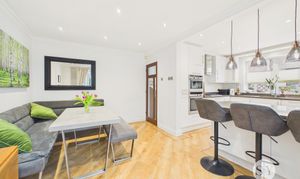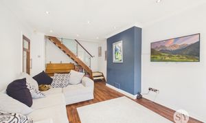 Attractive wood style flooring, staircase leading to 1st floor, TV point, panel radiator, uPVC double glazed window, recessed spotlighting.