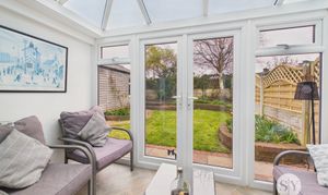 uPVC double glazed windows and french doors leading to garden and dining room, tiled effect flooring, electric wall heater, private aspects over garden.