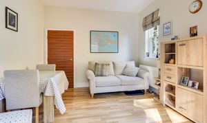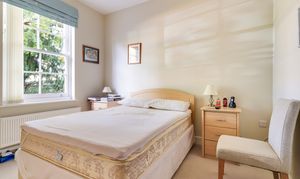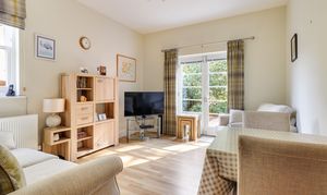 The property offers a welcoming living space with French doors opening directly onto the attractive communal gardens, creating a bright and airy feel throughout. The modern kitchen, complete with integrated appliances, is perfect for contemporary living, while the two well-proportioned bedrooms provide versatile accommodation to suit your needs.