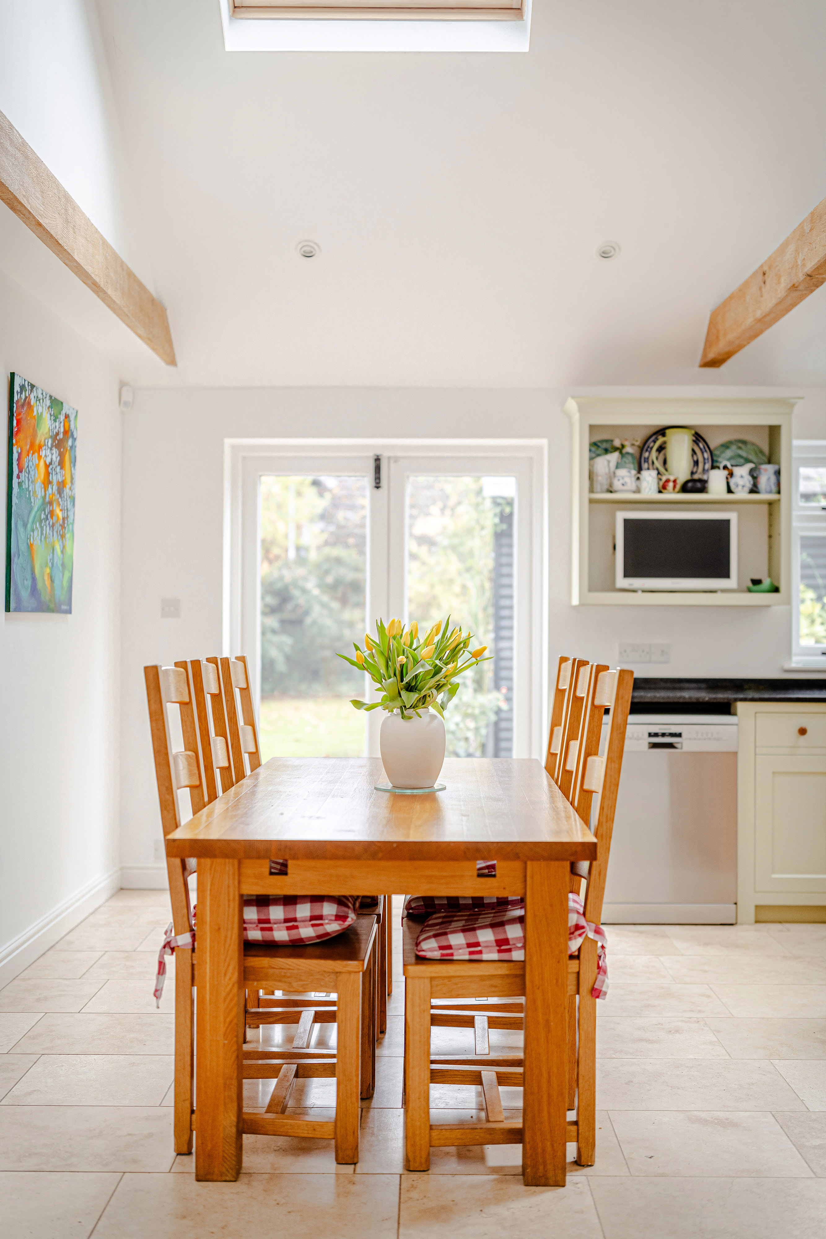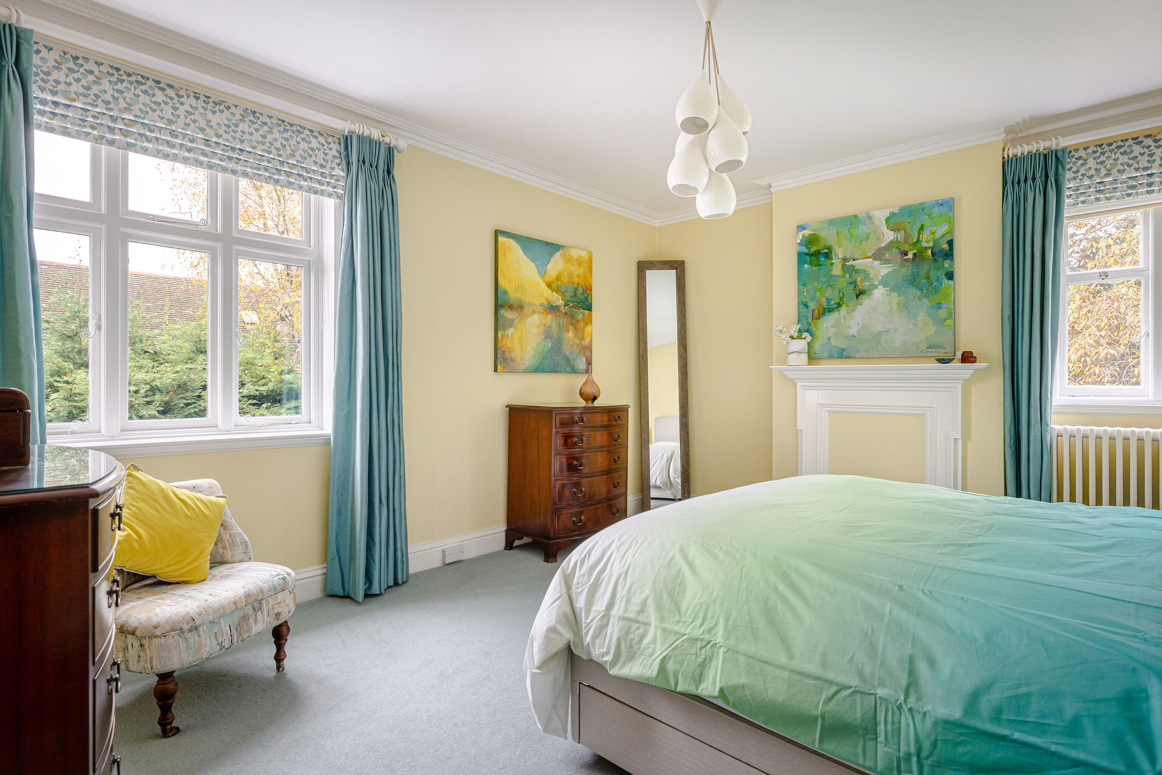 Wickenwood’s accommodation spans three floors, featuring five spacious double bedrooms that comfortably accommodate family and guests. Each room possesses its own unique charm, with period details and large windows that allow sunlight to flood in.