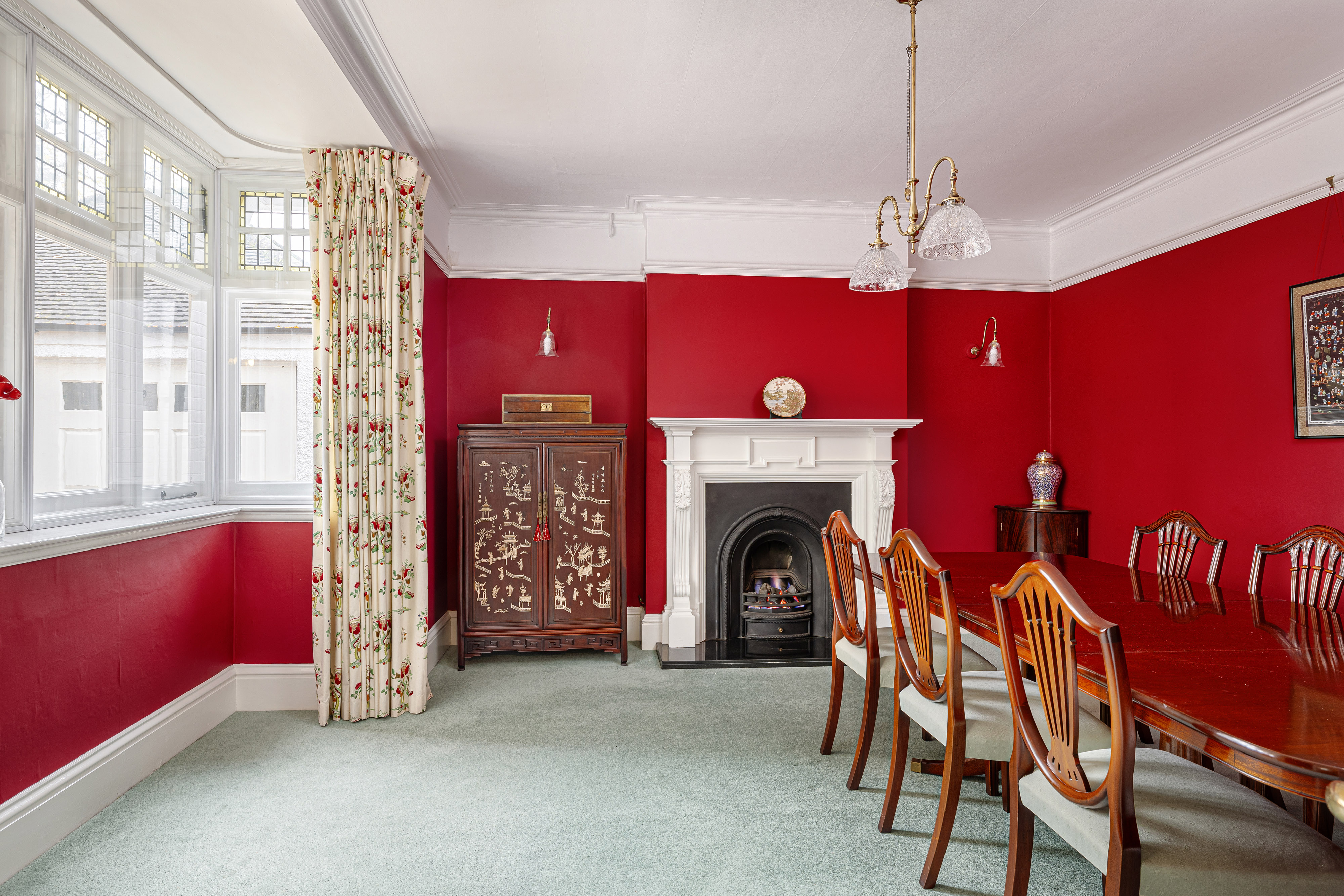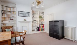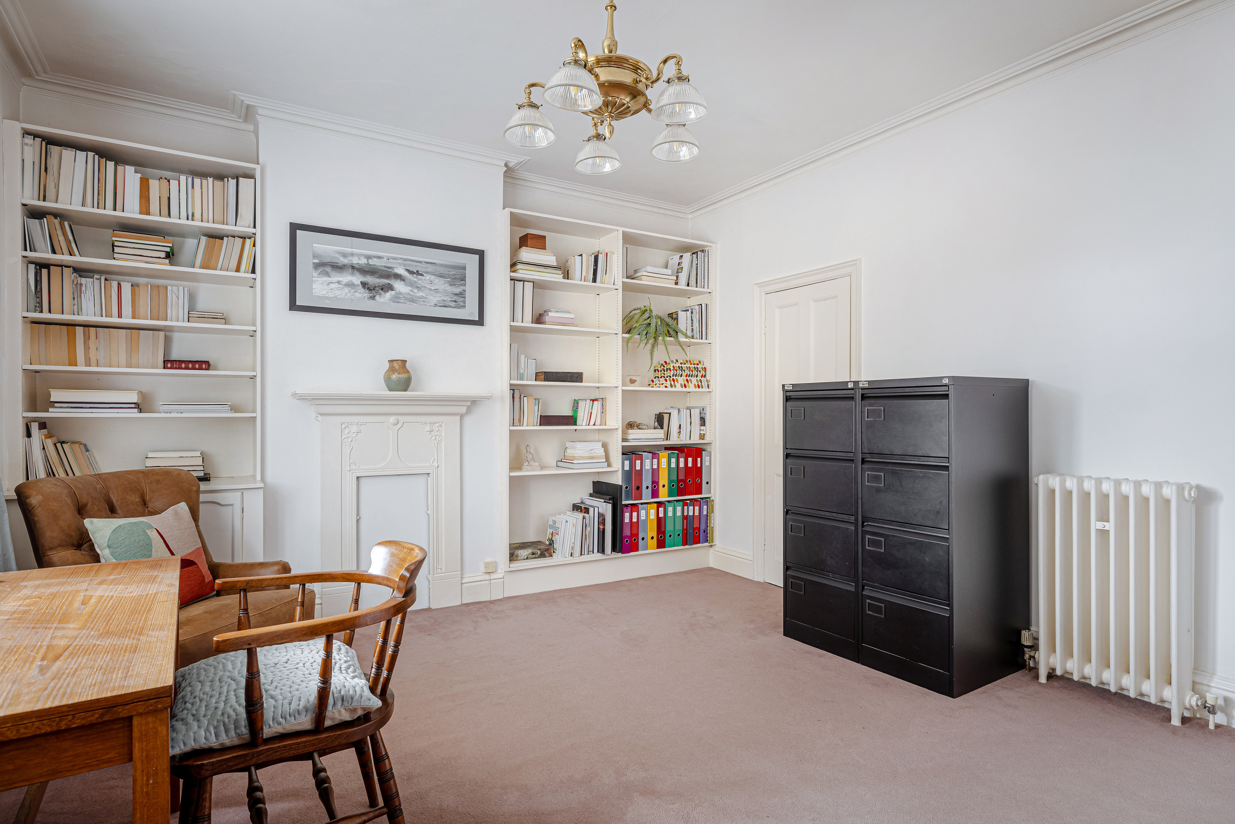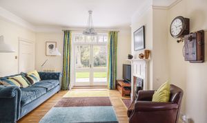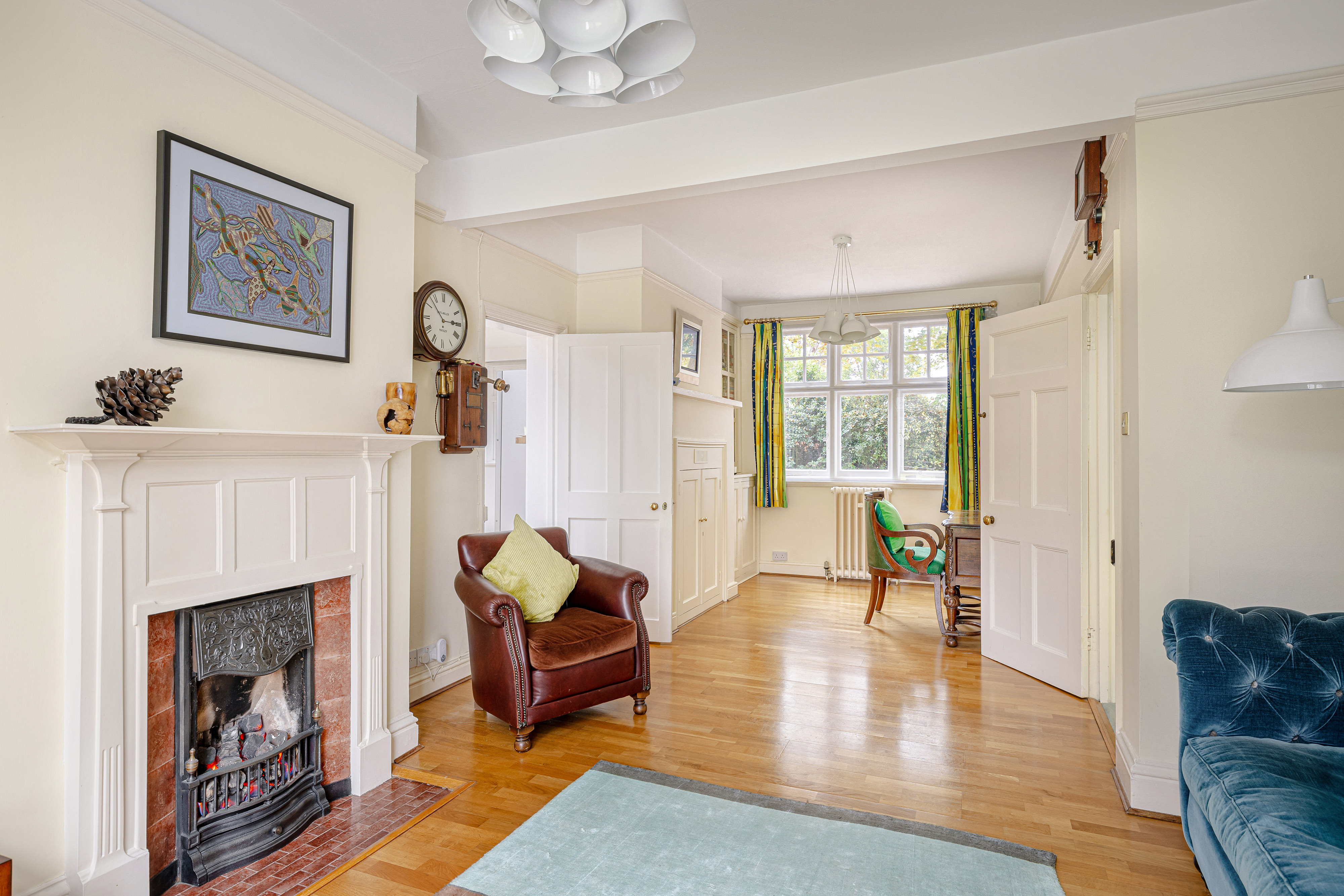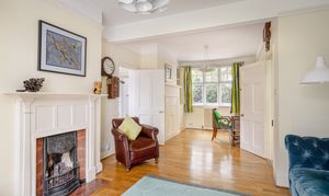 The generously sized sitting room, complete with an open fireplace, beckons you to gather and enjoy its warm charm on chilly evenings. Period elements, such as high ceilings, wooden-framed windows, and intricate cornicing, are present throughout, each telling a tale of Edwardian craftsmanship.