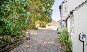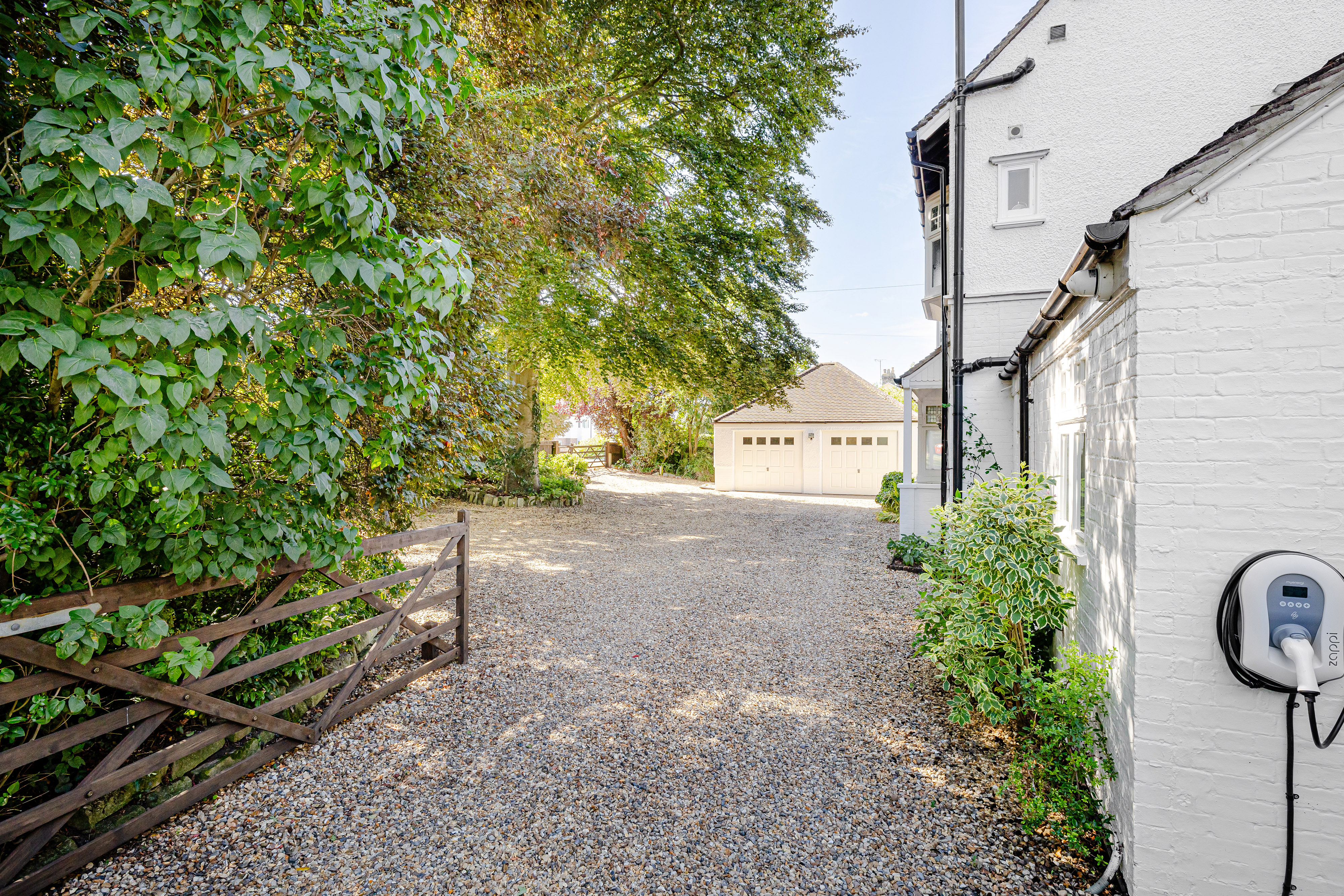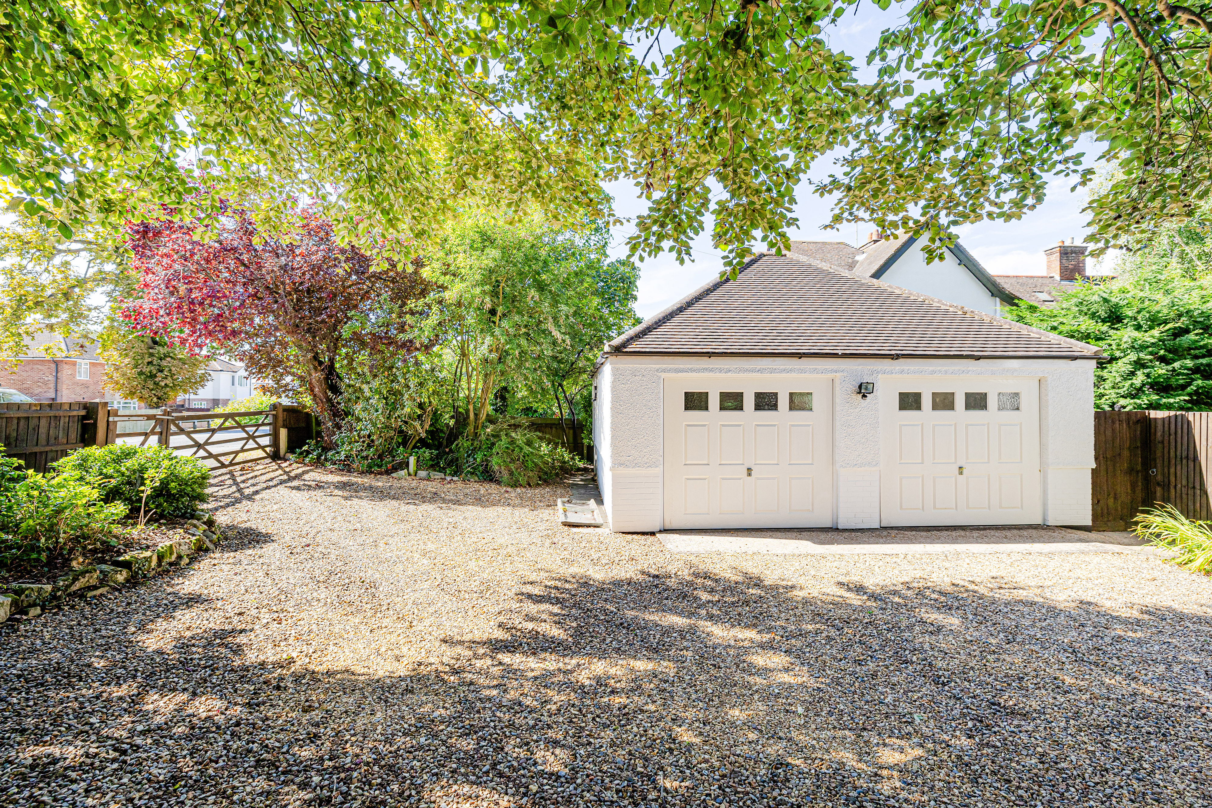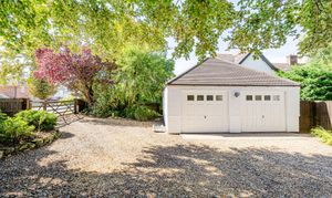 As you approach Wickenwood, its grandeur becomes immediately apparent. The expansive gravel driveway, which accommodates off-street parking for over five vehicles, leads to a detached double garage, ensuring secure storage and versatility.