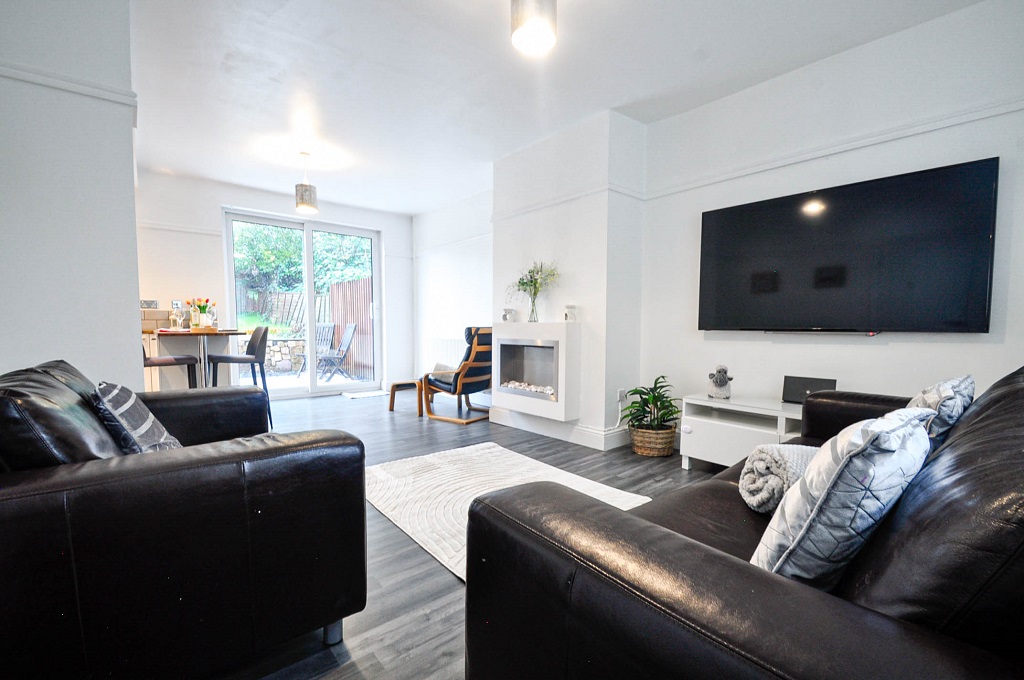 Access to the recently renovated rear garden is via the the sliding patio doors. You are immediately greeted with an attractive patio area perfect for hosting those summer BBQs. The garden offers a stunning looking stone wall that integrates steps up to the second tier of the garden where you are introduced to the lawn area ideal for the kids to run around and enjoy. Finally the garden offers a spacious side access, perfect for playing host to the bins or a shed.
