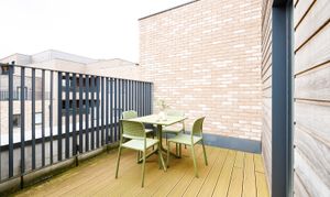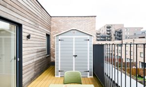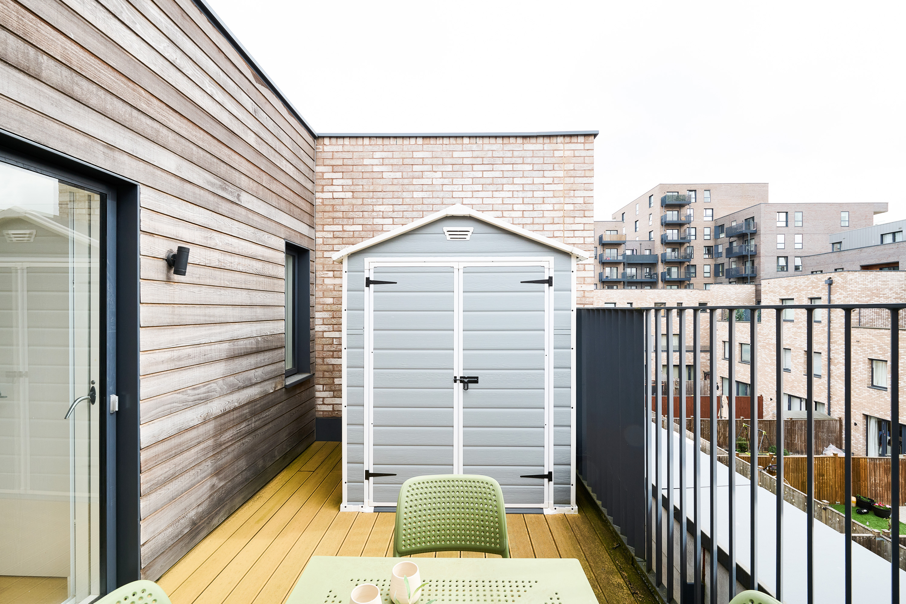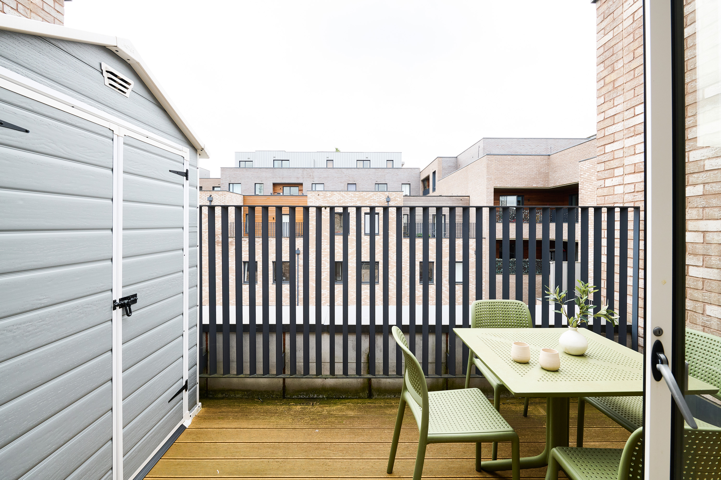 Upstairs, the house makes a convincing case for indoor-outdoor living. A Juliet balcony off the first-floor bedroom brings in light and air, while the top floor steps things up with a full-size balcony; morning coffee, evening exhale, your call. To the rear, the garden is good to go, with paving, lawn and enough room to get creative without becoming a full-time gardener. It’s modern living without the fuss, done well.