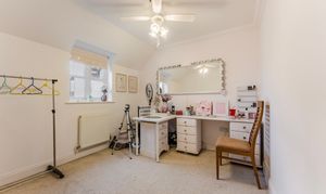 Upstairs, four bedrooms provide comfort and privacy. The principal bedroom benefits from its own en-suite, while the remaining bedrooms are served by a well-appointed family bathroom. Each room offers a pleasant outlook, with the rear-facing bedrooms enjoying views towards the open fields beyond.