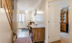 - Generous wrap-around gardens featuring a south-west facing patio, a laid to lawn, established shrubbery and side access into the garage