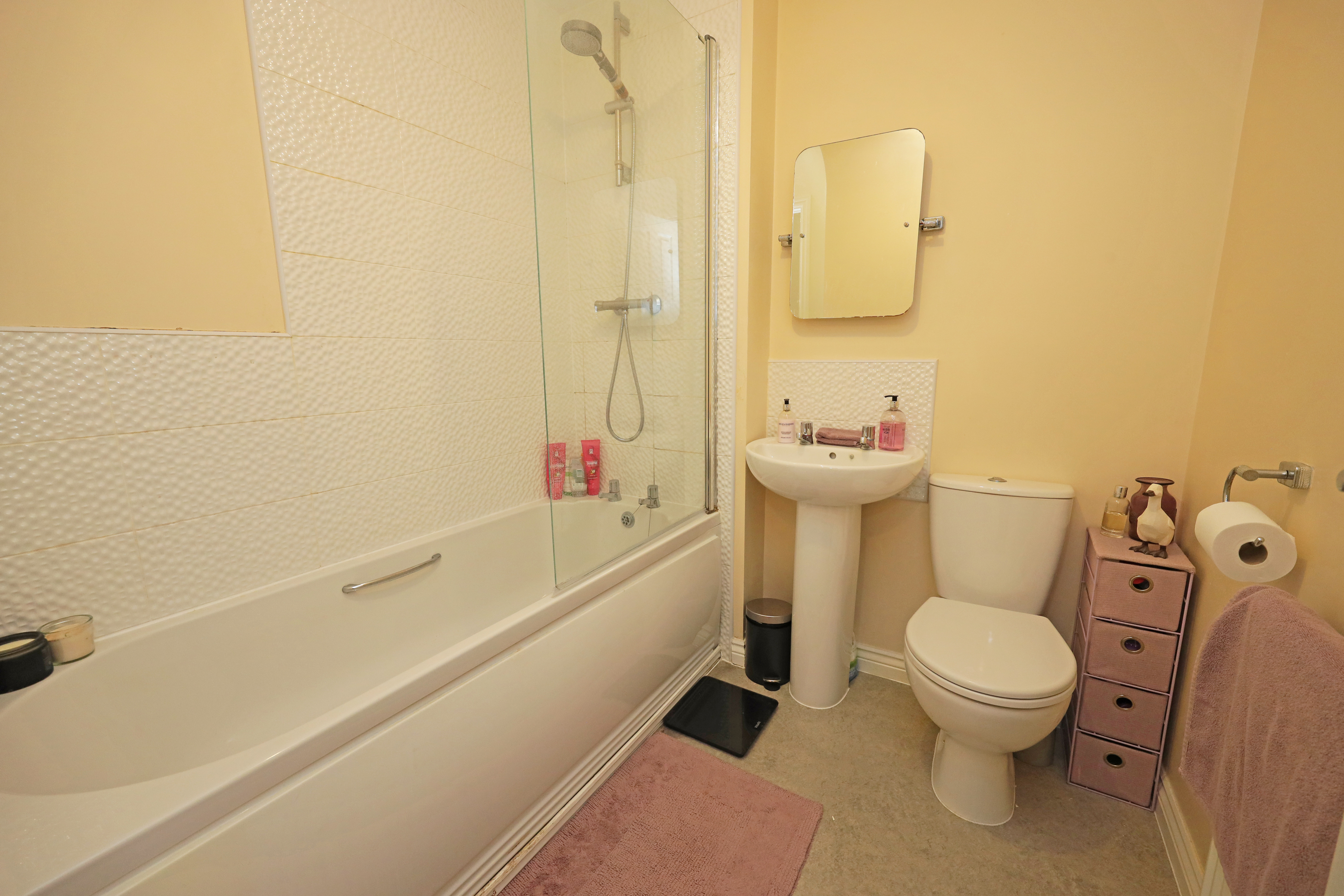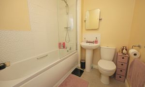 On the first floor the landing area has access to loft space. There are two double bedrooms with window facing either to front or rear aspect and include a built-in double wardrobe to bedroom one. The bathroom is fitted with a standard three-piece suite to include shower over bath with splash screen.