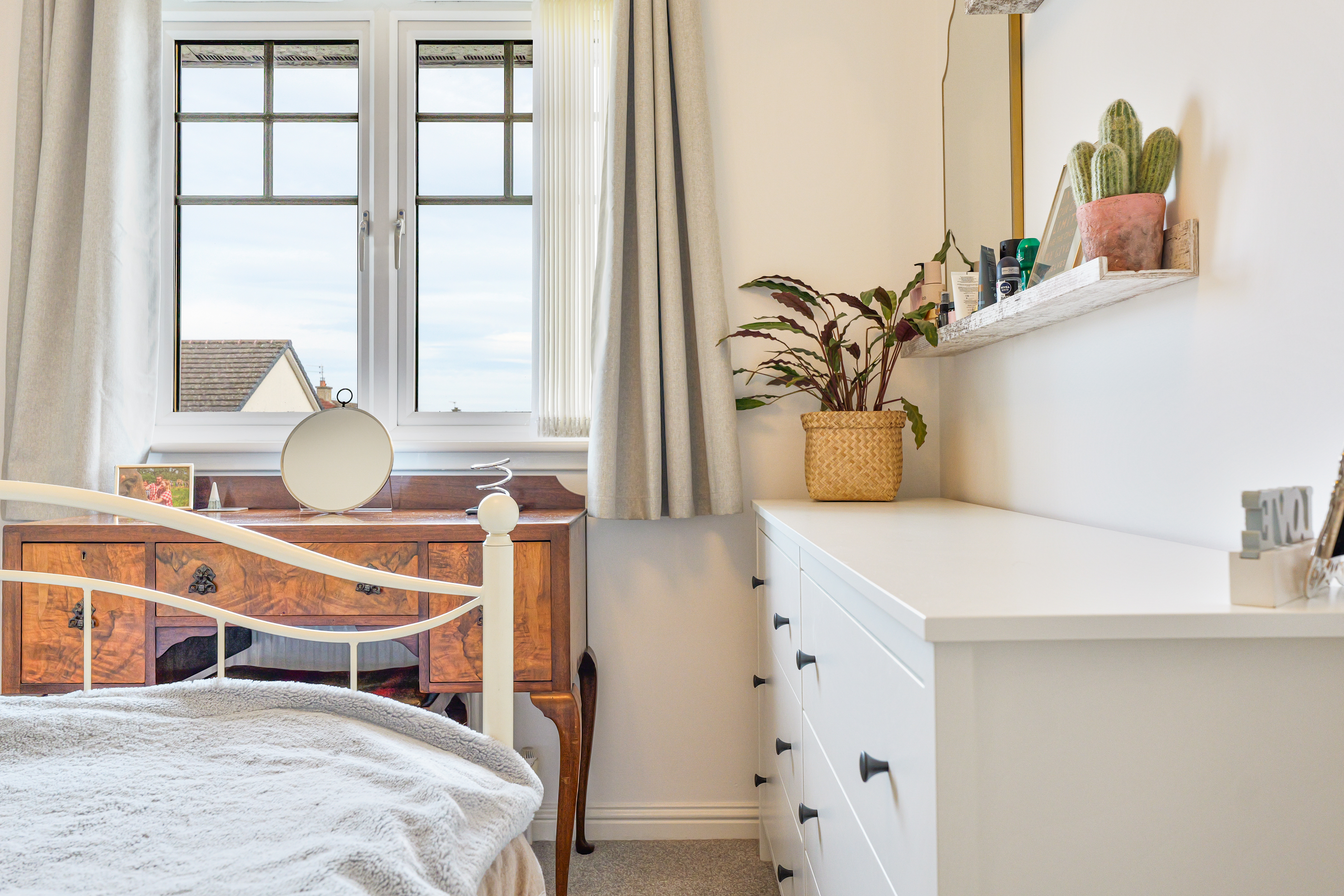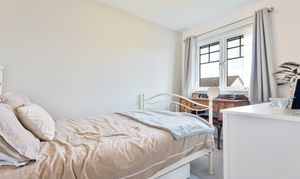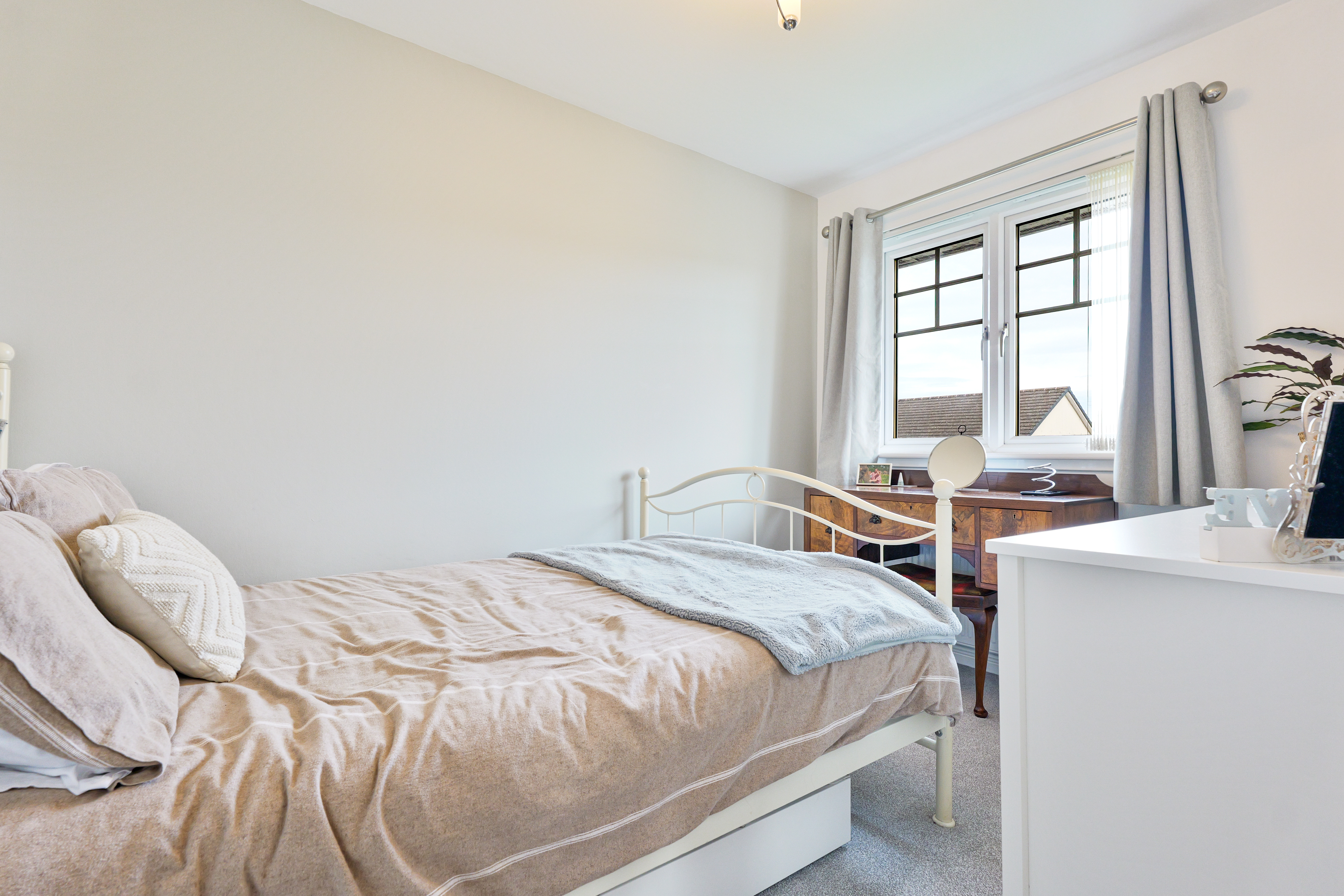 The second double bedroom is located to the front of the property. The room offers built-in wardrobe storage. Pristine neutral decor complemented by carpeting.